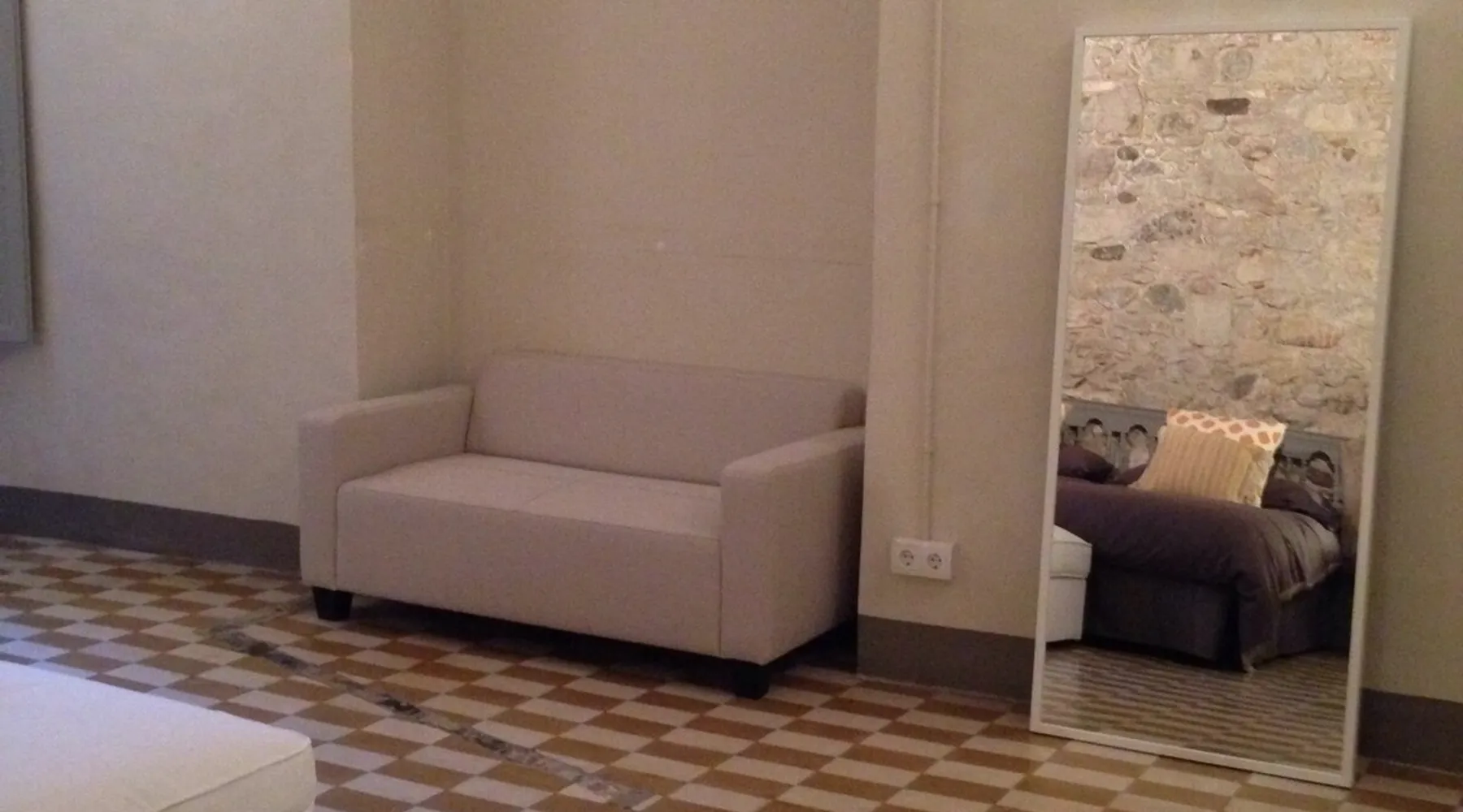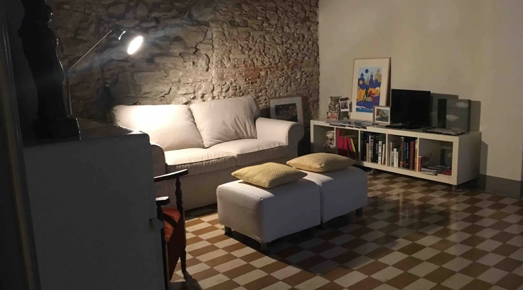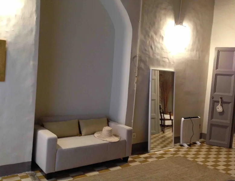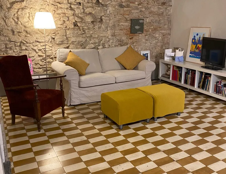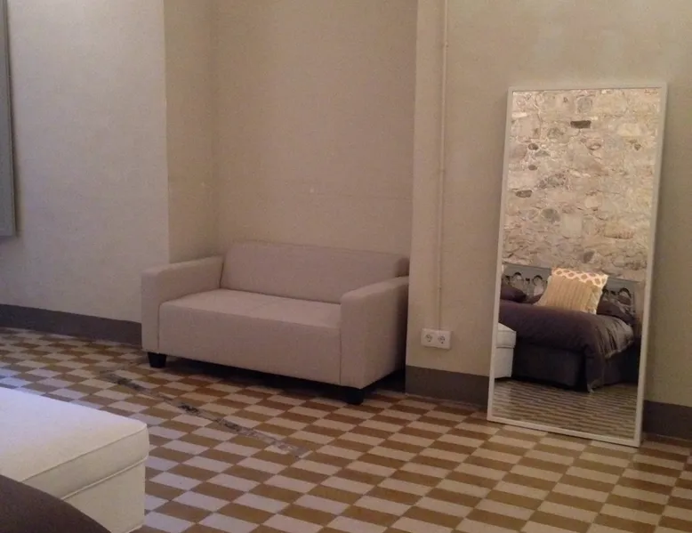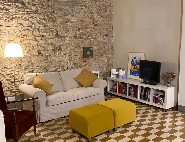 The apart. is located at carrer Força, the main street of the historic quarter of Girona, in a mansion from 1703, the place where the 2nd synagogue of the jewish community was located in the 14th century. Completely renovated, it preserves old elements like stone walls, beamed ceilings, fireplaces, mosaic floor. New kitchen and bathroom, spacious living room and large bedroom. A few steps from the shopping center and a variety of restaurants, has all the amenities for a unique and special stay The space Located only steps from the Cathedral of Girona, the major tourist attractions and the shopping center. Fully refurbished, but retains elements that give special personality: stone walls, ancient mosaics, wooden beams. The kitchen (fully equipped) and the bathroom are completely new. There is a small patio accessible from the kitchen, a spacious living room and a large bedroom of 30 sq m. and 4'50 m. tall. It is decorated with small pieces of local artists. Nuri and Joan Carles will welcome and will give you the keys of the apartment, so you can come and go at your convenience, and we'll recommend all you may interested in, to have a pleasant stay. Guest access The apartment is the only tourist apartment in the house and is completely independent, with its own access from the first floor, where the owners live. Other things to note Register HUTG-023417 (Government of Catalonia) Registration details HUTG-023417