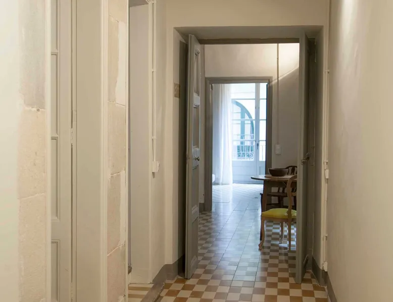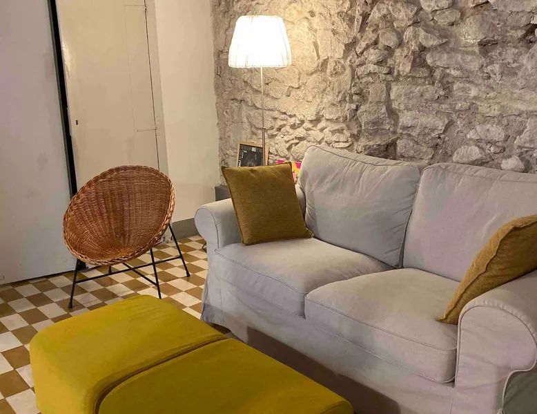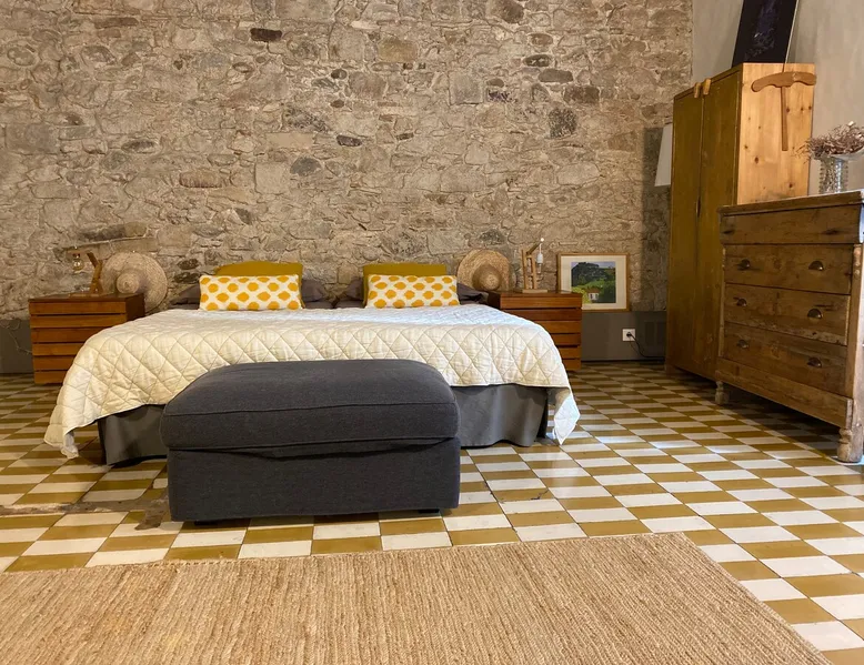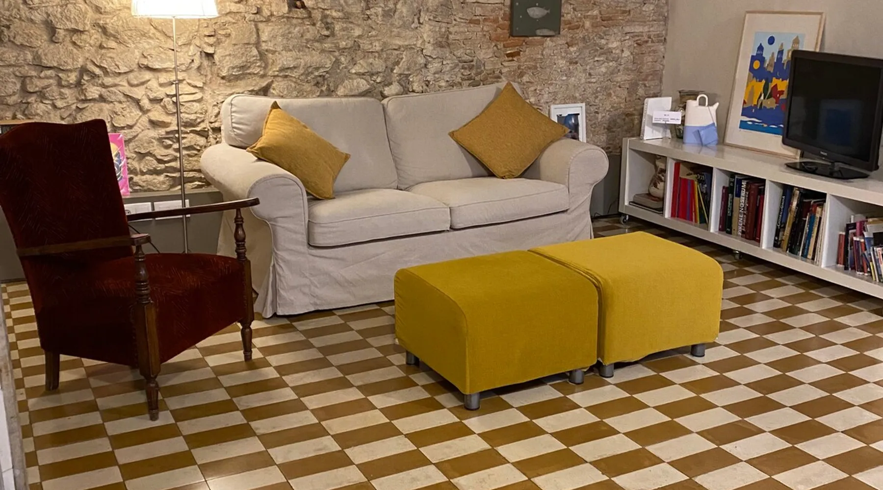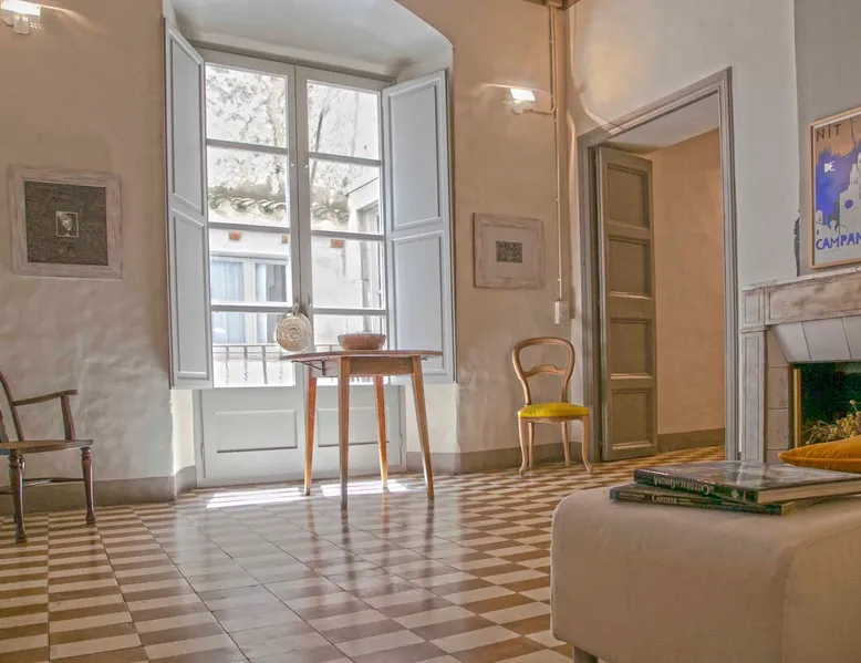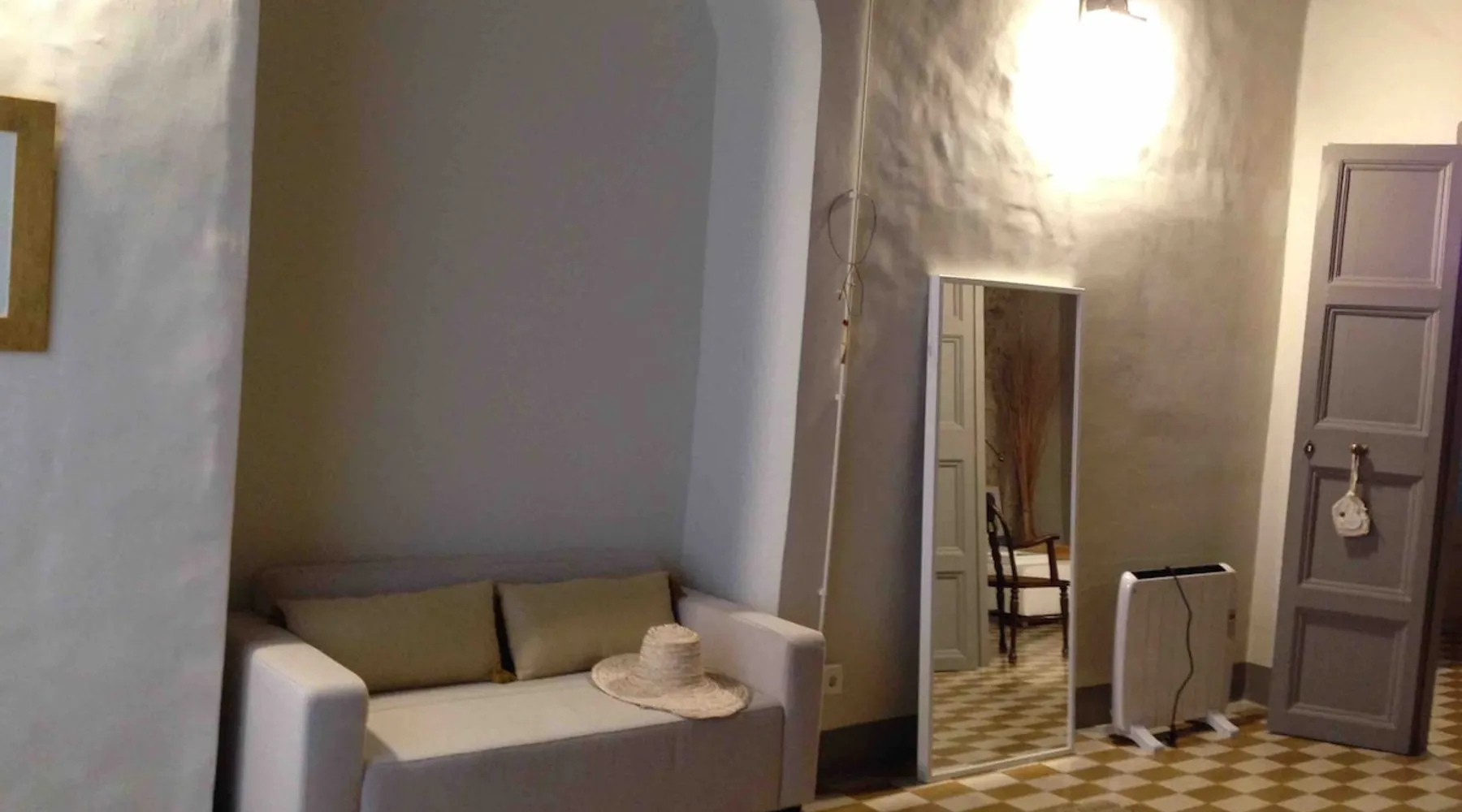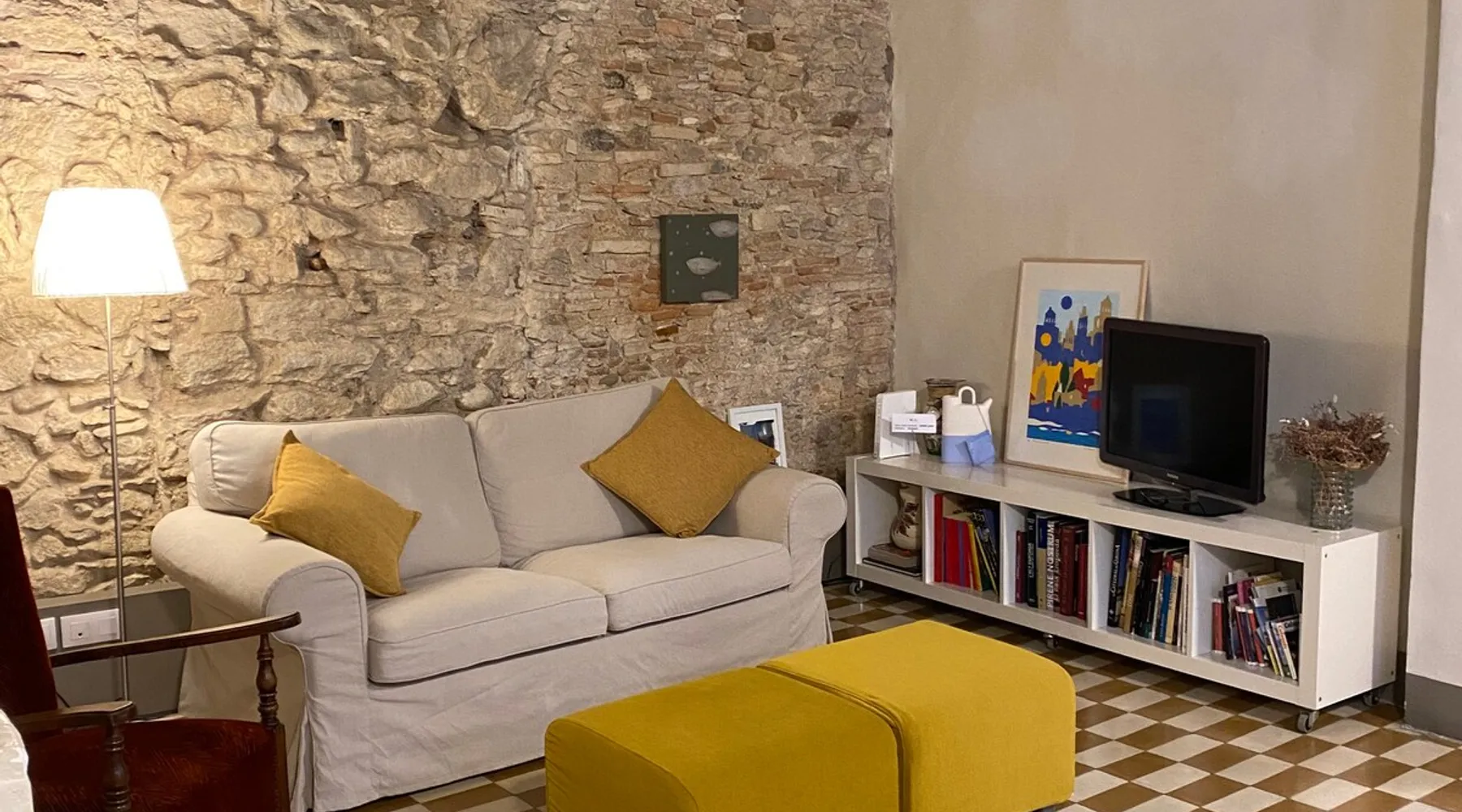 The apart. is located at carrer Força, the main street of the historic quarter of Girona, in a mansion from 1703, the place where the 2nd synagogue of the jewish community was located in the 14th century. Completely renovated, it preserves old elements like stone walls, beamed ceilings, fireplaces, mosaic floor. New kitchen and bathroom, spacious living room and large bedroom. A few steps from the shopping center and a variety of restaurants, has all the amenities for a unique and special stay The space Located only steps from the Cathedral of Girona, the major tourist attractions and the shopping center. Fully refurbished, but retains elements that give special personality: stone walls, ancient mosaics, wooden beams. The kitchen (fully equipped) and the bathroom are completely new. There is a small patio accessible from the kitchen, a spacious living room and a large bedroom of 30 sq m. and 4'50 m. tall. It is decorated with small pieces of local artists. Nuri and Joan Carles will welcome and will give you the keys of the apartment, so you can come and go at your convenience, and we'll recommend all you may interested in, to have a pleasant stay. Guest access The apartment is the only tourist apartment in the house and is completely independent, with its own access from the first floor, where the owners live. Other things to note Register HUTG-023417 (Government of Catalonia) Registration details HUTG-023417