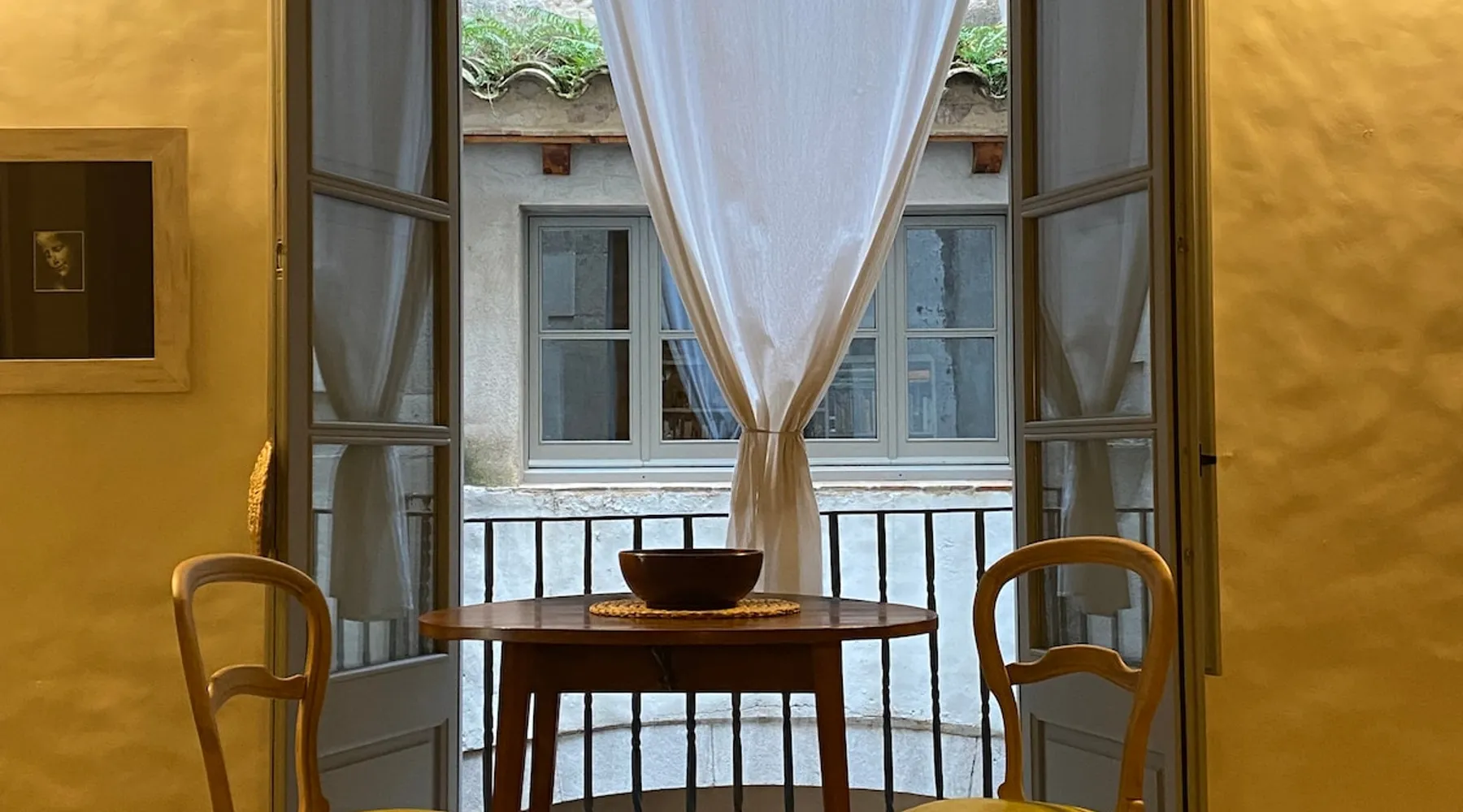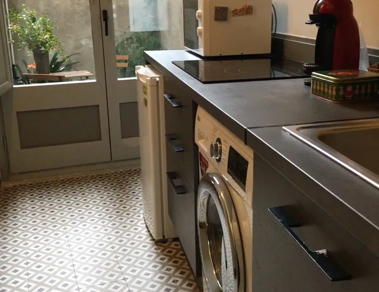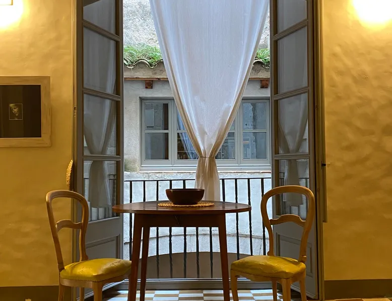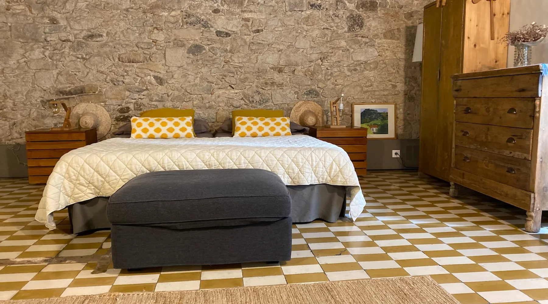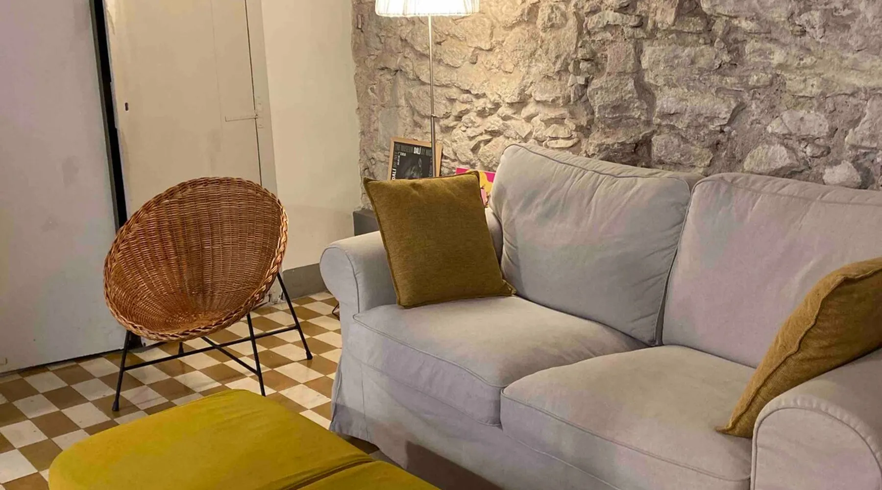 The apart. is located at carrer Força, the main street of the historic quarter of Girona, in a mansion from 1703, the place where the 2nd synagogue of the jewish community was located in the 14th century. Completely renovated, it preserves old elements like stone walls, beamed ceilings, fireplaces, mosaic floor. New kitchen and bathroom, spacious living room and large bedroom. A few steps from the shopping center and a variety of restaurants, has all the amenities for a unique and special stay The space Located only steps from the Cathedral of Girona, the major tourist attractions and the shopping center. Fully refurbished, but retains elements that give special personality: stone walls, ancient mosaics, wooden beams. The kitchen (fully equipped) and the bathroom are completely new. There is a small patio accessible from the kitchen, a spacious living room and a large bedroom of 30 sq m. and 4'50 m. tall. It is decorated with small pieces of local artists. Nuri and Joan Carles will welcome and will give you the keys of the apartment, so you can come and go at your convenience, and we'll recommend all you may interested in, to have a pleasant stay. Guest access The apartment is the only tourist apartment in the house and is completely independent, with its own access from the first floor, where the owners live. Other things to note Register HUTG-023417 (Government of Catalonia) Registration details HUTG-023417