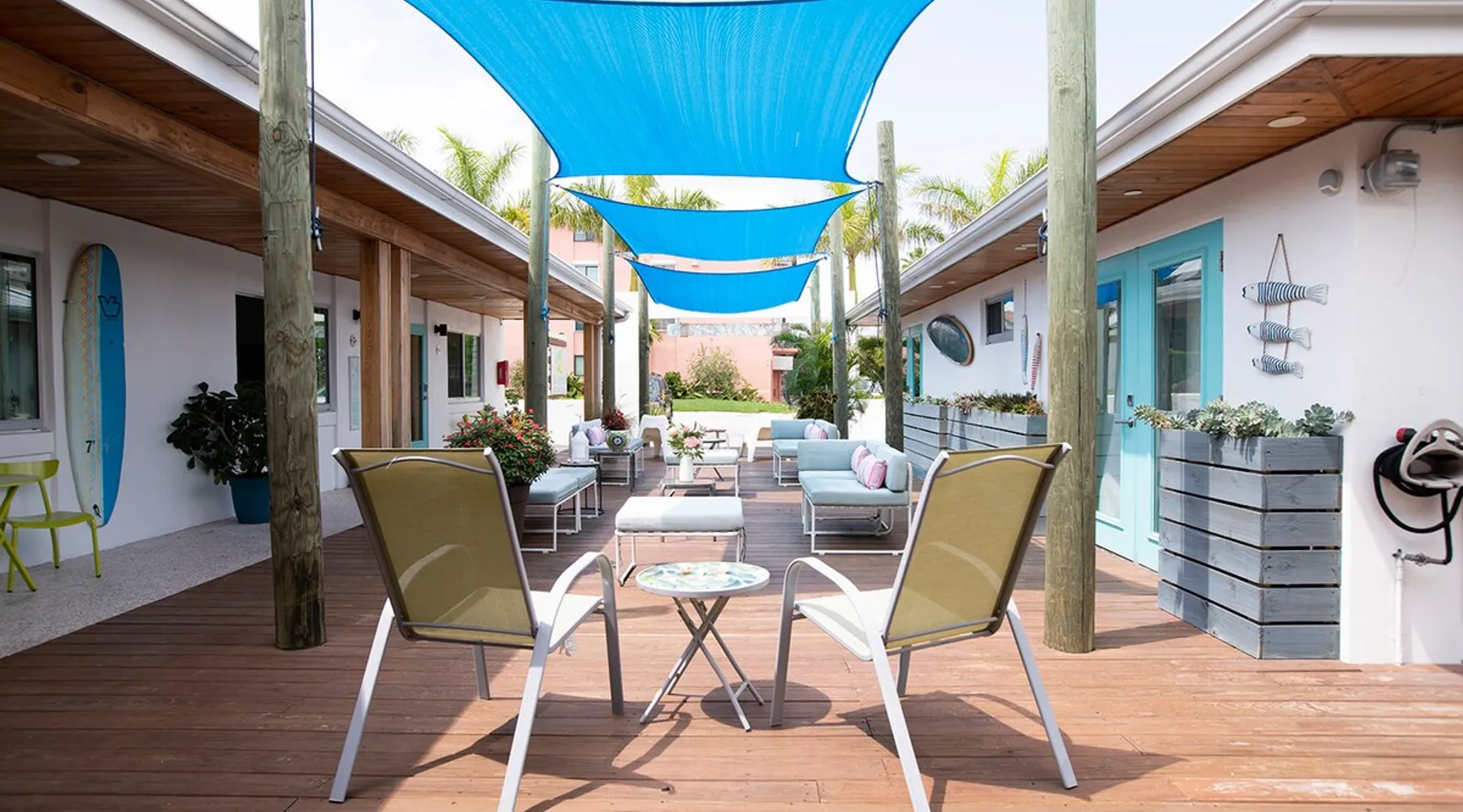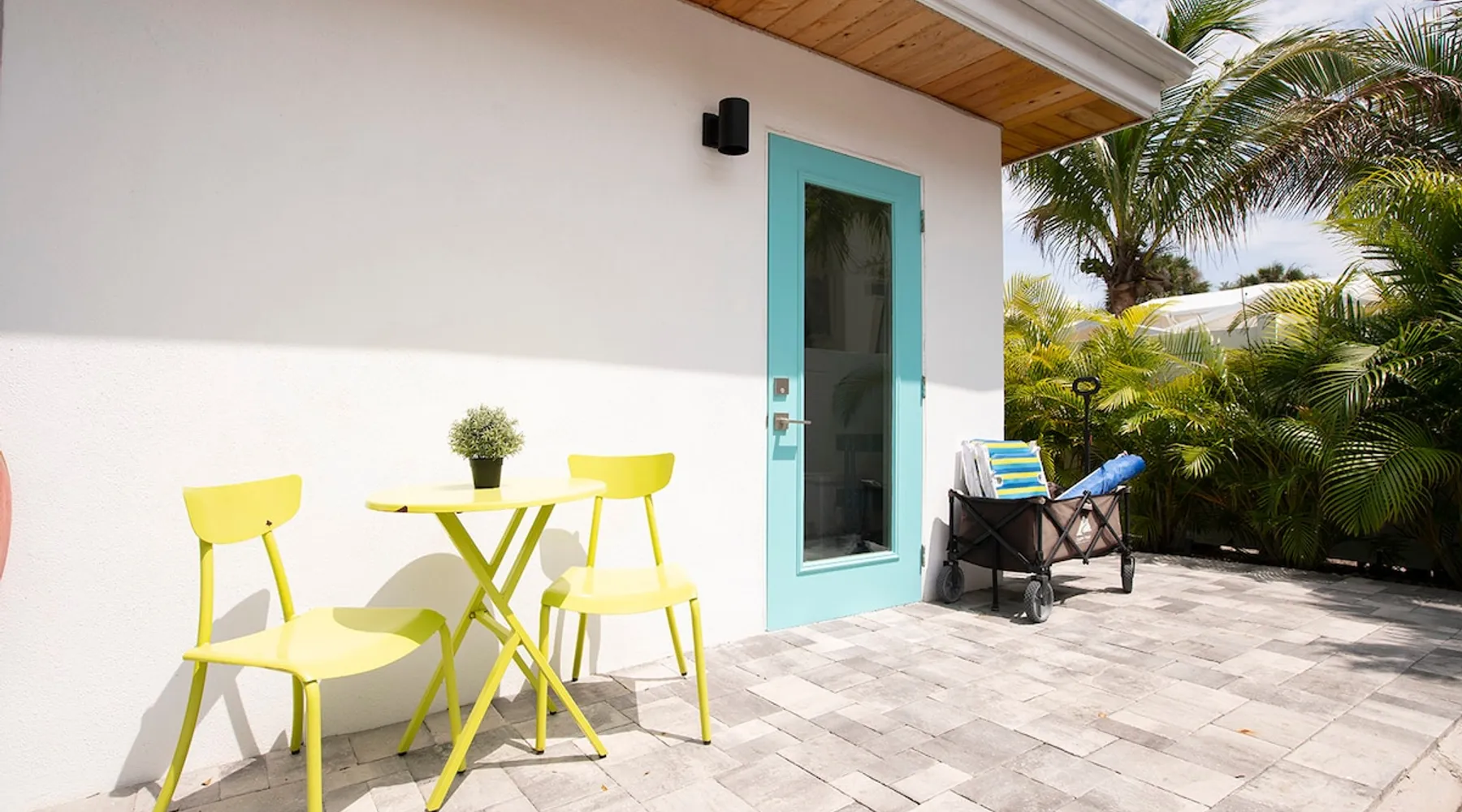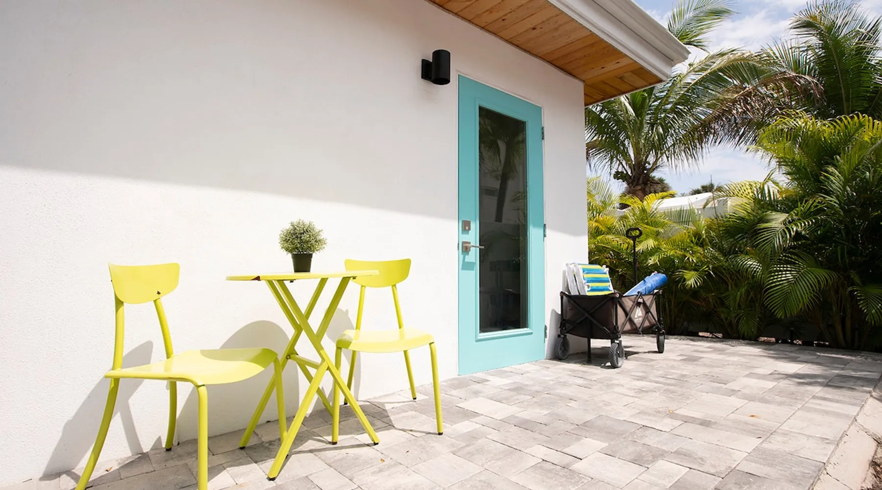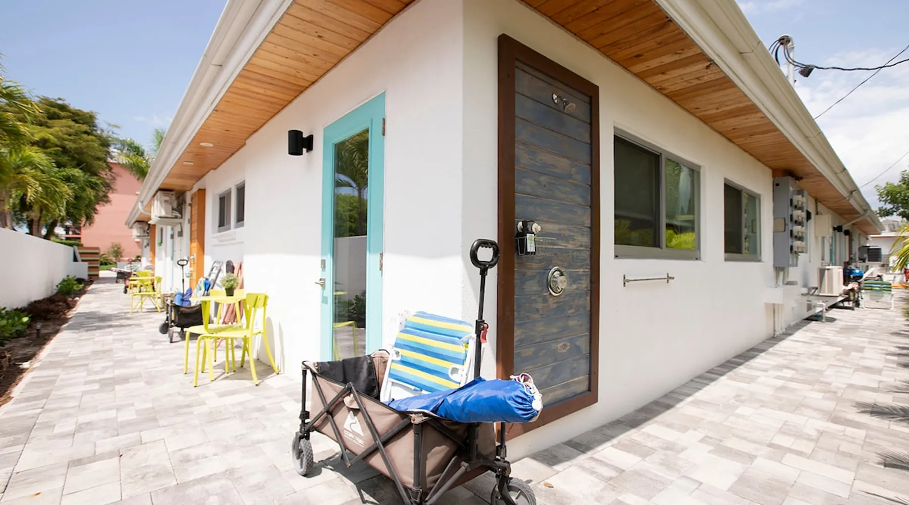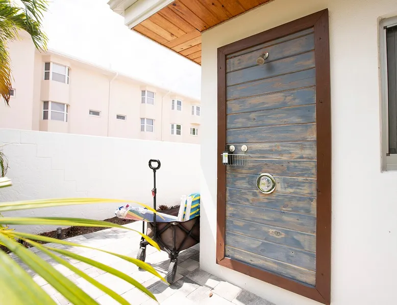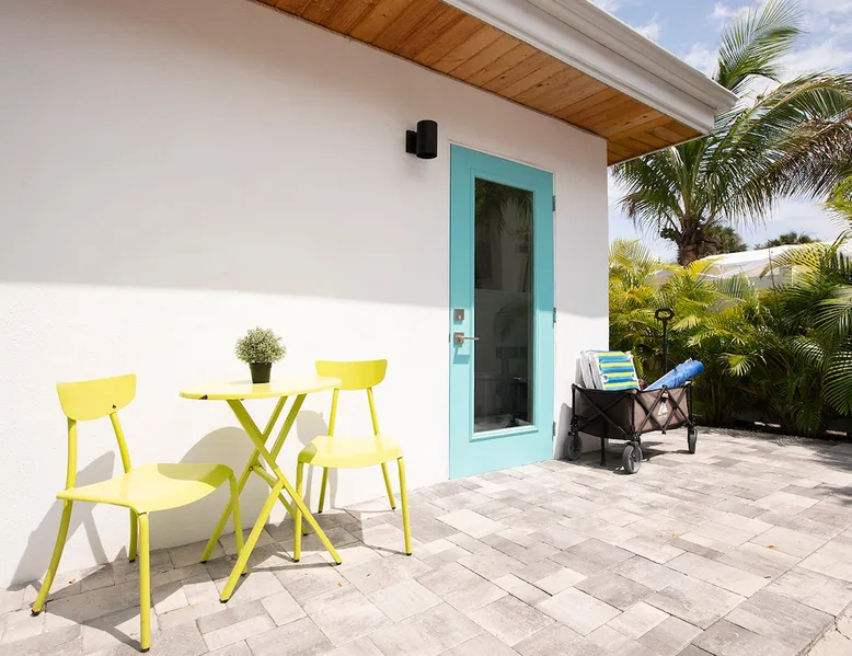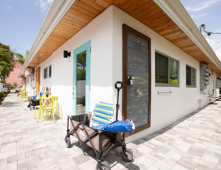 Casa Limonada Boutique Motel is situated in the heart of picturesque Lido Key, a great place to enjoy outdoor adventures, incredible sunsets, world-class dining experiences, and boutique shopping in the warm sunshine of Florida’s West Coast. Guests are a short stroll from the white sands of Lido Beach, minutes from the vibrant tourist destination of St. Armand’s Key, and a quick drive to downtown Sarasota, Siesta Key, or Longboat Key. We are the perfect destination for your Florida vacation! The space This is our most common style of rental. The room is designed for 2 and offers a spacious kitchenette. • King-Sized Bed • Flat screen smart TV • Refrigerator • Microwave • Dishes • Coffee Maker • Kitchenette • Dining Table • Outdoor Eating Space • WiFi • Beach Supplies (Wagon, Chairs, Umbrella) • Outdoor Shower Guest access Outdoor main deck area, outdoor showers, outdoor seating area, washer and dryer.
