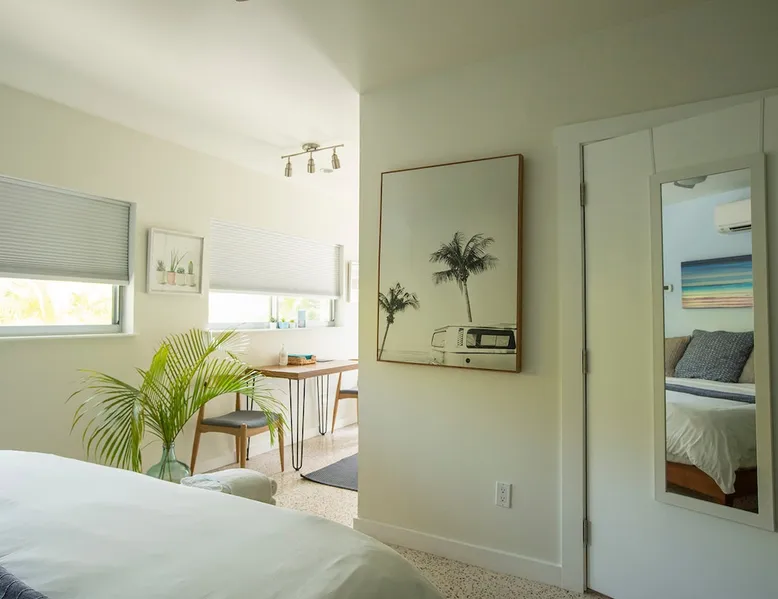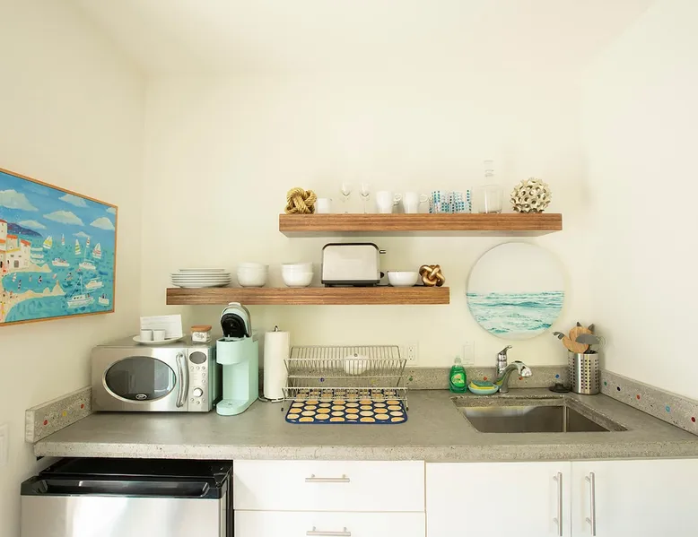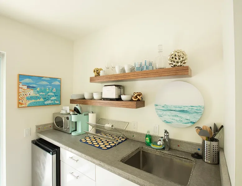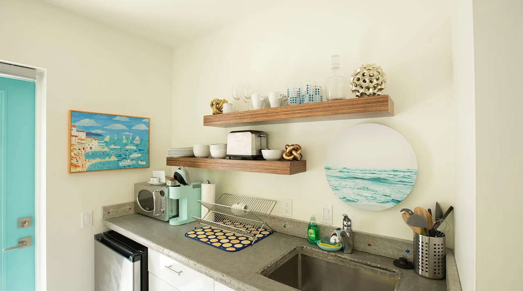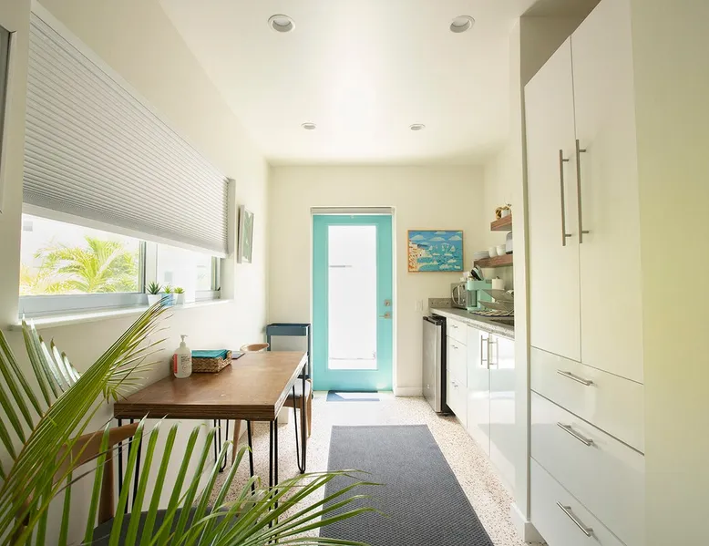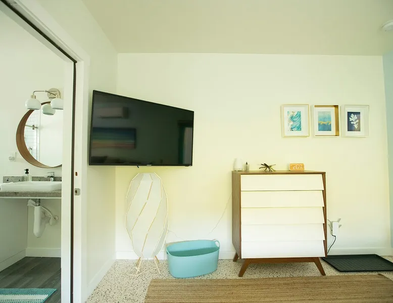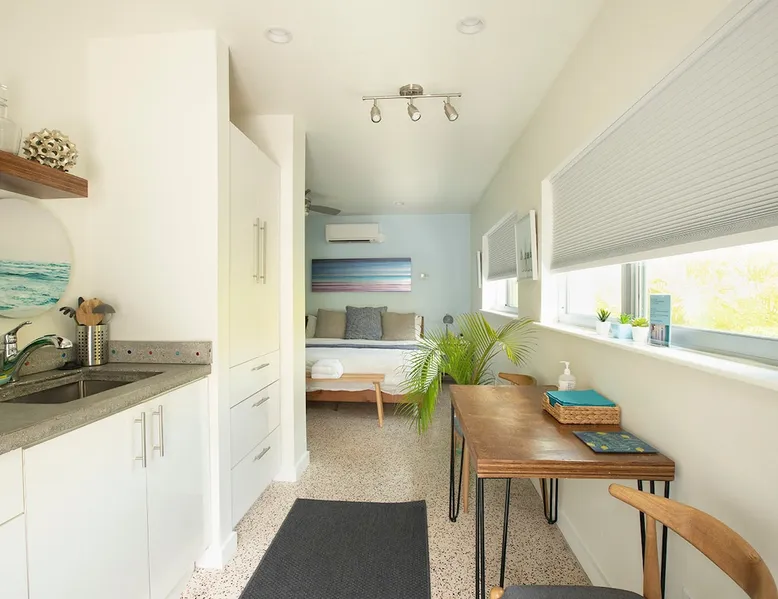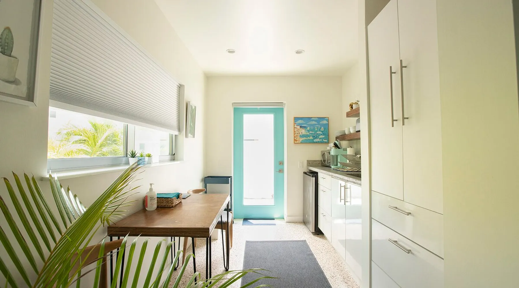 Casa Limonada Boutique Motel is situated in the heart of picturesque Lido Key, a great place to enjoy outdoor adventures, incredible sunsets, world-class dining experiences, and boutique shopping in the warm sunshine of Florida’s West Coast. Guests are a short stroll from the white sands of Lido Beach, minutes from the vibrant tourist destination of St. Armand’s Key, and a quick drive to downtown Sarasota, Siesta Key, or Longboat Key. We are the perfect destination for your Florida vacation! The space This is our most common style of rental. The room is designed for 2 and offers a spacious kitchenette. • King-Sized Bed • Flat screen smart TV • Refrigerator • Microwave • Dishes • Coffee Maker • Kitchenette • Dining Table • Outdoor Eating Space • WiFi • Beach Supplies (Wagon, Chairs, Umbrella) • Outdoor Shower Guest access Outdoor main deck area, outdoor showers, outdoor seating area, washer and dryer.