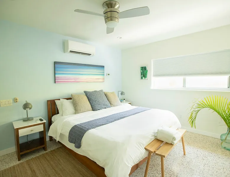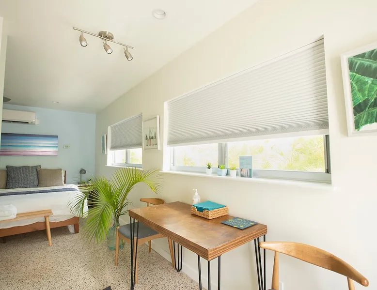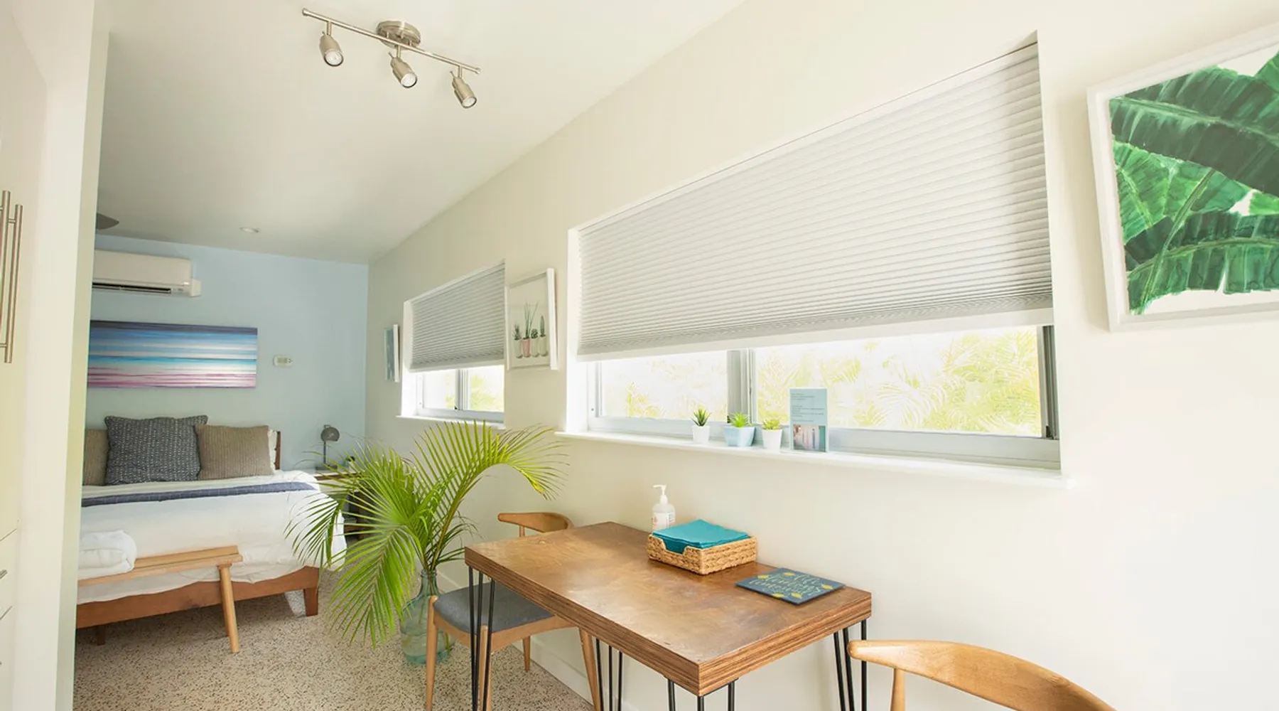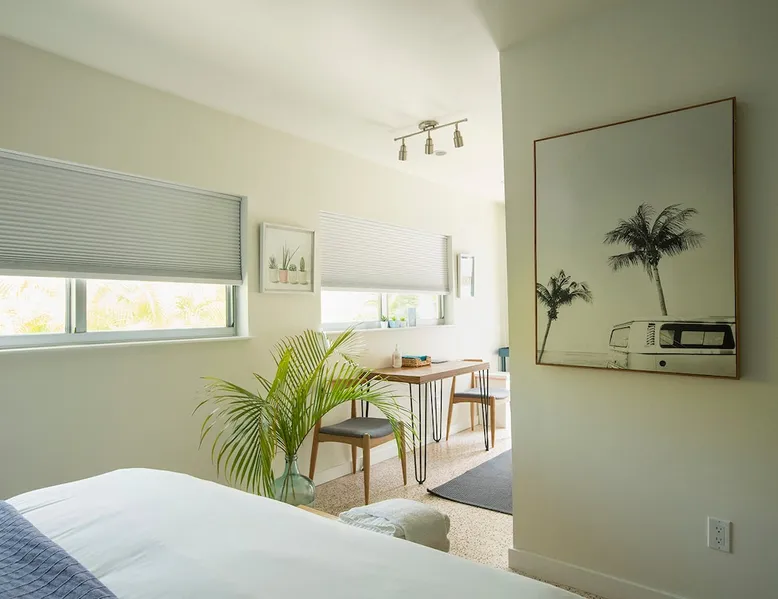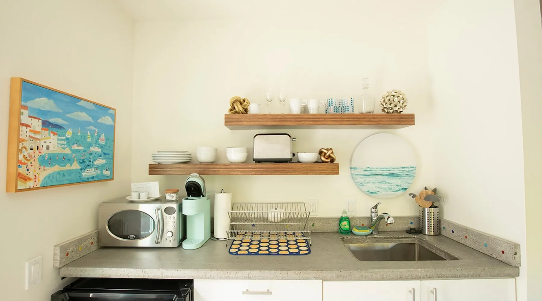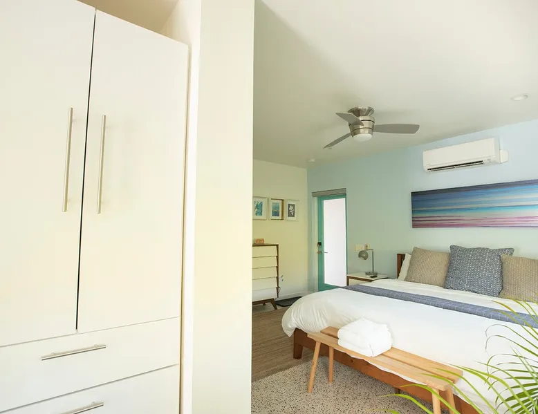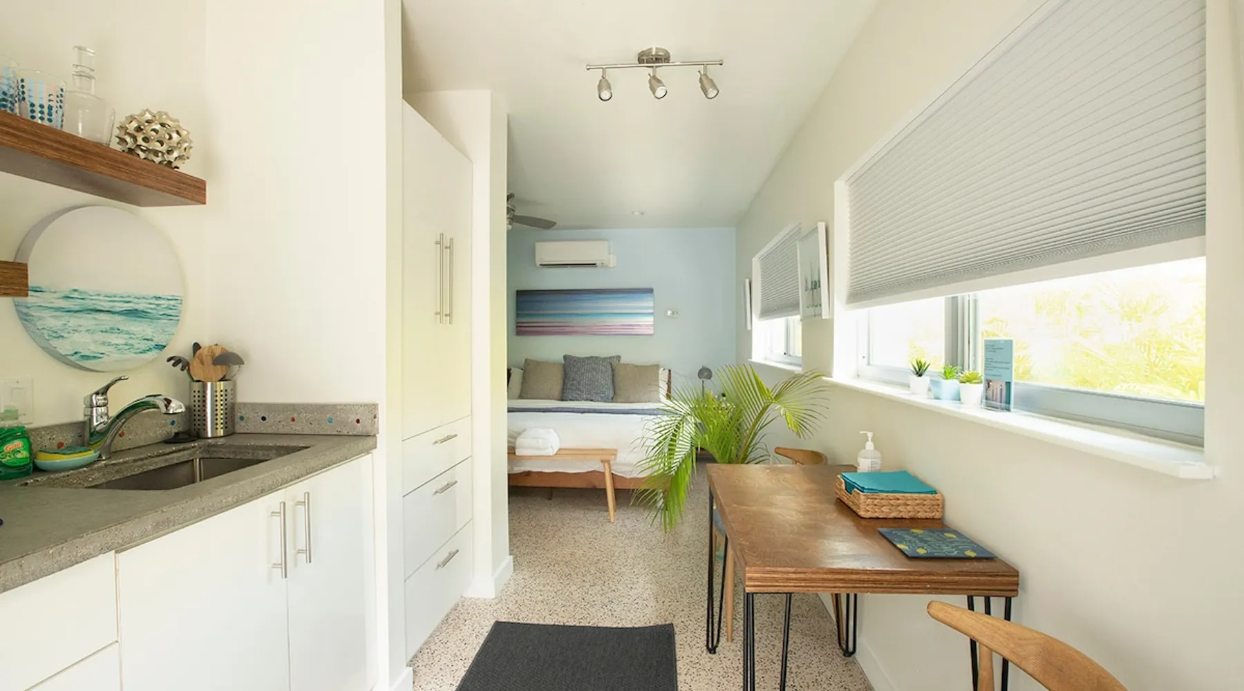 Casa Limonada Boutique Motel is situated in the heart of picturesque Lido Key, a great place to enjoy outdoor adventures, incredible sunsets, world-class dining experiences, and boutique shopping in the warm sunshine of Florida’s West Coast. Guests are a short stroll from the white sands of Lido Beach, minutes from the vibrant tourist destination of St. Armand’s Key, and a quick drive to downtown Sarasota, Siesta Key, or Longboat Key. We are the perfect destination for your Florida vacation! The space This is our most common style of rental. The room is designed for 2 and offers a spacious kitchenette. • King-Sized Bed • Flat screen smart TV • Refrigerator • Microwave • Dishes • Coffee Maker • Kitchenette • Dining Table • Outdoor Eating Space • WiFi • Beach Supplies (Wagon, Chairs, Umbrella) • Outdoor Shower Guest access Outdoor main deck area, outdoor showers, outdoor seating area, washer and dryer.
