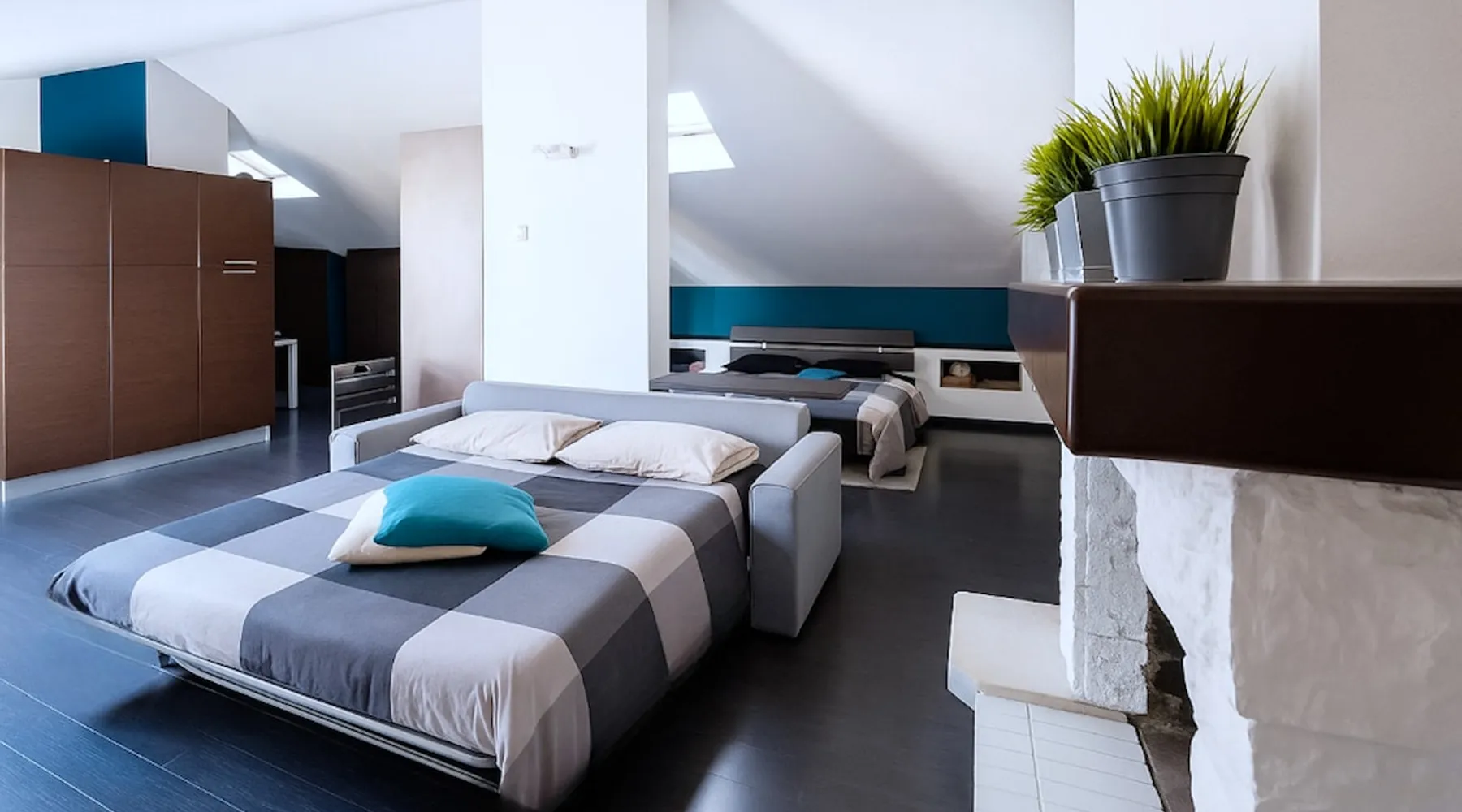 Borgo d'Oro Loft enjoys a location in Bergamo. Just 500 metres from Gewiss Stadium and Chorus life, from 1.5 km from Teatro Donizetti. The nearest airport is Orio Al Serio International Airport, 10-15 minutes with car from the property. You can reach any point of interest easily to walk or with public transport. The famous Upper Town (Citta Alta) is accessible with a relaxing walk of 20 minutes with a suggestive staircase or by a car or funicolar or bus. The space The Borgo d'oro Loft is a stone's throw from Chorus Life and Gewiss Stadium, also close to many restaurants in the neighborhood (Vesuvio, Osteria Borgo d'Oro, Ristorante Tijuana, Borghetto, etc.) and has many shops and services nearby all within 3-4 minutes walking distance (supermarkets, pharmacies, laundries...). Check-in: 15-21 (21-22 is free with notice). A surcharge of 30 EUR applies for arrivals after 22:00 and 40 EUR for arrivals after 23:00. Past 00.00 will not be allowed a Check-in (eventual availability upon request only). At Check-in you will be required to show the ID documents of every guests (Including children of any age). An italian law asks Host to collect Guest's data (Art.109). Your home in the heart of Bergamo with every service within walking distance (Bus, Banks, Supermarkets, Restaurants, Pharmacies, etc.), in Bergamo's liveliest and coolest neighborhood. Guest access Guests will have a pleasant outdoor space on the fully independent terrace overlooking the rooftops of the city and with the hills and mountains in the distance in the background. Other things to note Borgo d'Oro Loft is also close to many restaurants in the neighborhood (Vesuvio, Osteria Borgo d'Oro, Ristorante Tijuana, Borghetto, etc.) and has many shops and facilities around (supermarkets like Esselunga, Aldi, Penny Market MD Discount, pharmacies, laundry…). There are Public transport facilities under the building, 20-30 meters (Bus e TEB). Registration Details IT016024C17JKCAXKV