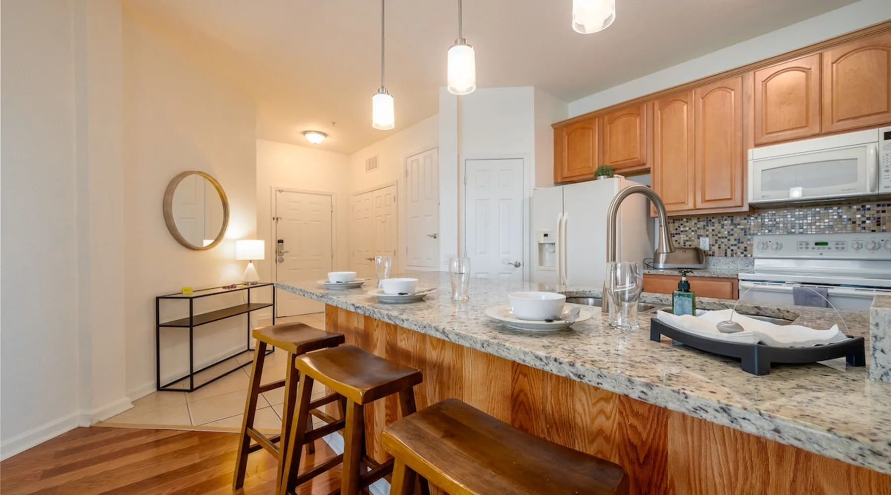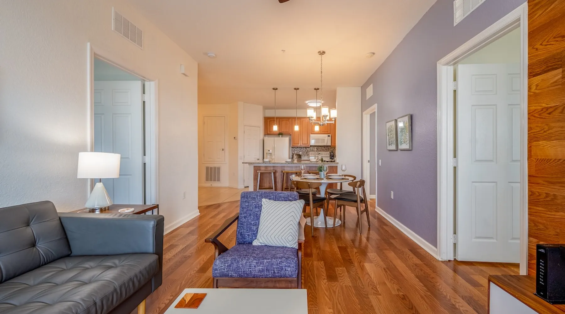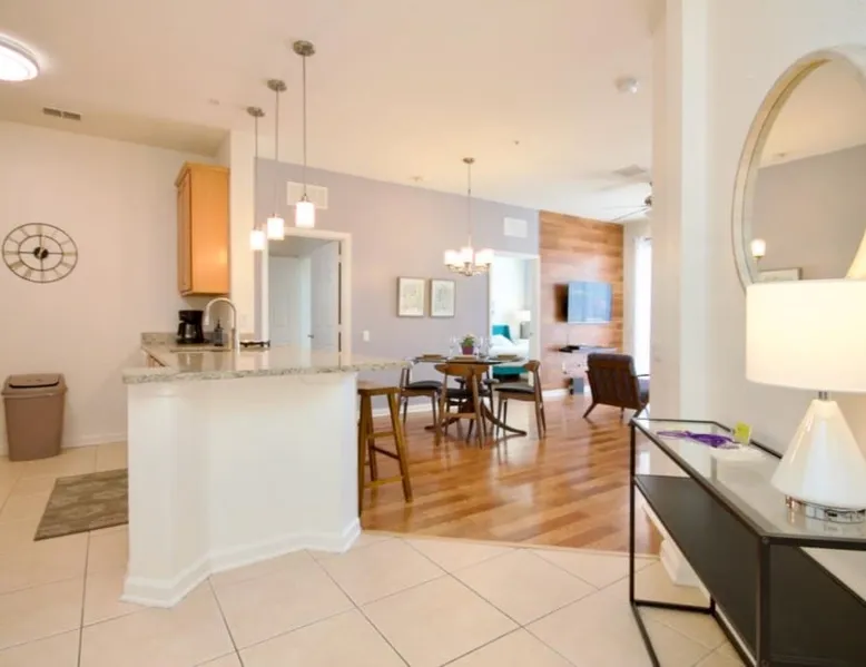 Vista Cay Luxury Star, Walk to EPIC UNIVERSE and Conventions The space Mid Century Modern 3rd floor corner unit. Next to EPIC Universe, Universal Studio’s new theme park. Minutes to the other theme parks and you can walk to the convention center and International Drive. Super stylish, quiet condo close to pool, stores and casual dining. Our home has been professionally decorated and designed. This stylishly furnished vacation home has many small personal touches and amenities that will make your stay like a home away from home. Dogs can be accommodated for a nightly Pet fee. Please inquire with host. THE SPACE Welcome to our new, remodeled light, airy, 3 bedroom, 2 bathroom condo in the fabulous gated Vista Cay Resort community just minutes to everything! Quiet and private this condo sleeps up to 6. Hard floors, remodeled kitchen plus all new furniture! You will love our open-plan space with comfortable seating and south facing balcony. The dining area leads to a fully equipped open plan remodeled kitchen with everything you might need to prepare a quick breakfast to dinner with a granite counter height breakfast bar. Just off the living area, with comfy seating and big screen smart TV, is a private balcony where you can enjoy the sun all day. BED & BATH The master bedroom has a hybrid king mattress with en-suite bathroom and a large walk in shower. The 2 guest bedrooms both have pillow-top mattresses (1 is king, the other a queen). and all bedrooms have overhead fans and Roku TVs. Other Features No Check In line. Our guests go directly to their condo Air conditioned throughout Free WiFi. lightning speed and secure Free local and North America calls Free premium TV package with 250 channels on all TVs Smart TV in living room. Flat screens in all other rooms Free secured parking in front of the building Access to all the resort amenities Full laundry room in unit Fully equipped kitchen Free pack n play and highchair Linens, towels, pool towels, hairdryers Two large elevators service the building No Smoking DIGITAL GUIDE We provide you with a Digital Guest Guide packed with information for the condo, resort, and the area. This will be sent with your arrival information, it is in your House Manual, and there is also a QR code that is located in the flyer on the kitchen wall. LOCATION Vista Cay is a gated resort community in the best possible location, in Orlando, Florida. We are just a short walk to the Orlando Convention Center, and only minutes to all the local attractions such as Disney World, Universal Studios, Discovery Cove, and Sea World. We are on Universal Boulevard and Destination Parkway, across the street from the new EPIC Universe, Universal studio’s new theme park, and one block away from International Drive. Orlando International Airport is 15 minutes away, and we have world class shopping at the Mall of Millenia, Florida Mall, and Premium Outlet Malls, just 10 minutes away. We are also surrounded by all kinds of restaurants including 5-star dining. Next to the property in Lake Cay Commons, a shopping plaza with a large supermarket (Publix), UPS store, Universal liquor store, Dunkin Doughnuts, Universal Day Spa and Massage, City Nails and Spa of Orlando, Barber Shop, and several restaurants. MANAGEMENT Your Vista Cay is a small, friendly & professional management company. We are based on Vista Cay Resort and always available to assist you. We aim to make your stay the best possible, so don't hesitate to contact us at any time with any needs you may have before or during your stay. This is your home away from home and we hope you'll be relaxed, comfortable and leave with great memories of your time with us. We manage several properties in Vista Cay Resort. So, if the property you are interested in is not available for your dates, please send us an inquiry, so that we can send you the other listings that we do have available. In the unlikely event that circumstances necessitate us to change the property confirmed on your reservation, we will seek to relocate your reservation to a property of a similar or superior standard within our available inventory. We reserve the right to make this change and accept no responsibility for any changes in amenities or furnishings. Guest access Guests have full access to all the resort amenities. The main heated resort pool is enormous with an infinity edge, and is surrounded by a multilevel deck, a kids splash pool, and a full-service Tiki bar that serves drinks and food. A resort-sized Jacuzzi tub that can accommodate 12 guests is adjacent to the pool. The clubhouse has a gift store, gym, games room, movie theatre, theme park attraction ticket booth, and business center. There are also Movies at the Pool on certain evenings during the week. The resort also has two areas where there are charcoal BBQ grills and a picnic area with tables. There is a playground and multi-sport court. There are several Electric Vehicle Chargers on each side of the resort. We are a gated resort with plenty of free parking and 24-hour security on site.
