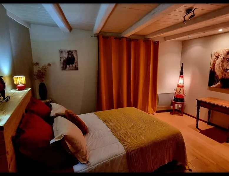 The Jardins de Kuz welcome you to the center of the Chartreuse and Belledonne mountains. We offer a room that will take you on a trip to the worlds of the Savannah. You will enjoy an outdoor garden with swimming pool and a large room equipped for your meals and moments of relaxation. A kitchen is available for your meal. Breakfasts are included in the night. You will have access to the wellness area as well as many one-off events. The space Our rooms We offer throughout the year 3 double rooms from 15 to 20 square meters with bathroom and toilet, dressing room. (If needed, possibility of an extra bed for one child.) The common living room On the ground floor you have free access to the living room with cozy and warm space. 3 4-seater tables are at your disposal, as well as a TV area or reading by the fire for the cool seasons. The communal kitchen The communal kitchen is open for lunch and evenings. In the morning, you will be offered a breakfast included in the room rate. Upon request, we will prepare dishes for you from local products and following the seasons. The pool The pool is secured by a barrier. To enjoy this space with peace of mind, all you have to do is ask us for the key. Wellness moments We also offer annual programming of various workshops (Yoga, Shiatsu, meditation...) as well as wellness and wellness treatments in Chinese energy, Qi Nei Tzang or Tuina massages, drum treatment, Poyet method, upon prior registration. Guest access Our rooms We offer you all year round 3 double rooms from 15 to 20 square meters with private bathroom and toilet, dressing room. (If needed, possibility of an extra bed for one child.) The common lounge On the ground floor you have free access to the lounge with cozy and warm space. 3 tables 4 seats are at your disposal, as well as a TV area or reading by the fireplace for the cool seasons. The communal kitchen The communal kitchen is open for lunch and evenings. In the morning, you will be offered a breakfast included in the room rate. Upon request, we will prepare dishes for you from local products and following the seasons. The pool The pool is secured by a barrier. To enjoy this space with peace of mind, all you have to do is ask us for the key. Wellness moments We also offer annual programming of various workshops (Yoga, Shiatsu, meditation...) as well as wellness and wellness treatments in Chinese energy, Qi Nei Tzang or Tuina massages, drum treatment, Poyet method, upon prior registration.