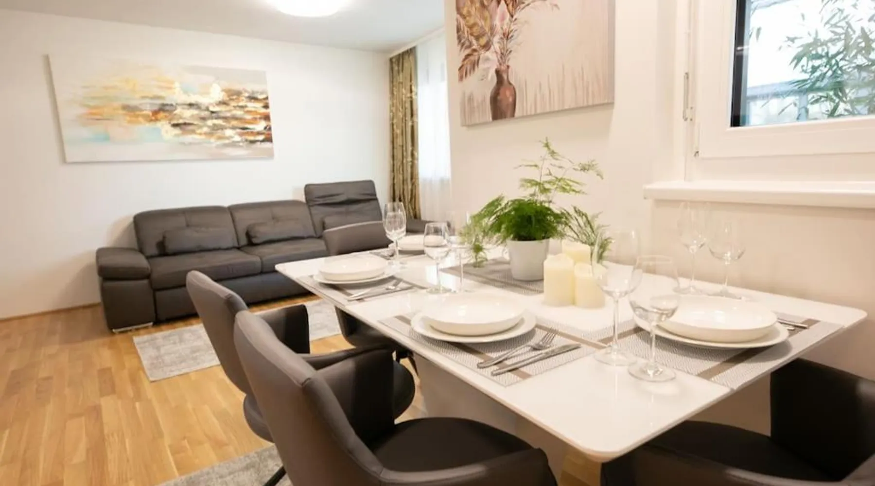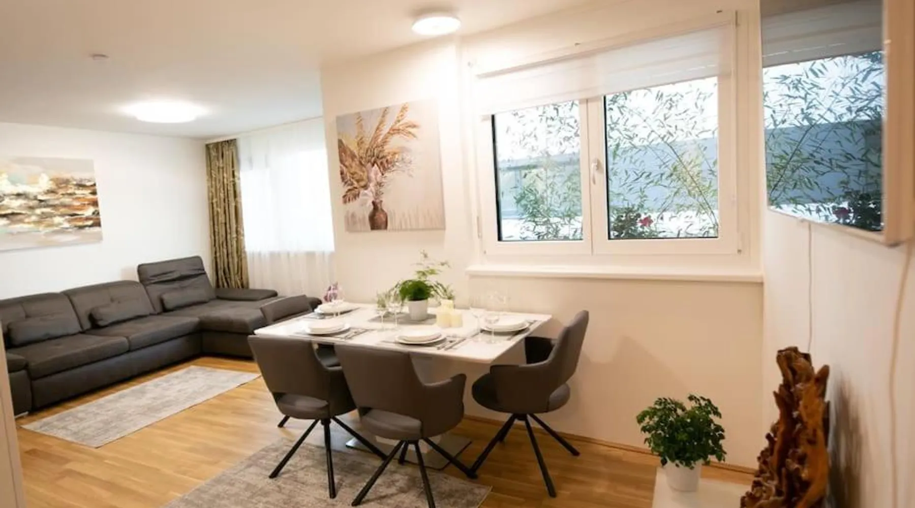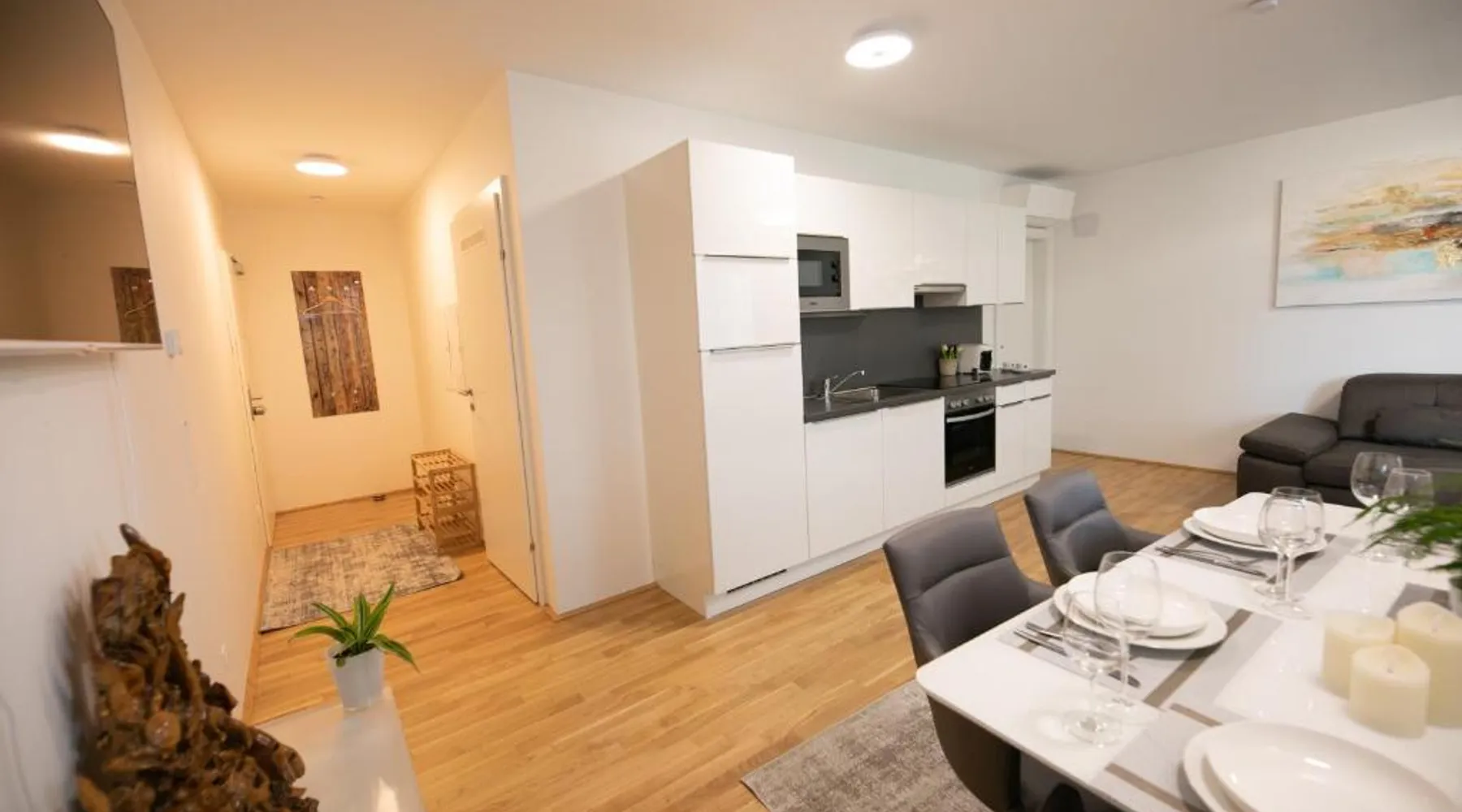 Comfortable Living: Schönes Living am Donauufer in Vienna offers a one-bedroom apartment with a living room. The property features a balcony with lake views, air-conditioning, and a kitchenette equipped with a refrigerator, oven, and dishwasher. Modern Amenities: Guests enjoy free WiFi, a washing machine, and a work desk. The apartment includes a dining area, sofa bed, and soundproofing for a relaxing stay. Convenient Location: Located 13 mi from Vienna International Airport, the apartment is a 17-minute walk from Austria Center Vienna. Nearby attractions include Messe Wien and Vienna Prater, each 2.5 mi away. Leisure Activities: The surrounding area offers water sports and boating, providing ample opportunities for outdoor enthusiasts. This apartment features 1 living room, 1 separate bedroom and 1 bathroom with a bath and free toiletries. In the kitchen, guests will find a stovetop, a refrigerator, a dishwasher and kitchenware. The air-conditioned apartment features a flat-screen TV with cable channels, a washing machine, soundproof walls, a tea and coffee maker as well as lake views. The unit has 2 beds.