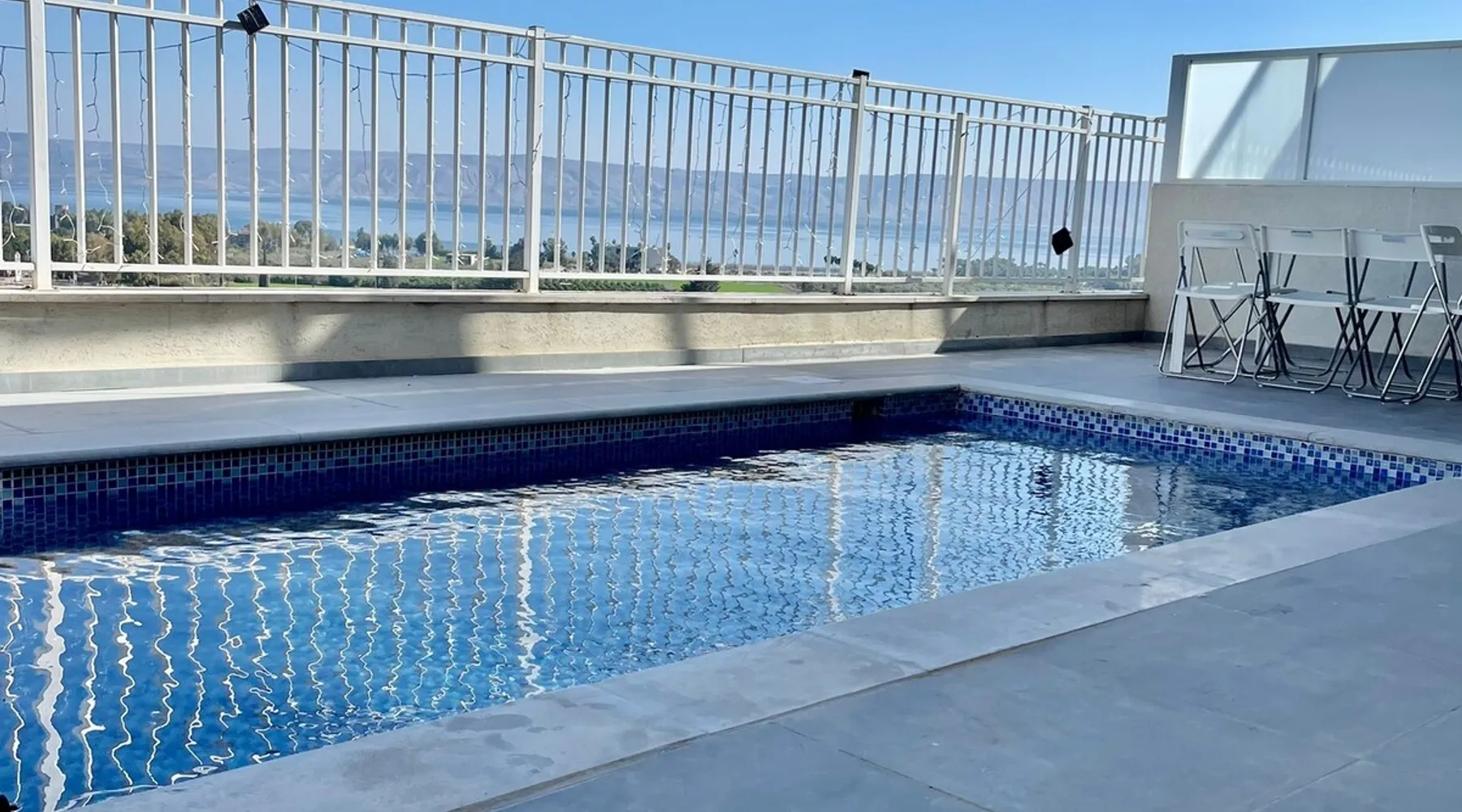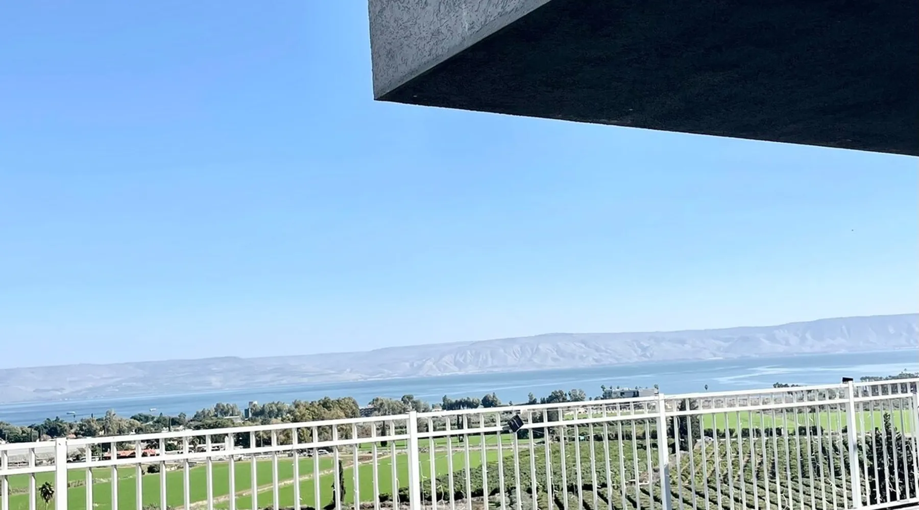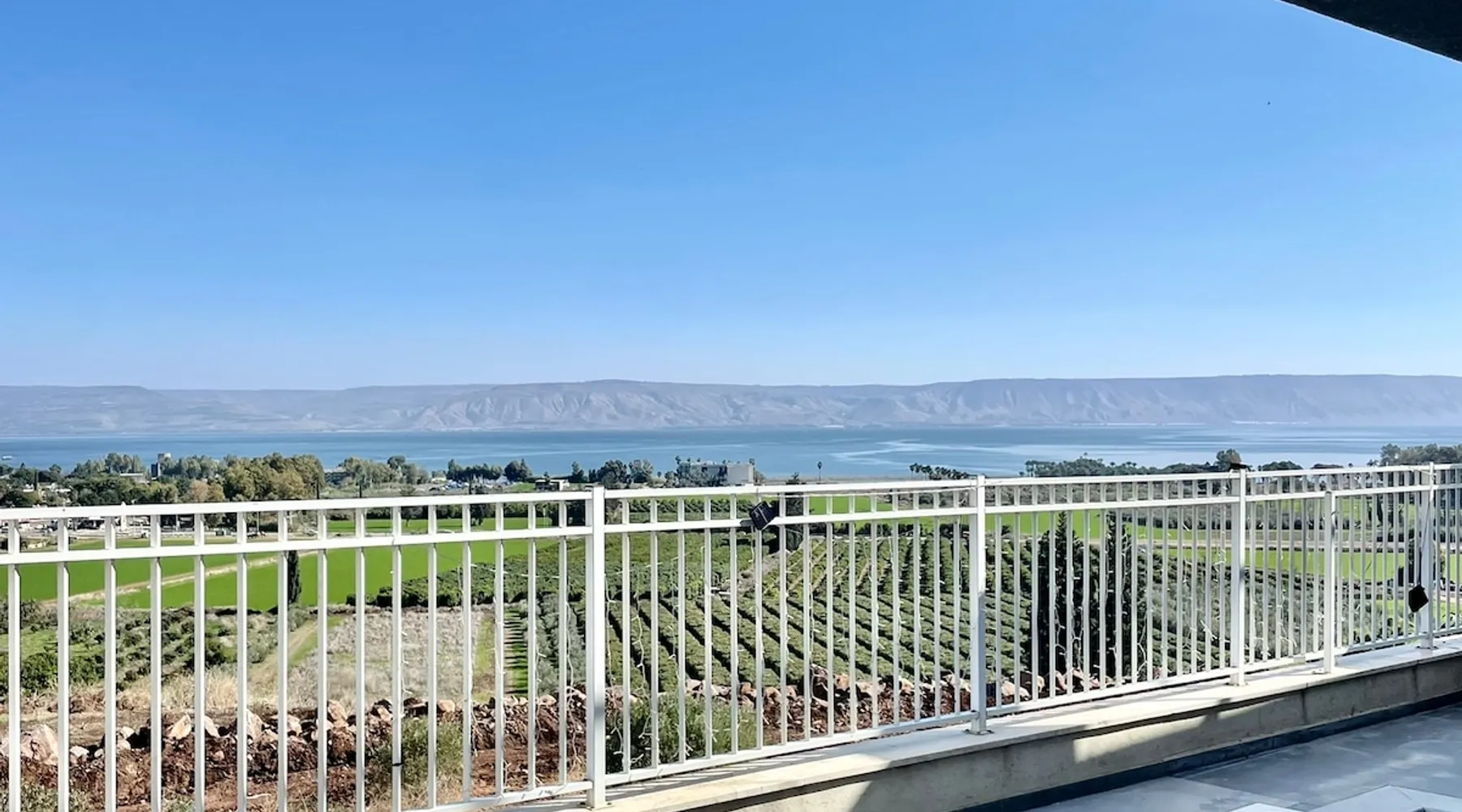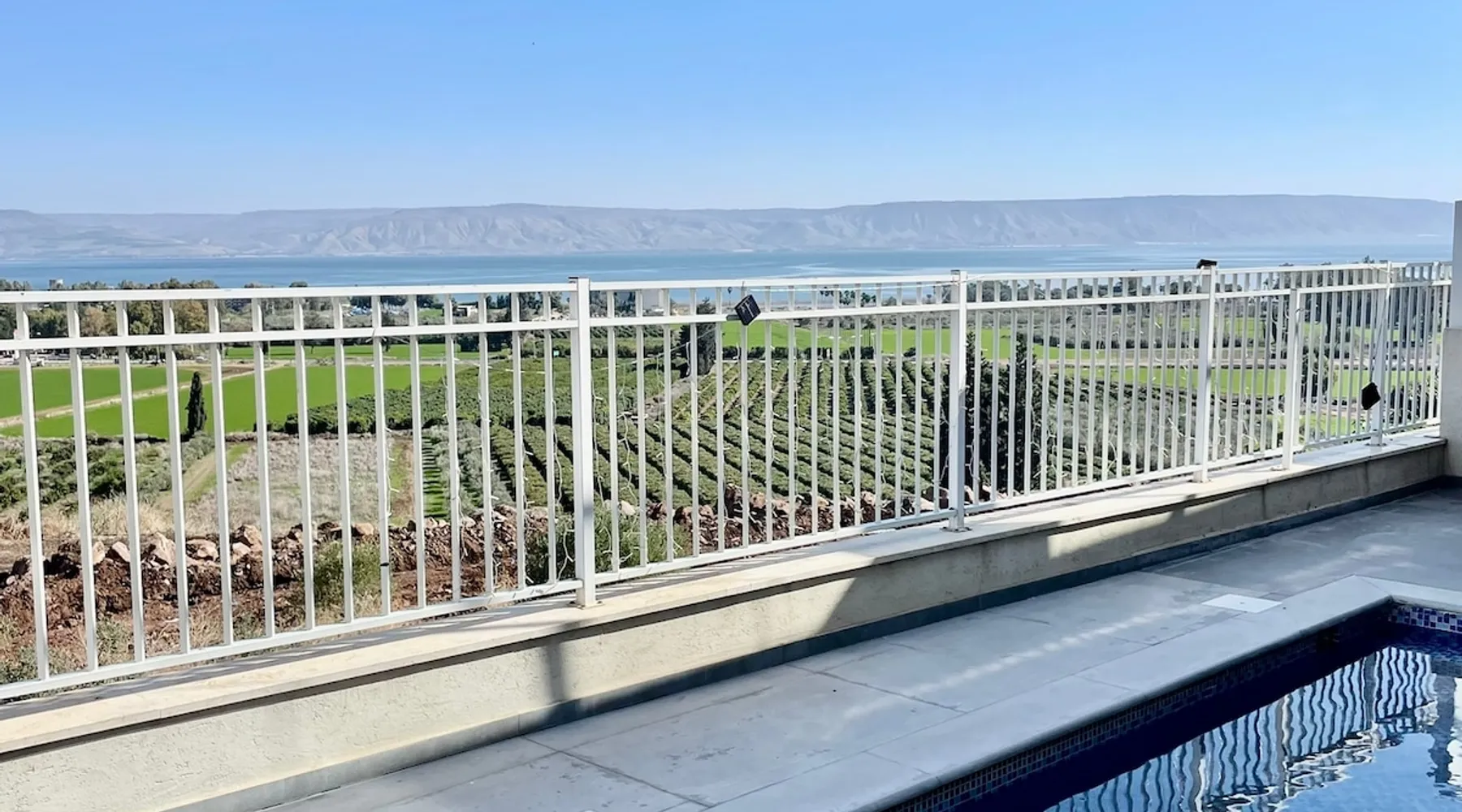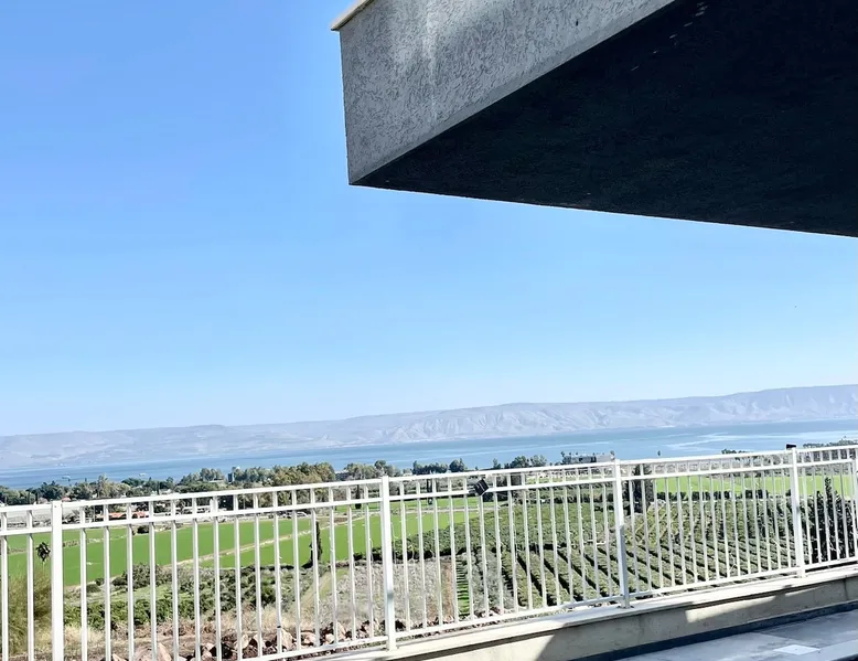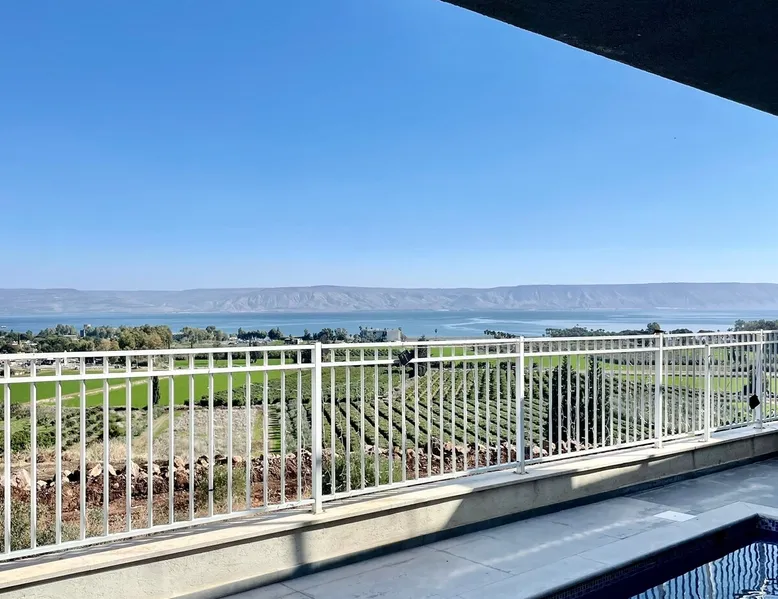 An amazing fully equipped villa in an unparalleled location with a panoramic view of the Sea of Galilee spread out in full view from a huge terrace. The villa has 2 floors and contains up to 12 persons. 4 bedrooms three showers, four toilets and two living rooms including sofa beds. On each floor an equipped kitchen and dining area. Private courtyard with heated pool (up to 35 degrees) and tanning areas, endless view and cheap barbecue area. The villa is located in a rural and pastoral area overlooking the green and the first line to the Sea of Galilee walking distance from springs and perfect for hiking, nature sports and many attractions. The space Amazing place with 4 bedrooms and two living rooms with sofa beds for children. Fully equipped and pampering. Stunning view of the Sea of Galilee and Mount Arbel. Guest access You have the whole place to yourself Other things to note Trails and trails streams of springs nearby and the Sea of Galilee and Ginosar Beach just opposite