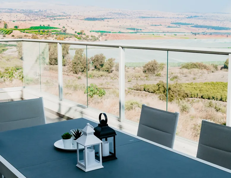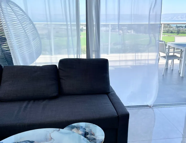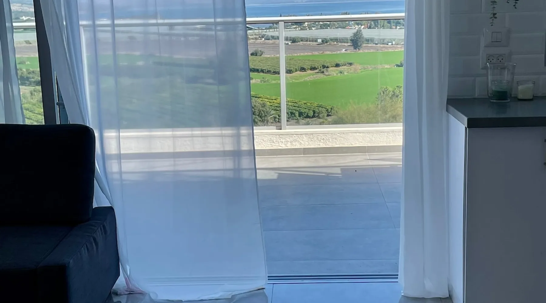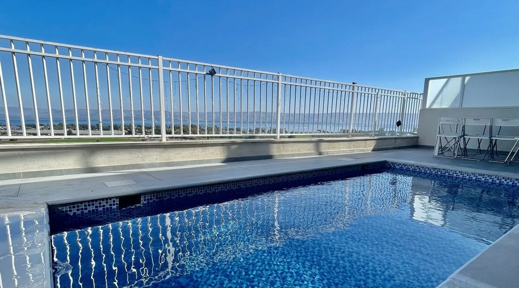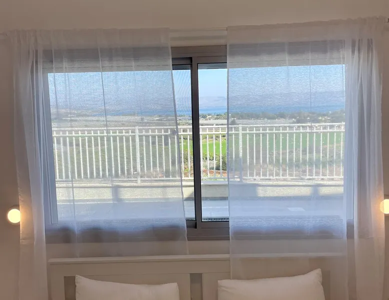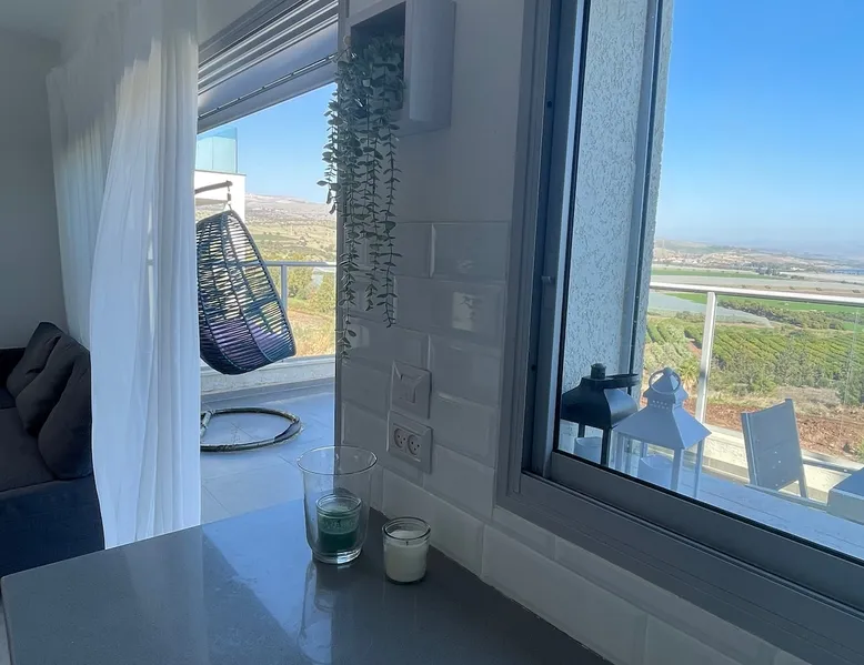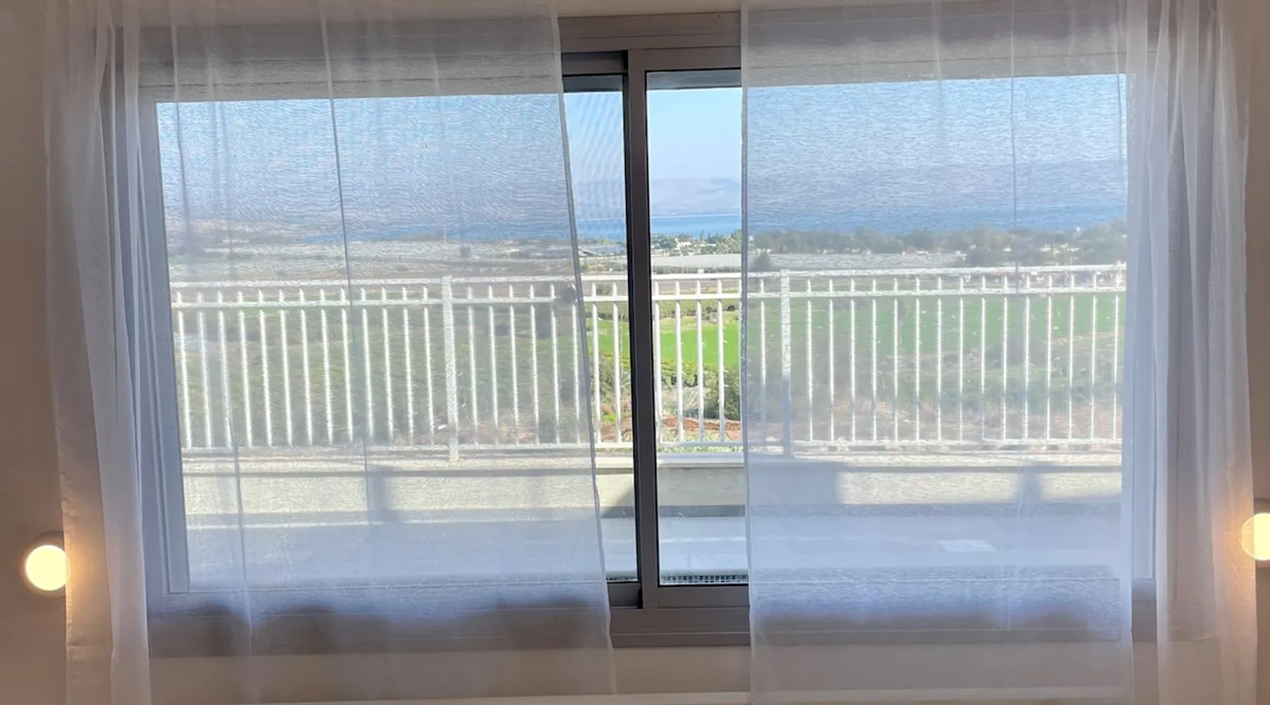 An amazing fully equipped villa in an unparalleled location with a panoramic view of the Sea of Galilee spread out in full view from a huge terrace. The villa has 2 floors and contains up to 12 persons. 4 bedrooms three showers, four toilets and two living rooms including sofa beds. On each floor an equipped kitchen and dining area. Private courtyard with heated pool (up to 35 degrees) and tanning areas, endless view and cheap barbecue area. The villa is located in a rural and pastoral area overlooking the green and the first line to the Sea of Galilee walking distance from springs and perfect for hiking, nature sports and many attractions. The space Amazing place with 4 bedrooms and two living rooms with sofa beds for children. Fully equipped and pampering. Stunning view of the Sea of Galilee and Mount Arbel. Guest access You have the whole place to yourself Other things to note Trails and trails streams of springs nearby and the Sea of Galilee and Ginosar Beach just opposite