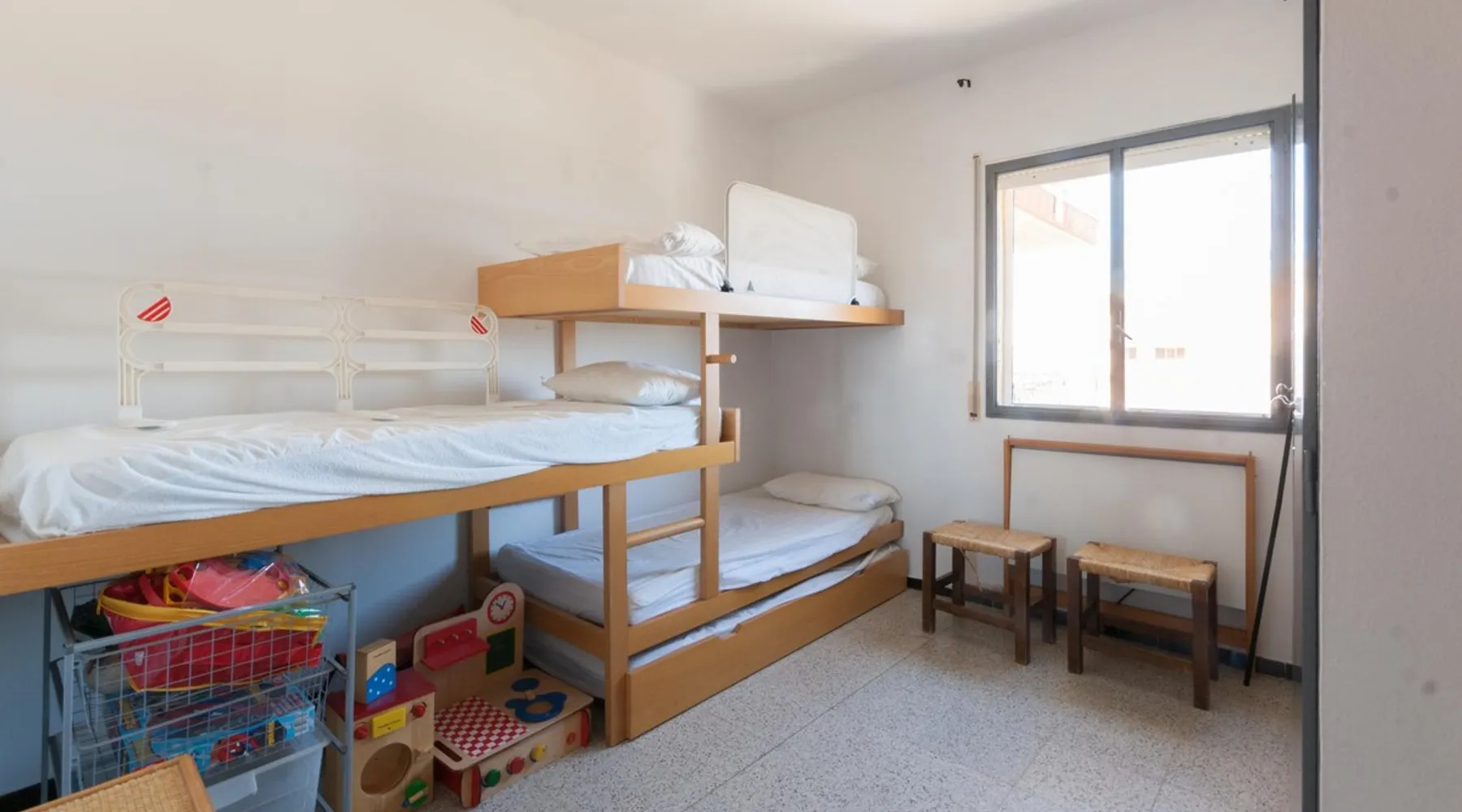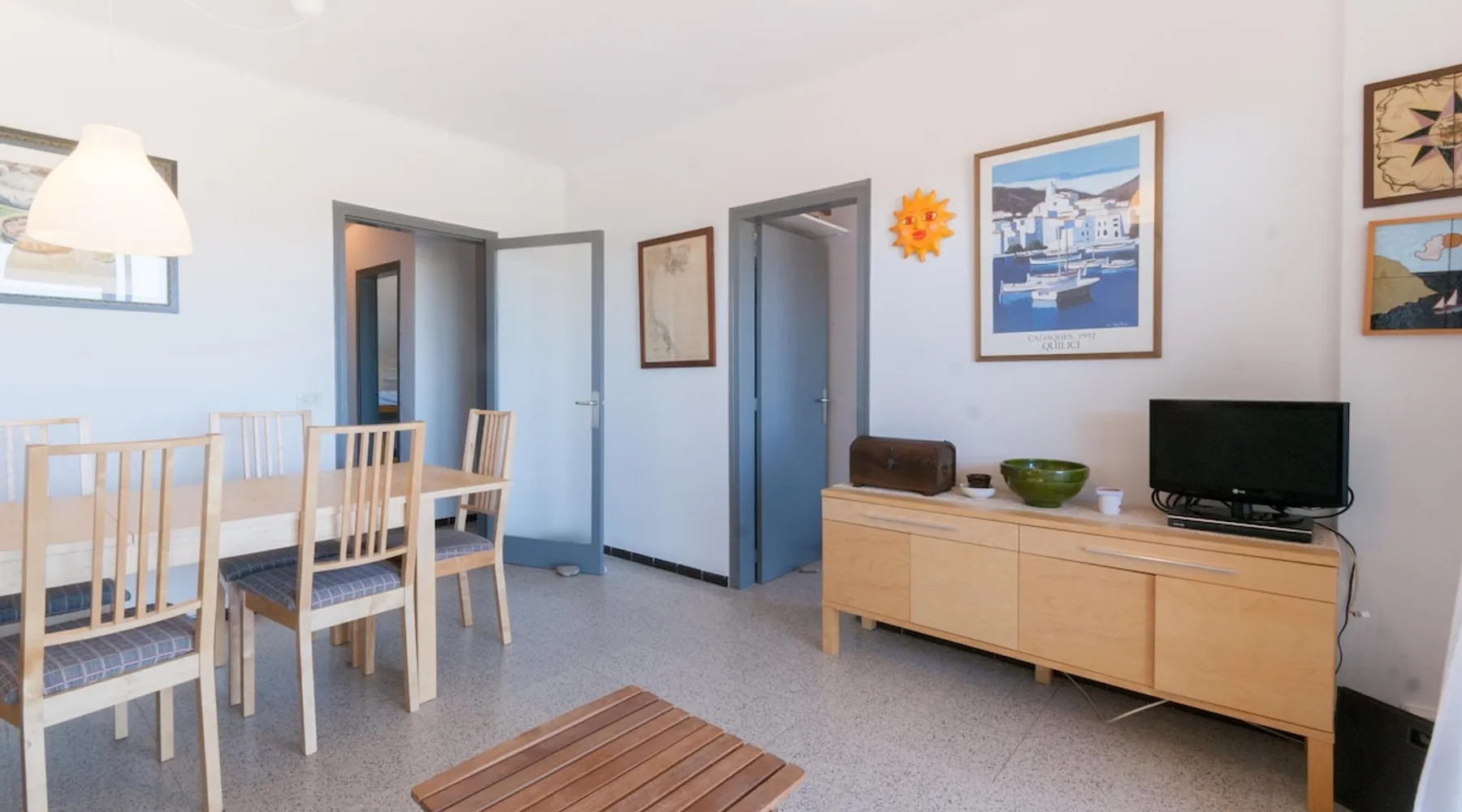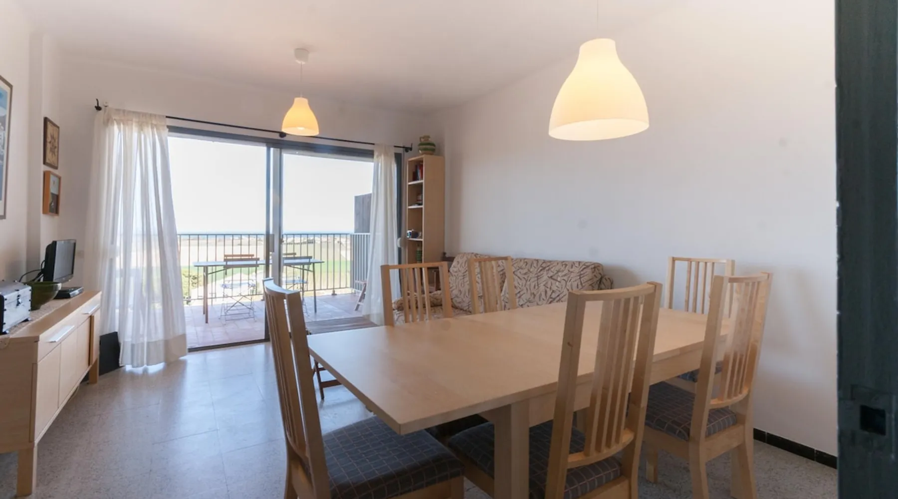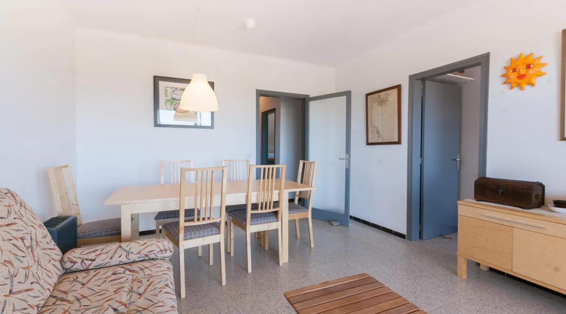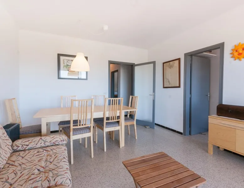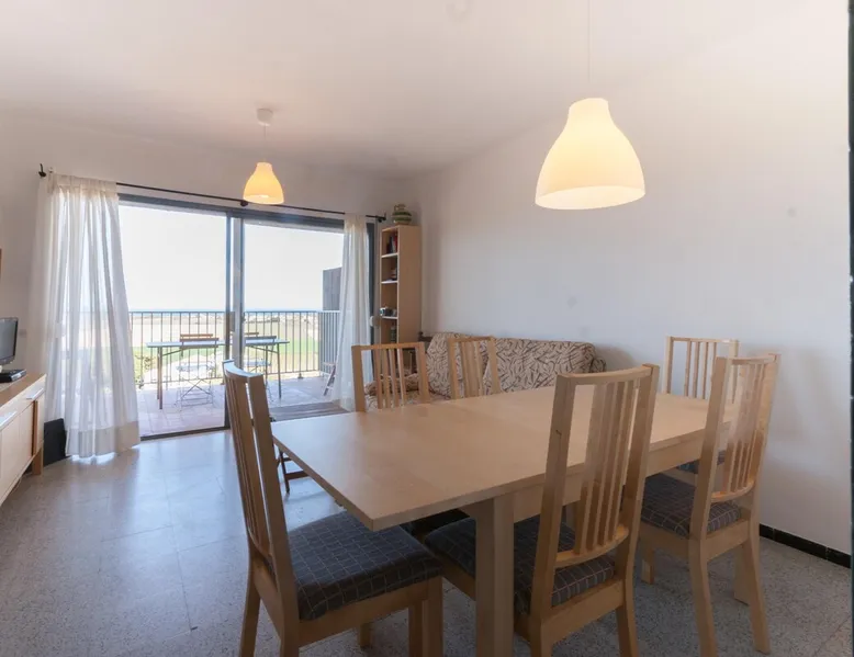 Holiday apartment for 5 people with great views. Living room, 2 bedrooms, beds: 1 x 1.60, bunk bed 3 x 90, bathroom with shower. Terrace of 10 m 2 with good views and outdoor furniture. Wifi and outdoor community. Located to 1 km of the center of the village, to prop of the Playa Amfora and of the River Fluvià, ideal to enjoy with the family of kayak, windsurfs, bicycle or outdoor walks. Groups under the age of 25 are not allowed. Do not add Other things to note Holiday apartment for 5 people with great views. Living room, 2 bedrooms, beds: 1 x 1.60, bunk bed 3 x 90, bathroom with shower. Terrace of 10 m 2 with good views and outdoor furniture. Wifi and outdoor community. Located to 1 km of the center of the village, to prop of the Playa Amfora and of the River Fluvià, ideal to enjoy with the family of kayak, windsurfs, bicycle or outdoor walks. Groups under the age of 25 are not allowed. Do not agree to mascots. Optional services (not included in the price) Baby bed: €30.00 Rent Child seat: €30.00 Linen and Towels / person: €20.00 Pet supplement: €30.00 Registration Details Catalonia - Regional registration number HUTG-023087