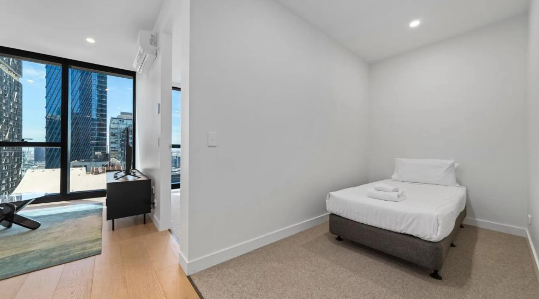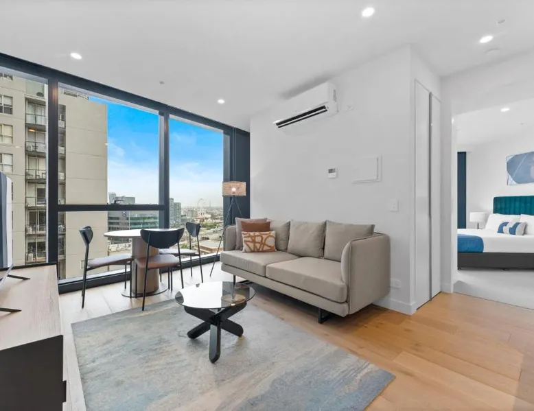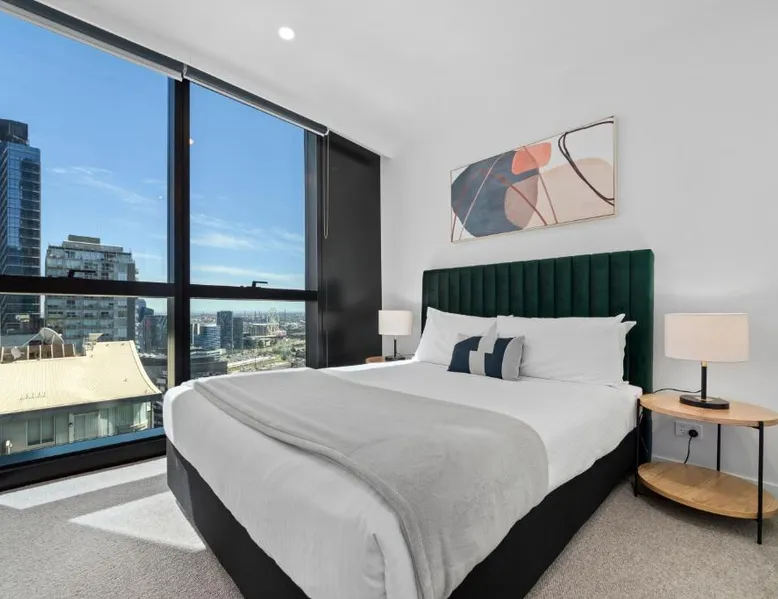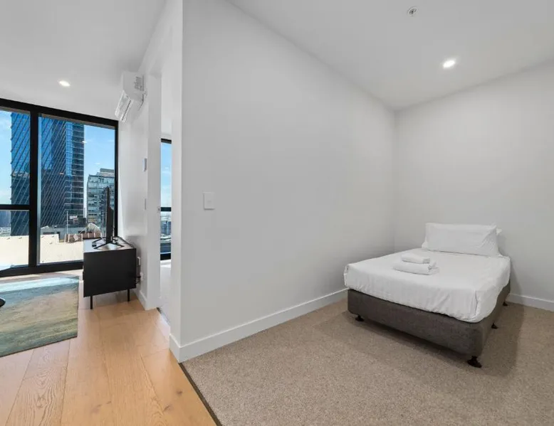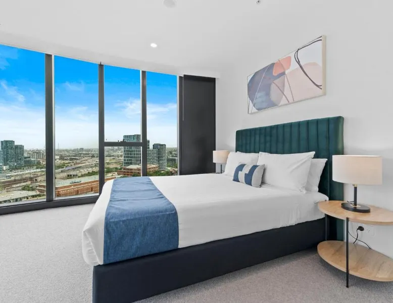 Comfortable Accommodations: Aspire Melbourne in Melbourne offers family rooms with air-conditioning, private bathrooms, and modern amenities including free WiFi, a fitness center, sauna, and indoor swimming pool. Convenient Facilities: Guests enjoy a elevator, concierge service, luggage storage, and free toiletries. Additional features include a washing machine, dishwasher, and balcony. Prime Location: Located 6.8 mi from Essendon Fields Airport, the hotel is a short walk from Southern Cross Station (13 minutes) and Melbourne City Conference Center (less than 0.6 mi). Nearby attractions include Crown Casino and St Paul's Cathedral. Guest Favorites: Visitors highly rate the swimming pool, spa, and convenient location. This air-conditioned apartment comes with 1 living room, 1 separate bedroom and 1 bathroom with a shower. The well-fitted kitchen has a stovetop, a refrigerator, a dishwasher and kitchenware. The apartment features carpeted floors, a seating area with a TV, a washing machine, a tea and coffee maker, as well as a dining area. The unit has 1 bed.