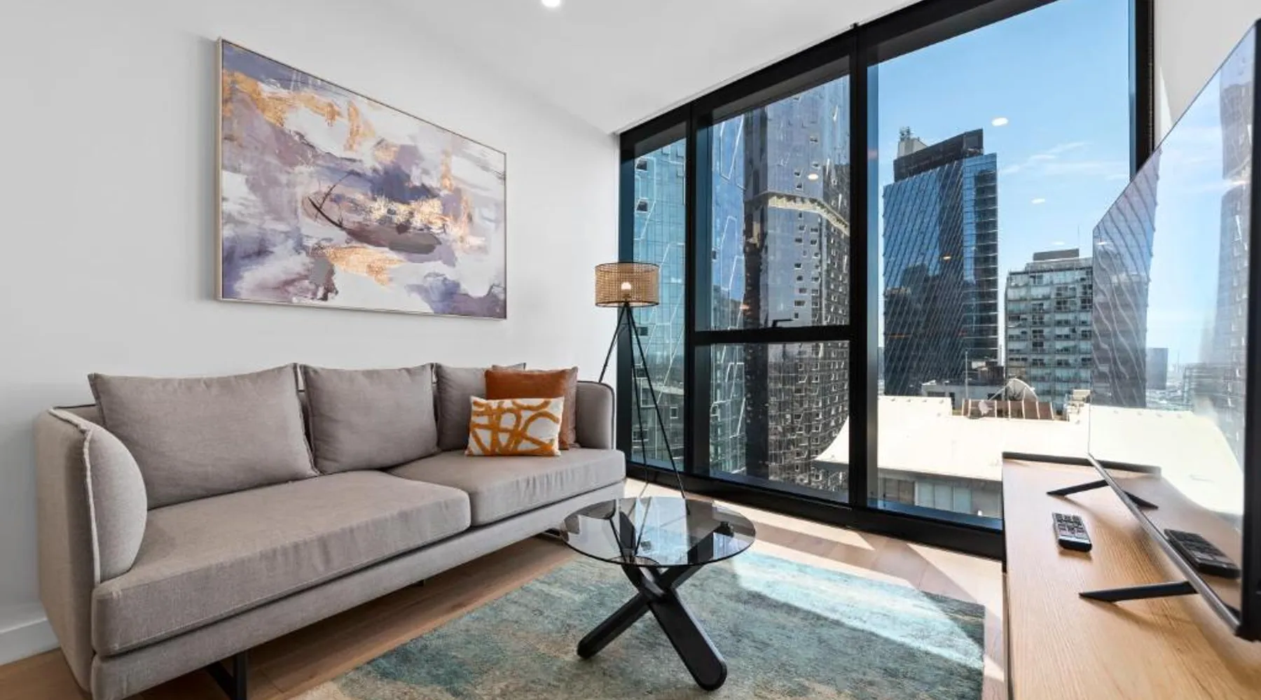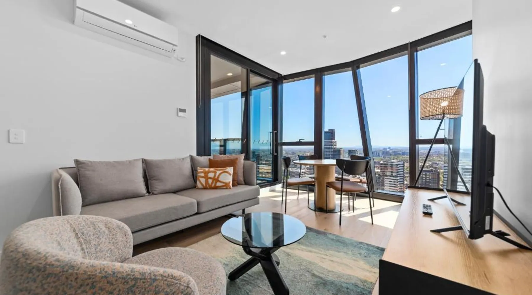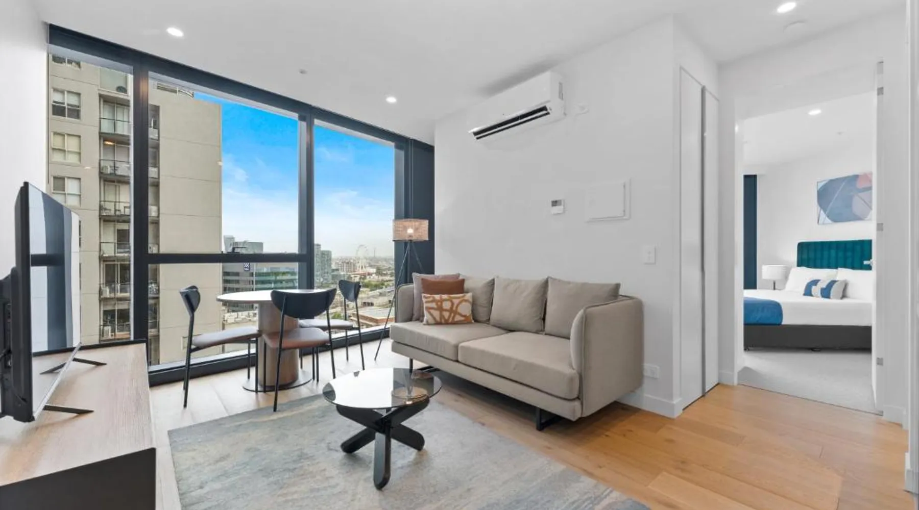 Comfortable Accommodations: Aspire Melbourne in Melbourne offers family rooms with air-conditioning, private bathrooms, and modern amenities including free WiFi, a fitness center, sauna, and indoor swimming pool. Convenient Facilities: Guests enjoy a elevator, concierge service, luggage storage, and free toiletries. Additional features include a washing machine, dishwasher, and balcony. Prime Location: Located 6.8 mi from Essendon Fields Airport, the hotel is a short walk from Southern Cross Station (13 minutes) and Melbourne City Conference Center (less than 0.6 mi). Nearby attractions include Crown Casino and St Paul's Cathedral. Guest Favorites: Visitors highly rate the swimming pool, spa, and convenient location. This air-conditioned apartment comes with 1 living room, 1 separate bedroom and 1 bathroom with a shower. The well-fitted kitchen has a stovetop, a refrigerator, a dishwasher and kitchenware. The apartment features carpeted floors, a seating area with a TV, a washing machine, a tea and coffee maker, as well as a dining area. The unit has 1 bed.