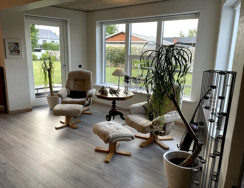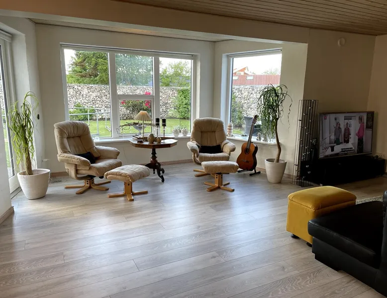 Beautiful large two-story house of 160 sqm with private entrance. 3 large bedrooms with double beds. Large enclosed garden with space to play ball. Large trampoline with safety net. Driveway with room for cars. Only 5 minutes to Discount supermarket and Brande city center where there are cafes and restaurants. Close to train/bus. There is free parking and internet fibernet 1000/1000 Mbit. Brande is centrally located, 15 minutes to Herning Exhibition Center, 35 minutes to Billund Airport and Legoland. 15 minutes to Givskud Zoo. The space We have tried to make the house as cozy and homely as possible, so our guests can enjoy themselves and have a nice relaxing stay. The beds have a nice comfort and all duvets pillows are allergy labeled. All bedrooms have blackout curtains. The house contains all the kitchen equipment you need. There is a refrigerator with freezer. There are nice relaxing chairs and a sofa in the living room with TV. There is a TV in the bedrooms. There is an outdoor barbecue area and a nice enclosed garden. Terrace with morning sun and Terrace with evening sun. There is everything for baby, weekend bed, high chair, changing table. Cleaning fee includes rental of bed linen and towels. However, you must remember to wipe off table tops for food leftovers. SMOKING IS PROHIBITED indoors. Guest access Givskud Zoo - Legoland - legoland.dk Baboon City in Herning - babooncity Søby lignite rentals Jyllands Park Zoo - Jutlandsparkzoo Fires swimming pool - the fires halls Warm water's pool and spa. Shopping in Brande and Herning 18 km. lang mountainbike cykelrute "Brande ruten" Put & Take fishing lakes Attractive golf courses -brandegolfklub.dk Herning messecenter Lalandia Billund Aqua Silkeborg Arnborg Bathing Lake Heart path to the runner Fire gable paintings Billund Airport 35 min. Other things to note We want you to have a great stay at the place