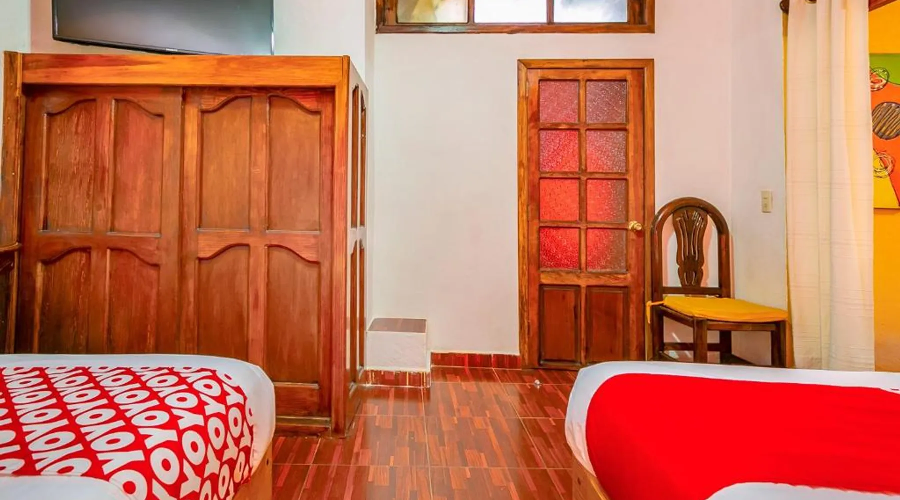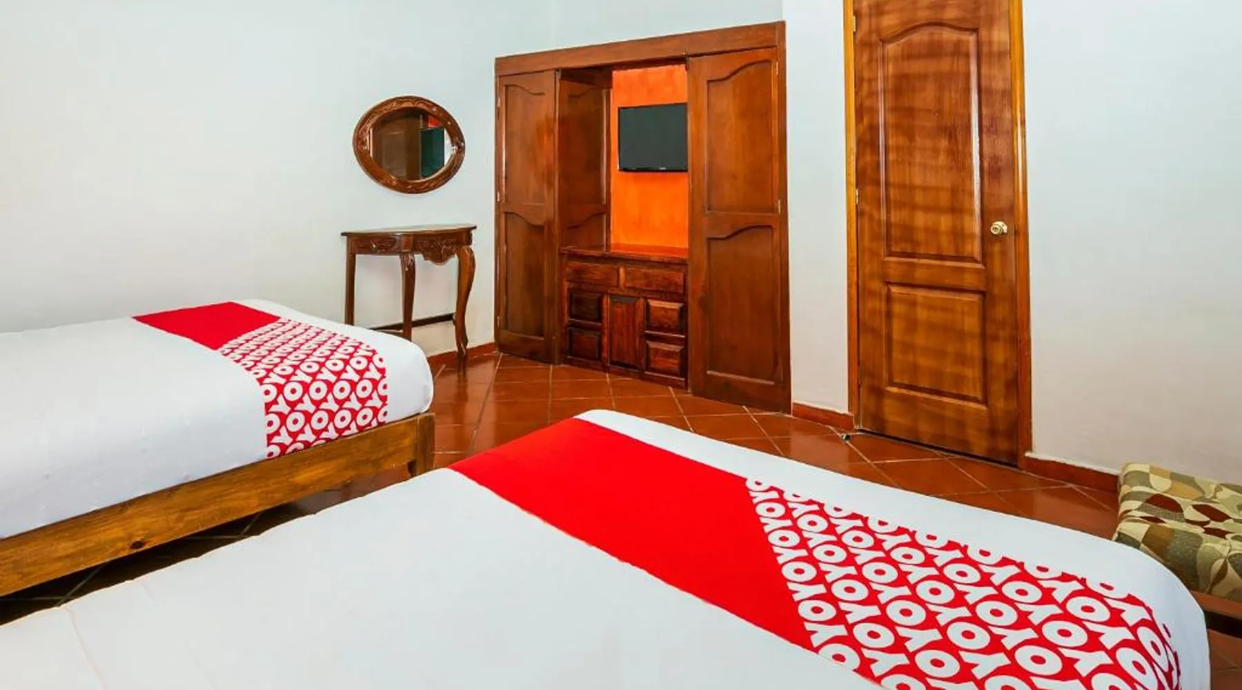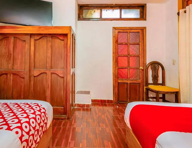 Elegant Accommodations: OYO Posada De Los Angeles in Pátzcuaro offers a 5-star hotel experience with a beautiful garden and free WiFi. Guests enjoy private bathrooms, work desks, and soundproofed rooms. Comfortable Amenities: Each room features a hairdryer, free toiletries, shower, carpeted and tiled floors, TV, and a seating area. Additional amenities include a private entrance and soundproofing, ensuring a relaxing stay. Convenient Location: Located 35 mi from Lic. y Gen. Ignacio López Rayón International Airport, the hotel is praised for its convenient location and the quietness of the surrounding area. Reception staff speak English and Spanish. The spacious twin room has a private bathroom, a private entrance, soundproof walls, as well as a seating area with a flat-screen TV. This twin room features a tiled floor, a carpeted floor and a TV. The unit has 2 beds.
