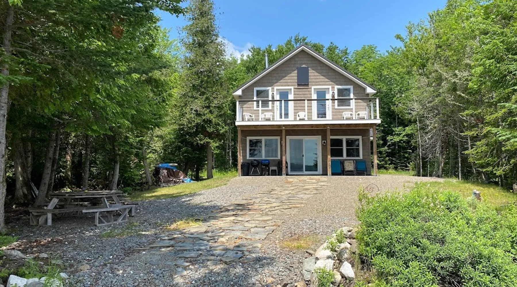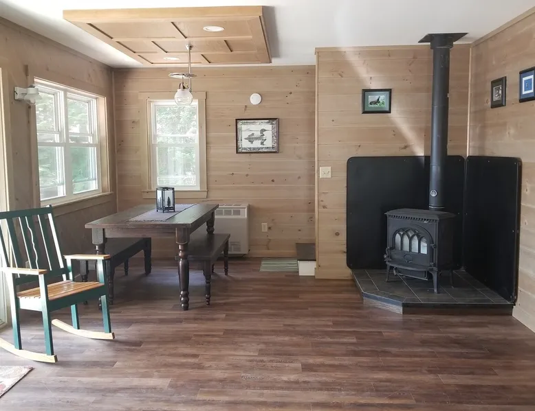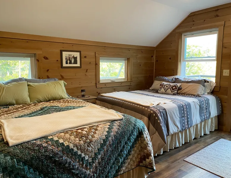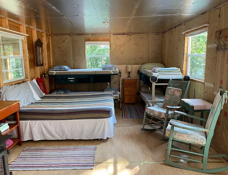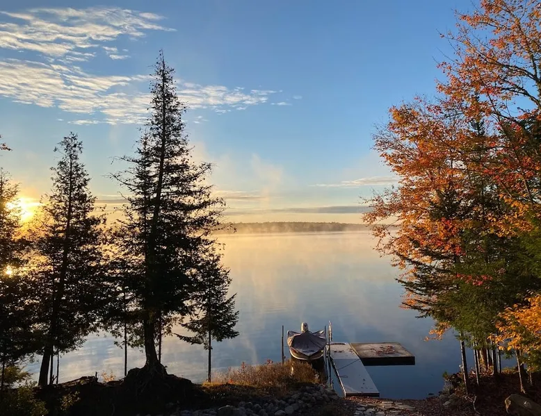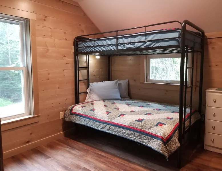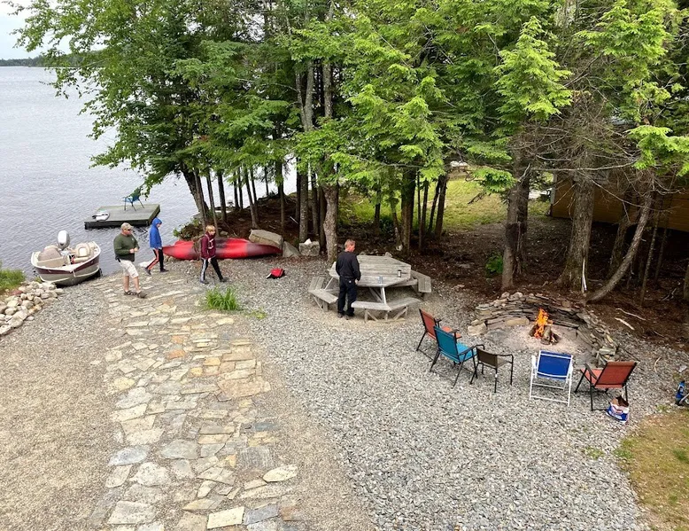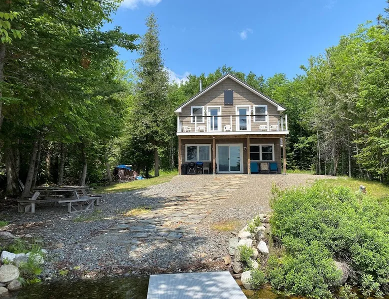 Beautiful off-grid lake house on Skitacook Lake, miles away from the nearest telephone pole or paved road. Enjoy time with family and friends around the campfire, fish and swim of the dock, hit the ATV trails, or relax on the balcony. Bring your canoes, kayaks or paddle boards to explore this unique lake with rocky shorelines and beautiful views. The lake house sleeps 9 and the guest cabin sleeps 8. Please inquire with the host for weekend availability and the guest cabin add-on for groups <10. The space Fully-furnished kitchen with propane appliances. Propane lights throughout the house or flip a switch for electric lights (Kohler generator). On-demand hot water, propane monitor, wood stove, recessed lighting, charcoal grill, large stone fire pit, picnic table, and outdoor seating. Unplug and unwind with a library of books, boardgames, and cribbage (Aroostook County favorite). Bring the whole family - friendly, well-behaved dogs welcome - and don't forget the kids' bikes. Children and off-leash dogs roam freely on this safe and private dead-end dirt road. Other things to note Plenty of parking to trailer your ATV, side-by-side, or boat. Canoes, kayaks and paddle boards can easily be launched and stored lakefront at the lake house and guest cabin. Mattawamkeag Lake, Pleasant Pond, and Va Jo Wa golf course are less than 25 minutes away in historic Island Falls. There is no WiFi (or TV) at the lake house and cell reception is limited. Feel free to spread out into the guest cabin yard and gather dead wood and fallen branches for firewood across the road (part of the lake house property). Skitacook Lake hosts resident loons, wild rabbits, turtles, and the occasional moose. There are only a couple dozen camps on this secluded lake, truly a hidden gem.