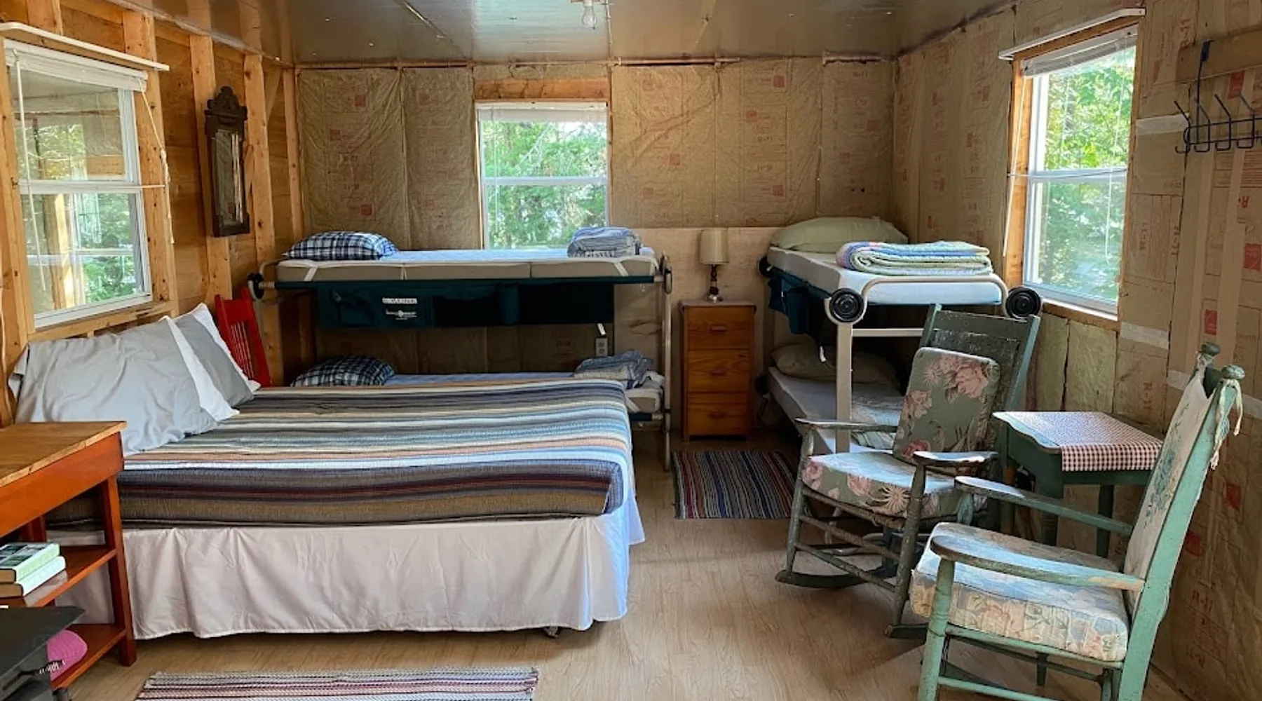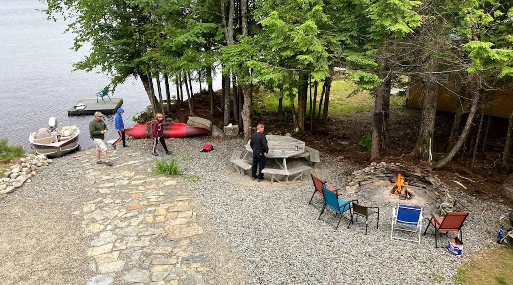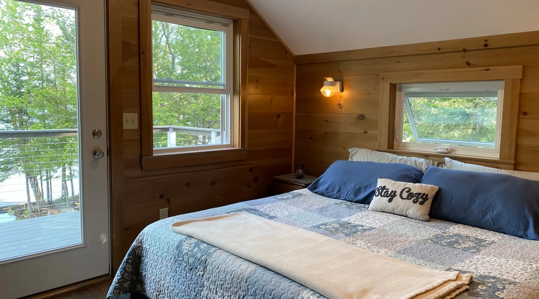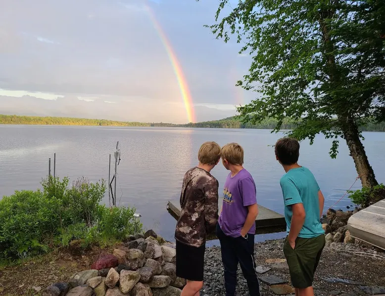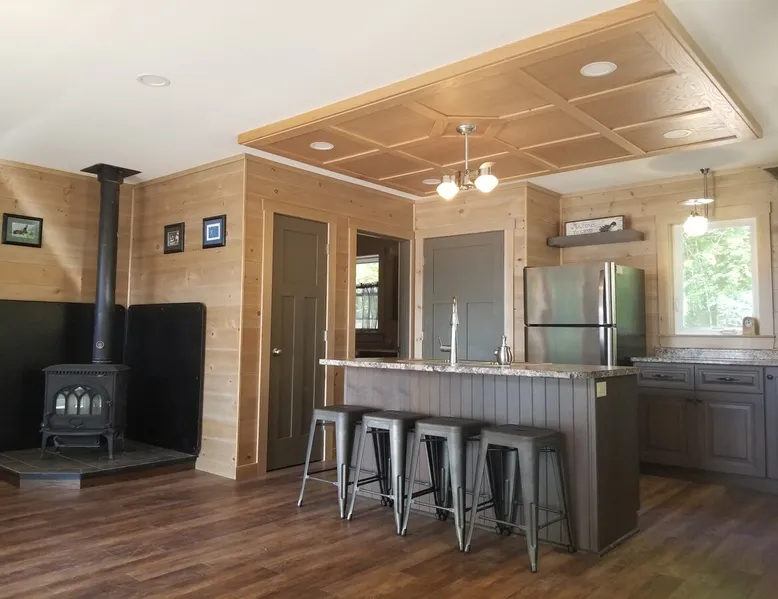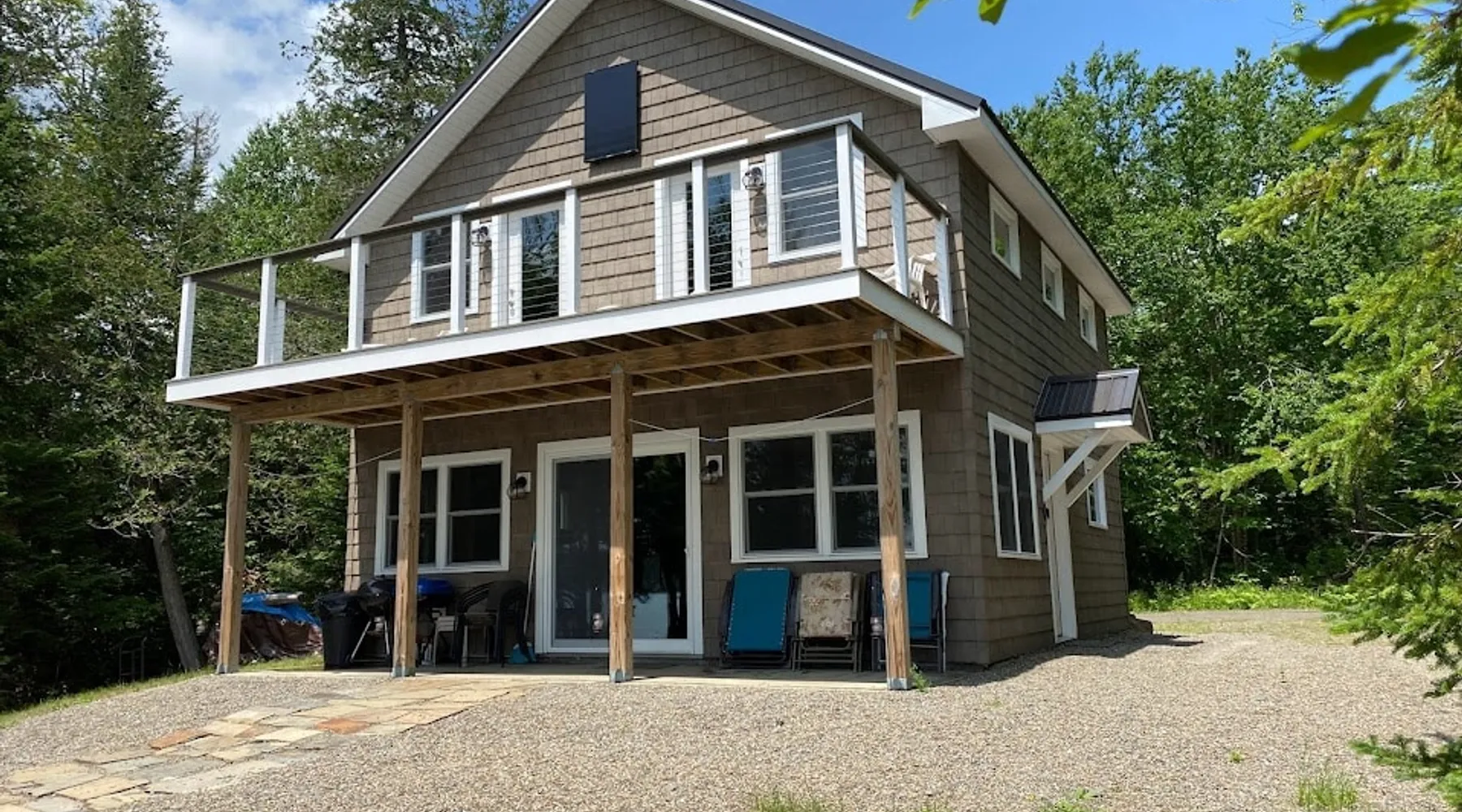 Beautiful off-grid lake house on Skitacook Lake, miles away from the nearest telephone pole or paved road. Enjoy time with family and friends around the campfire, fish and swim of the dock, hit the ATV trails, or relax on the balcony. Bring your canoes, kayaks or paddle boards to explore this unique lake with rocky shorelines and beautiful views. The lake house sleeps 9 and the guest cabin sleeps 8. Please inquire with the host for weekend availability and the guest cabin add-on for groups <10. The space Fully-furnished kitchen with propane appliances. Propane lights throughout the house or flip a switch for electric lights (Kohler generator). On-demand hot water, propane monitor, wood stove, recessed lighting, charcoal grill, large stone fire pit, picnic table, and outdoor seating. Unplug and unwind with a library of books, boardgames, and cribbage (Aroostook County favorite). Bring the whole family - friendly, well-behaved dogs welcome - and don't forget the kids' bikes. Children and off-leash dogs roam freely on this safe and private dead-end dirt road. Other things to note Plenty of parking to trailer your ATV, side-by-side, or boat. Canoes, kayaks and paddle boards can easily be launched and stored lakefront at the lake house and guest cabin. Mattawamkeag Lake, Pleasant Pond, and Va Jo Wa golf course are less than 25 minutes away in historic Island Falls. There is no WiFi (or TV) at the lake house and cell reception is limited. Feel free to spread out into the guest cabin yard and gather dead wood and fallen branches for firewood across the road (part of the lake house property). Skitacook Lake hosts resident loons, wild rabbits, turtles, and the occasional moose. There are only a couple dozen camps on this secluded lake, truly a hidden gem.