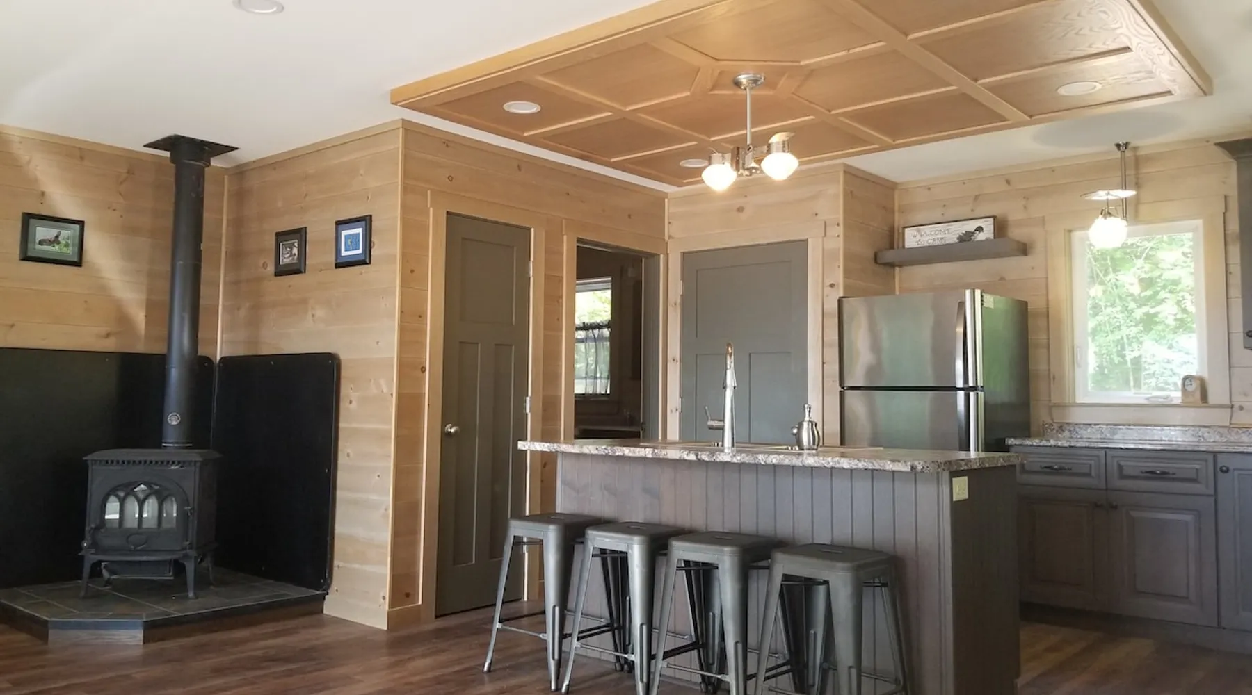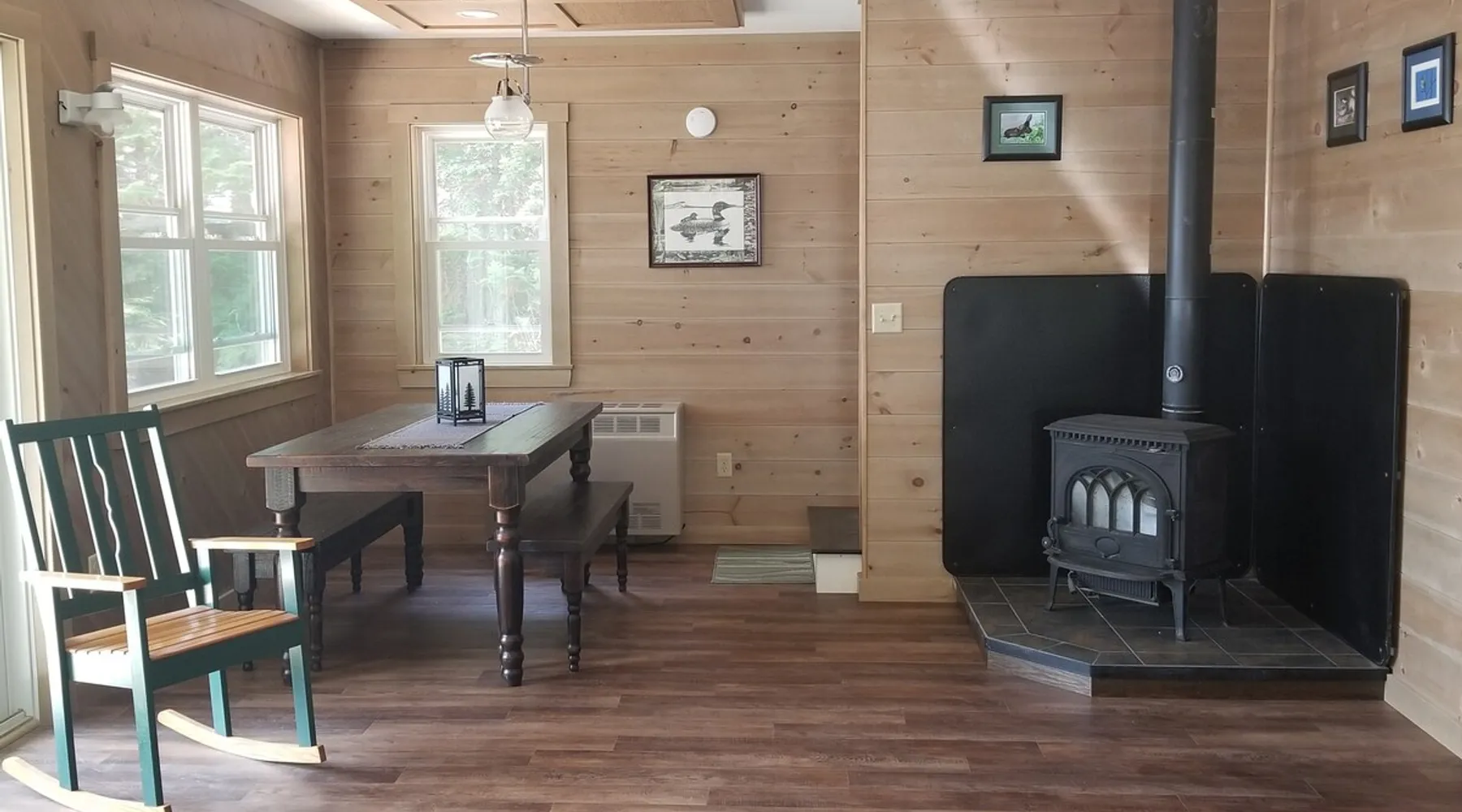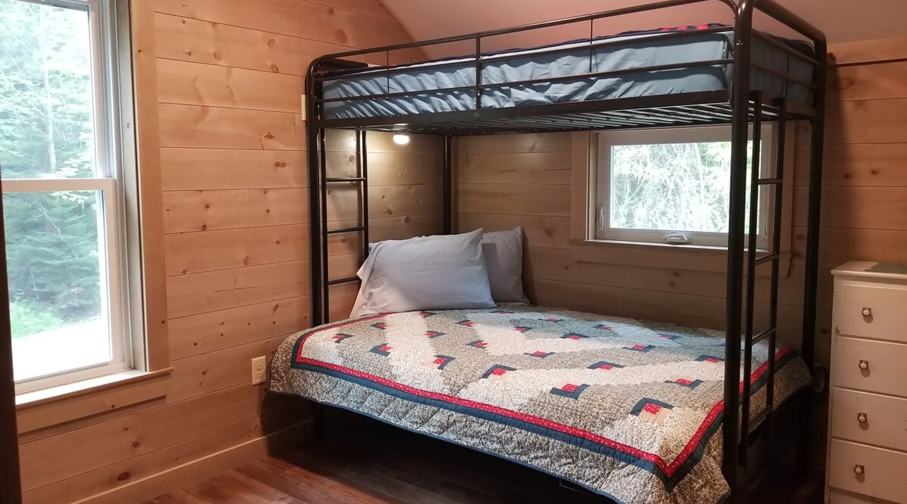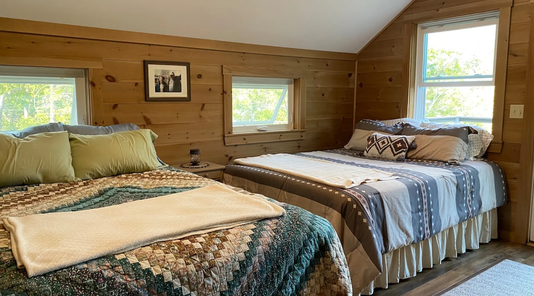 Beautiful off-grid lake house on Skitacook Lake, miles away from the nearest telephone pole or paved road. Enjoy time with family and friends around the campfire, fish and swim of the dock, hit the ATV trails, or relax on the balcony. Bring your canoes, kayaks or paddle boards to explore this unique lake with rocky shorelines and beautiful views. The lake house sleeps 9 and the guest cabin sleeps 8. Please inquire with the host for weekend availability and the guest cabin add-on for groups <10. The space Fully-furnished kitchen with propane appliances. Propane lights throughout the house or flip a switch for electric lights (Kohler generator). On-demand hot water, propane monitor, wood stove, recessed lighting, charcoal grill, large stone fire pit, picnic table, and outdoor seating. Unplug and unwind with a library of books, boardgames, and cribbage (Aroostook County favorite). Bring the whole family - friendly, well-behaved dogs welcome - and don't forget the kids' bikes. Children and off-leash dogs roam freely on this safe and private dead-end dirt road. Other things to note Plenty of parking to trailer your ATV, side-by-side, or boat. Canoes, kayaks and paddle boards can easily be launched and stored lakefront at the lake house and guest cabin. Mattawamkeag Lake, Pleasant Pond, and Va Jo Wa golf course are less than 25 minutes away in historic Island Falls. There is no WiFi (or TV) at the lake house and cell reception is limited. Feel free to spread out into the guest cabin yard and gather dead wood and fallen branches for firewood across the road (part of the lake house property). Skitacook Lake hosts resident loons, wild rabbits, turtles, and the occasional moose. There are only a couple dozen camps on this secluded lake, truly a hidden gem.