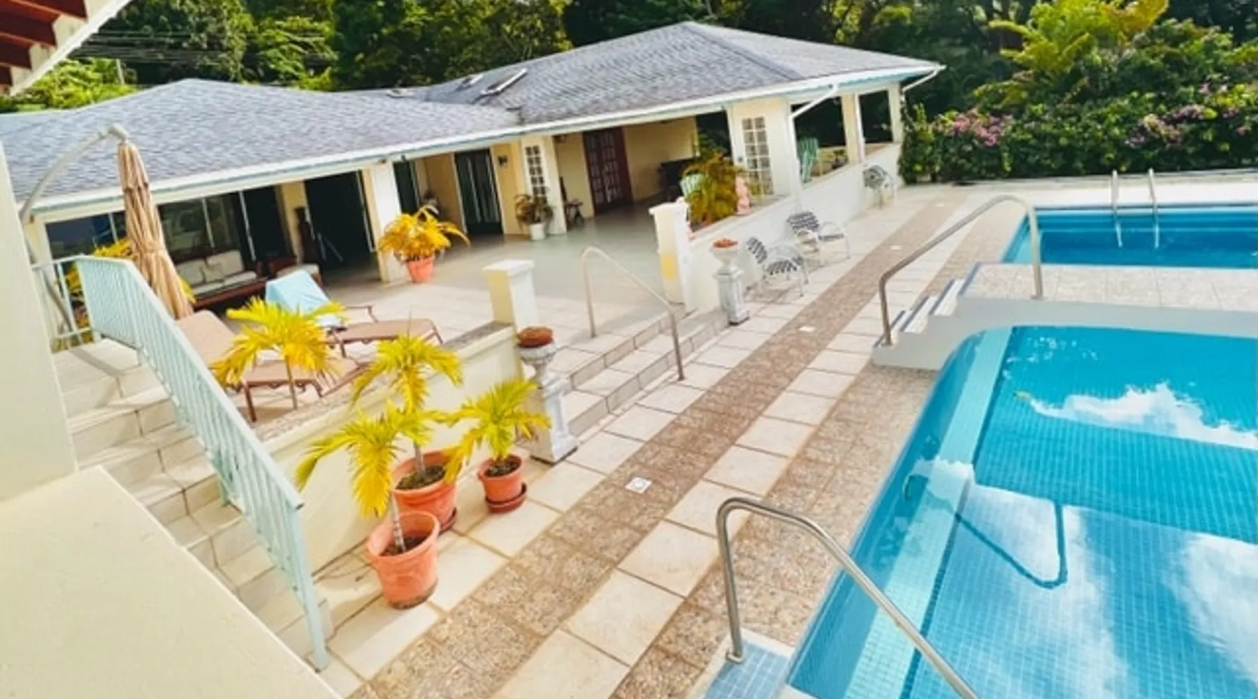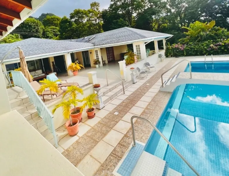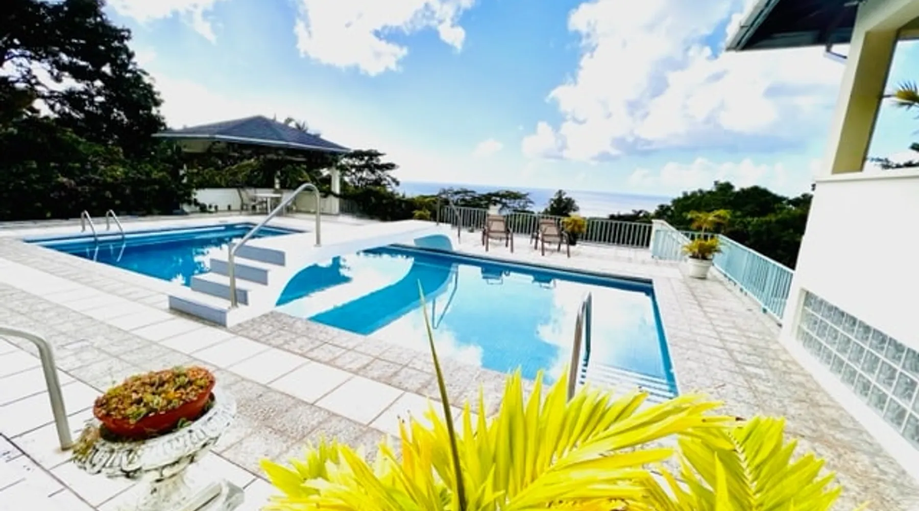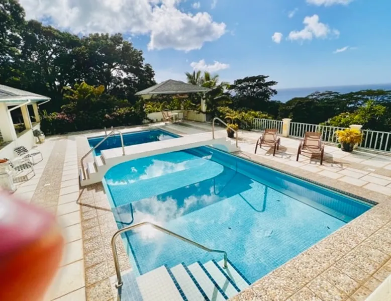 11,000 sq ft Villa nestled on 1.5 lush acres with the Caribbean Sea in your back yard and Mountains of Montserrat in your front yard . Relax in the private pool or walk in the gardens while enjoying the fruits from the many trees on the property when in season. Conveniently located to several restaurants and beaches .10 min hike or 4 min drive to Woodlands beach . Dine in the indoor or outdoor dining area .Watch the sunset from several different patios. This is how the Caribbean used to be.