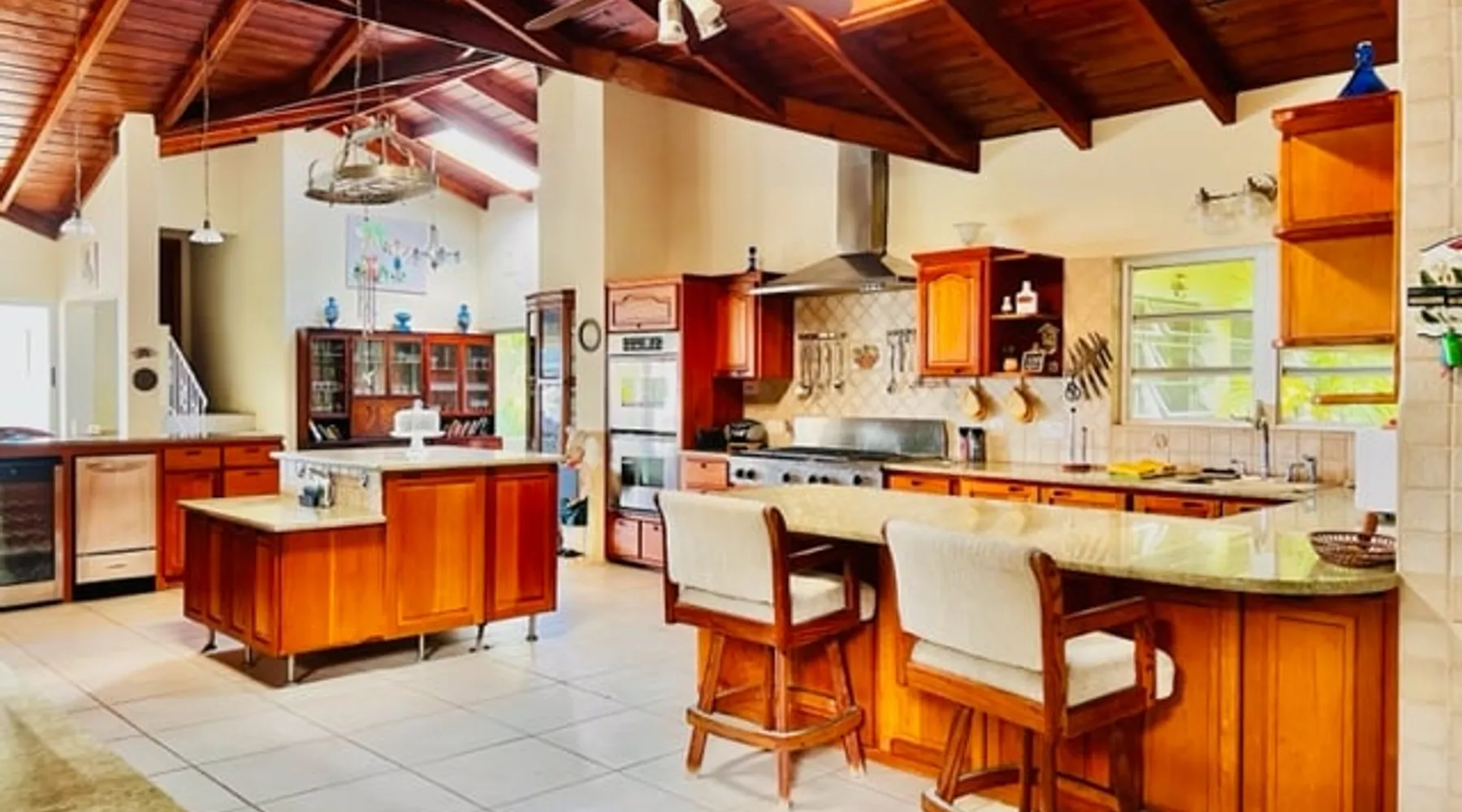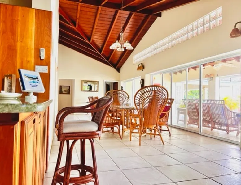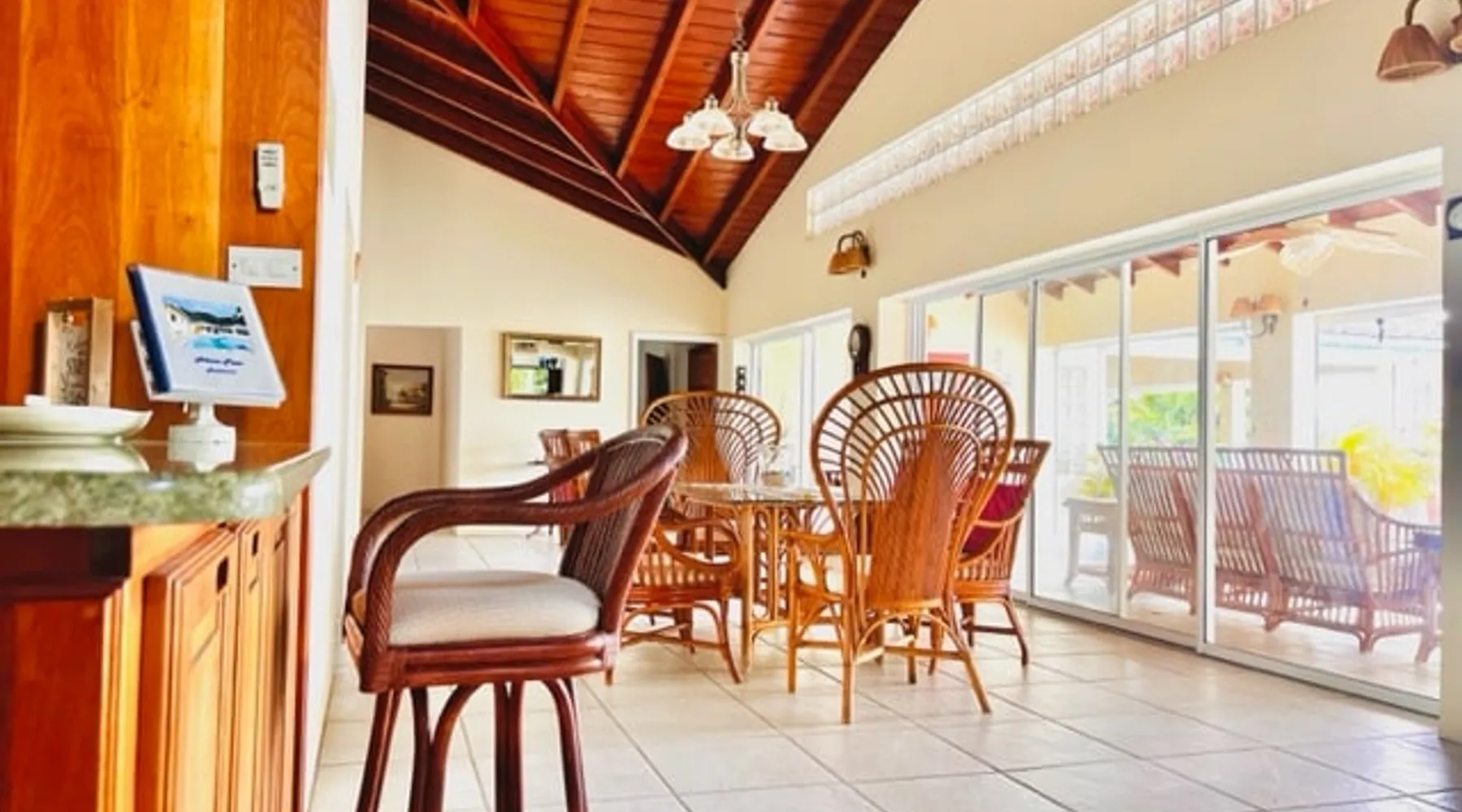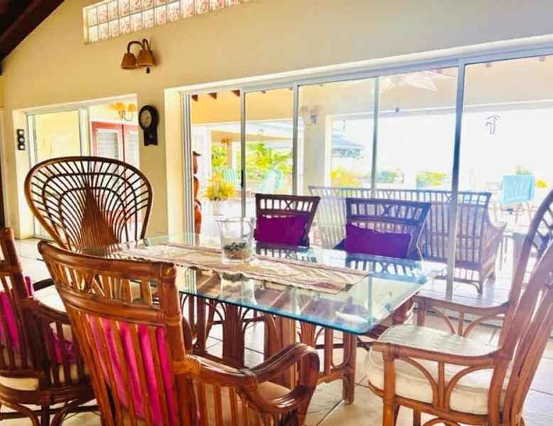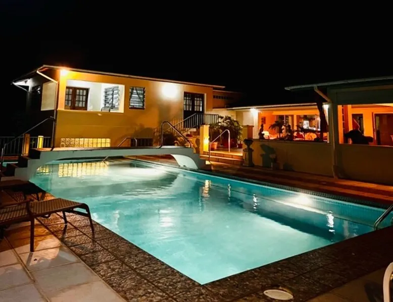 11,000 sq ft Villa nestled on 1.5 lush acres with the Caribbean Sea in your back yard and Mountains of Montserrat in your front yard . Relax in the private pool or walk in the gardens while enjoying the fruits from the many trees on the property when in season. Conveniently located to several restaurants and beaches .10 min hike or 4 min drive to Woodlands beach . Dine in the indoor or outdoor dining area .Watch the sunset from several different patios. This is how the Caribbean used to be.