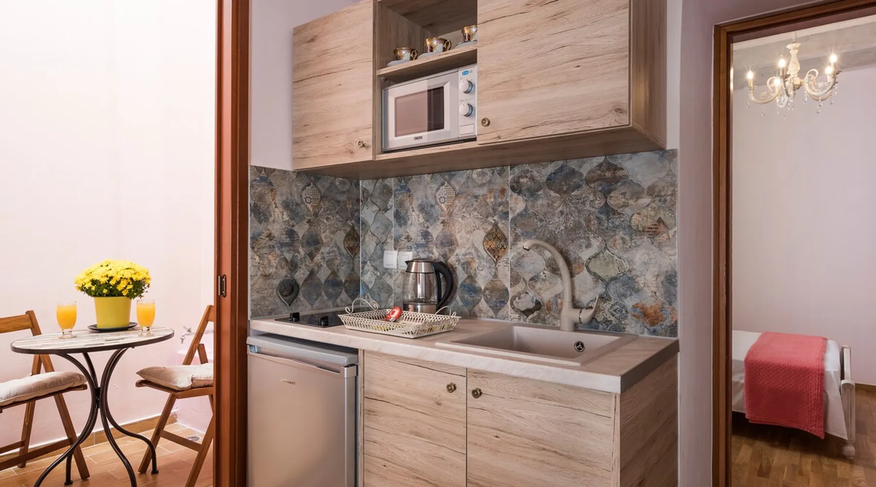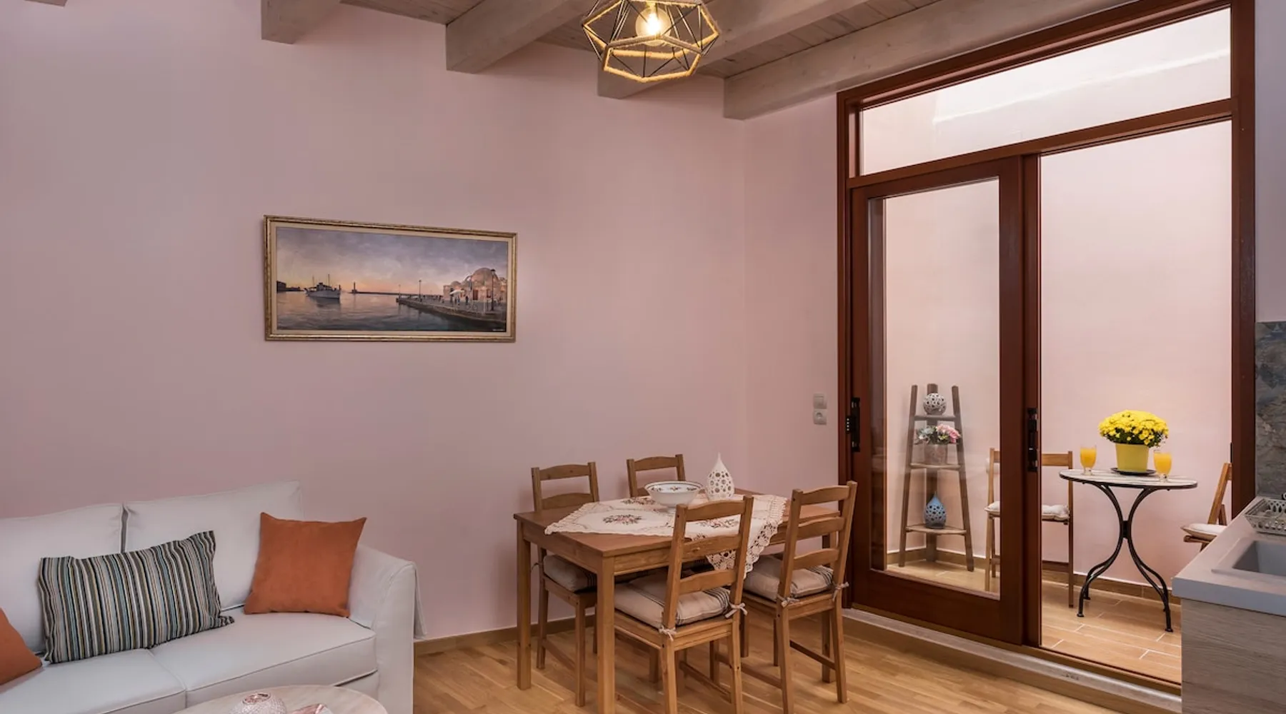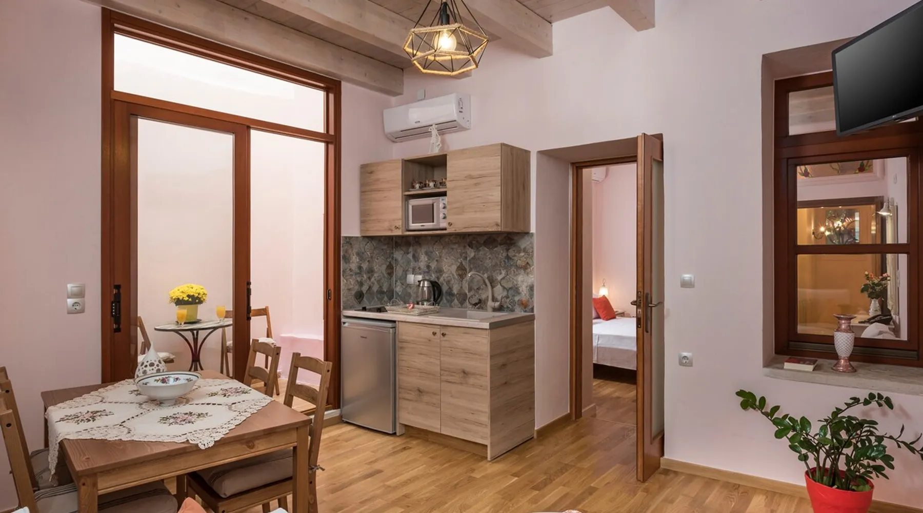 A home away from home at the heart of the old town. Located in a quiet pedestrian alley. This suite is elegantly furnished and it features a separate sitting room area, a fully equipped kitchen with a microwave oven and stove top, a stylish bathroom with his and hers sinks and rain shower, and a patio. There is a king size bed in the bedroom. The sitting area features a sofa that turns into a bed. Underneath that sofa there is another single bed that can be pulled, lifted and used if needed. The space Palazzo di Irene is a group of stylish apartments and studios that balance harmoniously the Venetian and the Neoclassical finesse. Palazzo di Irene is a historic two storey building that has been completely renovated with elegance and exquisite taste, offering modern amenities in a traditional Cretan setting that exudes an air of renaissance. Palazzo di Irene is situated at the most charming pedestrian alley at the heart of the old town of Chania, close to the city centre. Although it is only a stone throw away from the old harbour, it is within tranquil surroundings. Super comfortable beds, stylish bathrooms with sauna, fully equipped kitchenettes, are only some of the comforts of Palazzo di Irene Apartments. Our attention to detail aims to indulge our guests in a luxurious, comfortable and unforgettable stay in Crete. Once you are here, you will not want to leave! Guest access Guests can access all areas of this Apartment-Suite. Registration Details 1075806