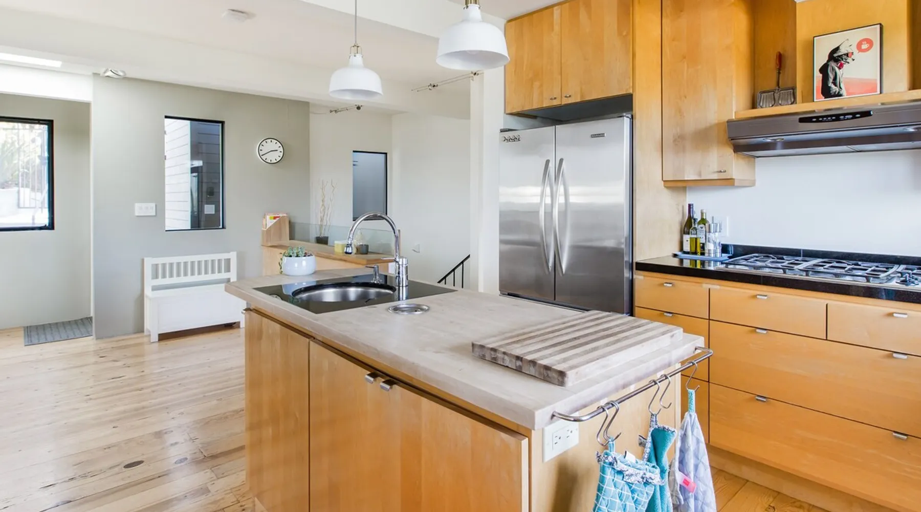 The stylish house is in a quiet area, tucked away on a private dead-end street. Only minutes away are a Wholefoods, a recommended sushi place, a pizzeria, and other restaurants. Stroll to the bus stop, and hike in almost any direction from here.