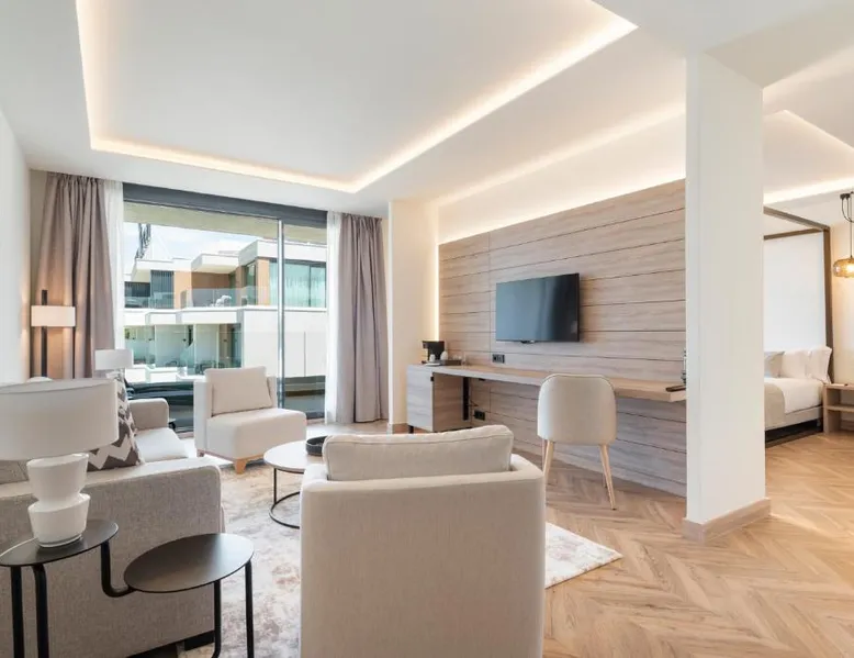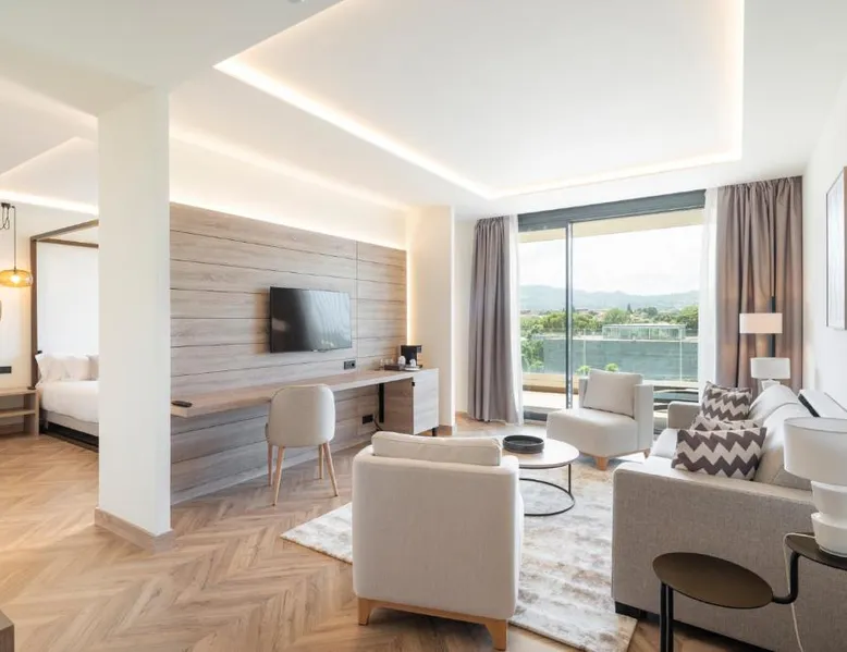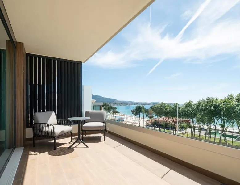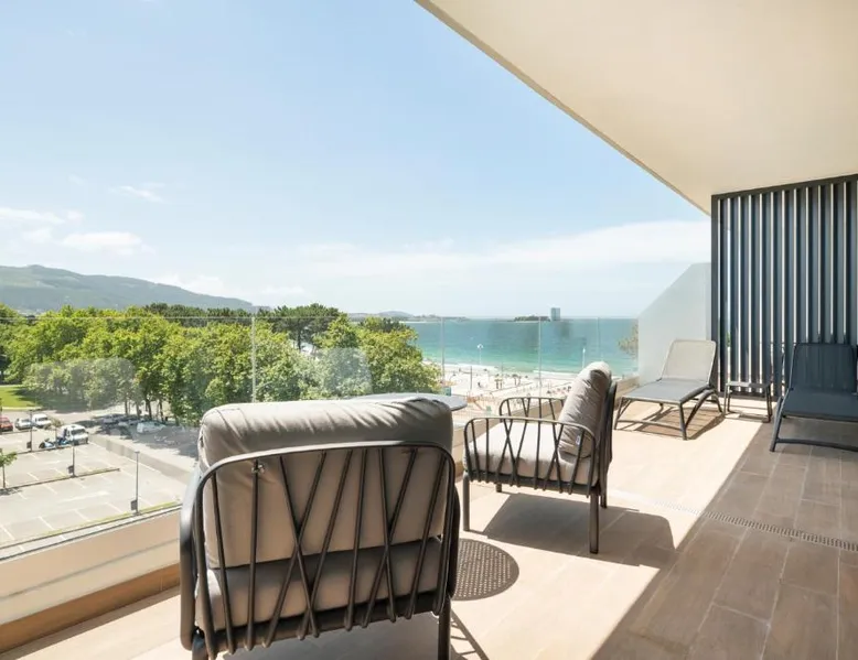 Beachfront Location: Attica21 Vigo 4 Superior in Vigo offers direct beachfront access, a seasonal outdoor swimming pool, and stunning sea views. Samil Beach is a five-minute walk away, while Vigo Airport lies 11 mi from the property. Comfortable Accommodations: Rooms feature air-conditioning, private bathrooms with free toiletries, and modern amenities such as flat-screen TVs and work desks. Additional comforts include bathrobes, soundproofing, and parquet floors. Leisure Facilities: Guests can enjoy a fitness center, terrace, and garden. The hotel provides a restaurant, bar, and outdoor seating area, along with beauty services and a 24-hour front desk. Nearby Attractions: Attractions include Galicia Sea Museum (1.5 mi), Castrelos Park (2.9 mi), and Vigo City Hall (3.7 mi). Surfing opportunities are available in the surrounding area. This double room features air conditioning, bathrobe, sofa and pool view.