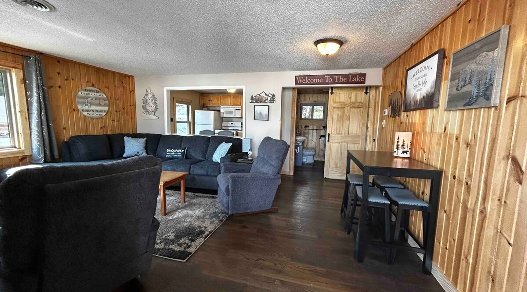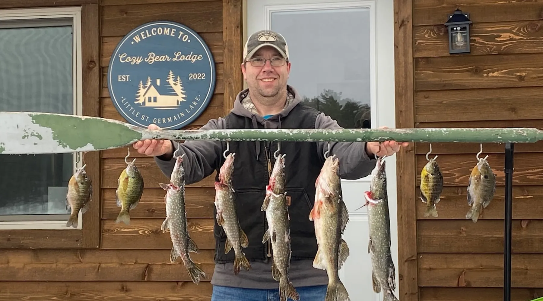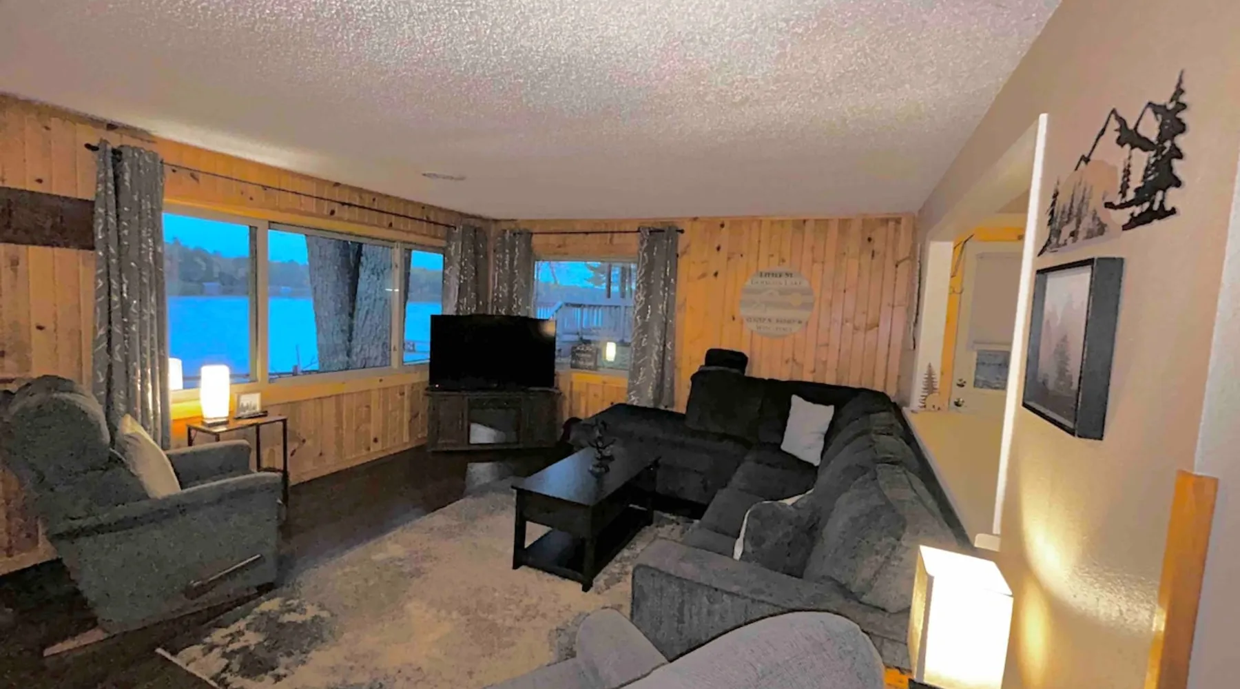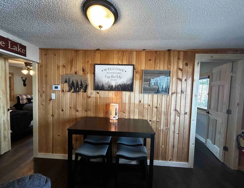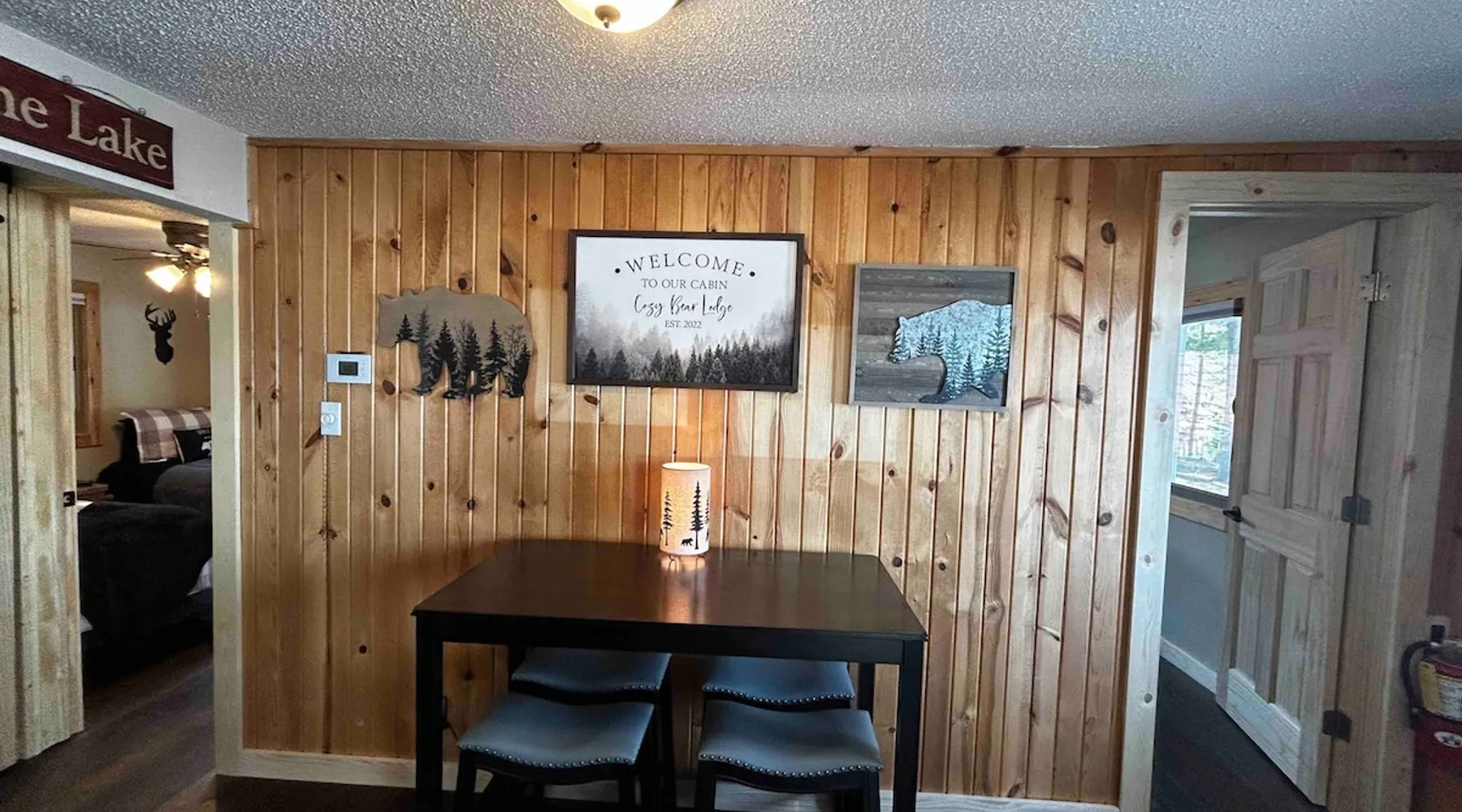 Relax with the whole family at this peaceful getaway. Directly on the lake and UTV/snowmobile trails! Boat, snowmobile/UTV right from this 2 bed (Sleeps 4), 1 bath cabin on the full recreational Little St. Germain Lake. Formerly Black Bear Lodge. Steps away from the beach and your own dock space. Conveniently included in your stay: basic kitchenware, bed & bath linens, free wireless internet, 2 kayaks with life vests, boat ramp. Located close to many restaurants, grocery store and shopping The space Cozy Bear Lodge is a lakefront cabin with two bedrooms, one bathroom, full kitchen and a living room with a pull out couch and electric fireplace. Guest access Guests have access to the entire cabin and can enjoy the beautiful views from their patio just steps away from the beach. Kayaks and stand up paddle boards are available for you and your family. The snowmobile trails are a short distance from the cabin and excellent fishing can be done from your private dock or in a boat while exploring the 972 acre lake. Other things to note Need more space for a second family? Check out The Sandy Bear Chalet! New in 2024 we have a pontoon available for rent exclusively to guests at the Sandy Bear Chalet and Cozy Bear Lodge. Please contact us for additional information.