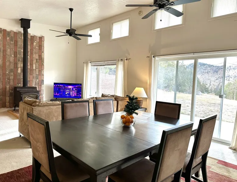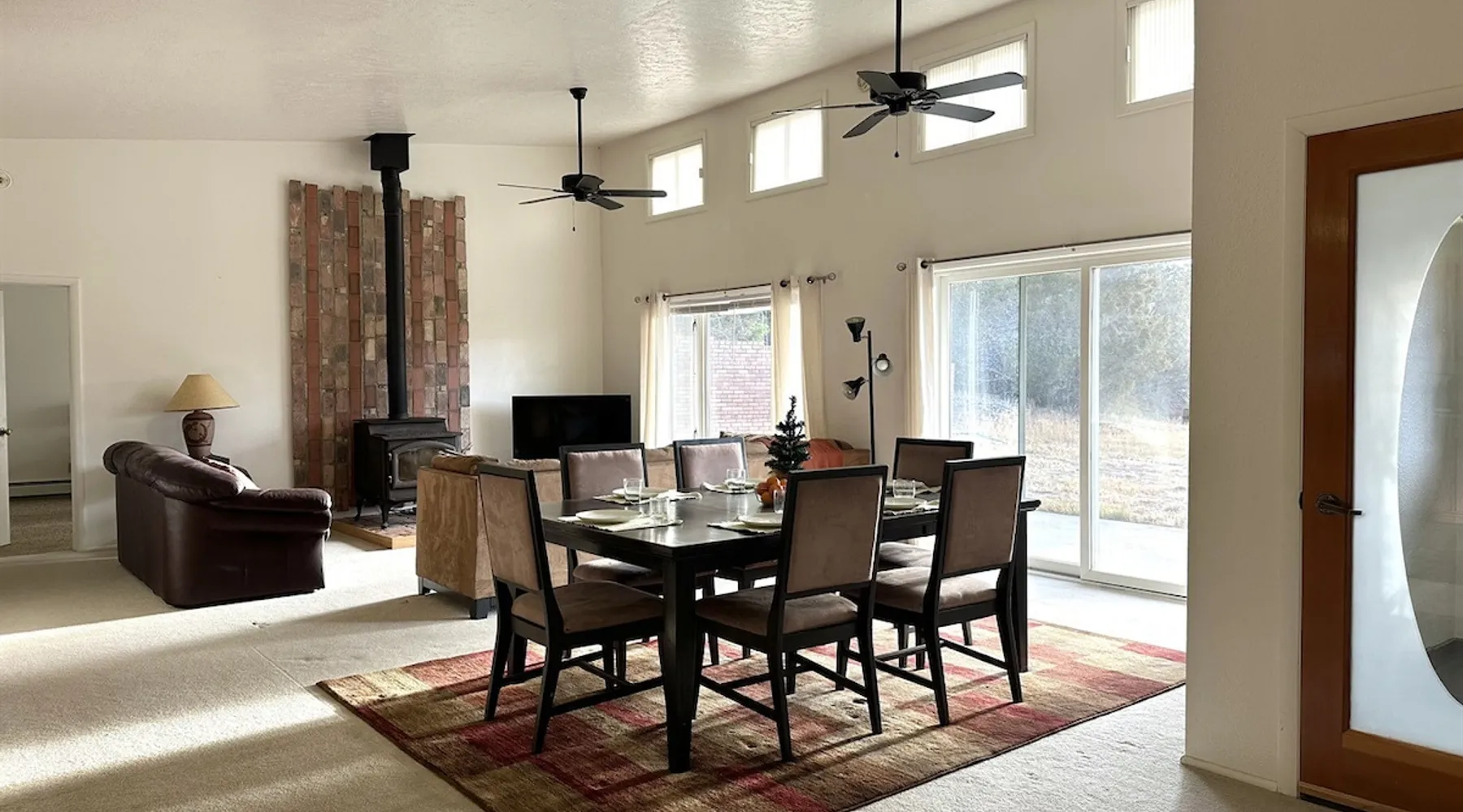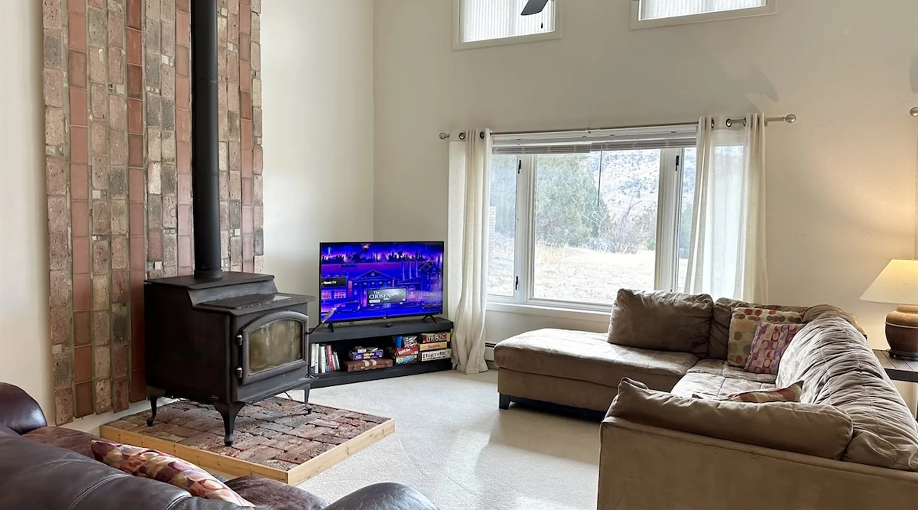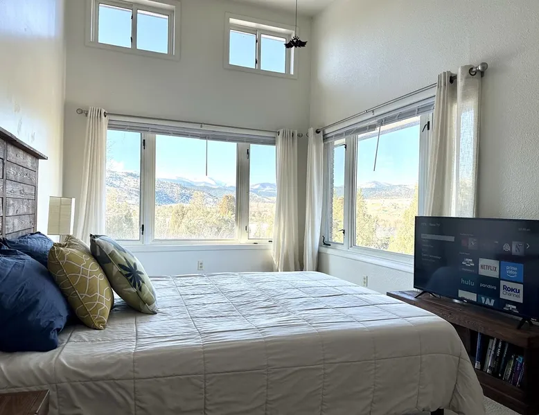 10 minutes from I-90 find a mountain retreat with a blend of contemporary and rustic furniture. Get-away for hunting, fishing, day trips to Lewis & Clark caverns, Butte and Bozeman areas. Mountain views, wildlife sightings, horse corrals/arena. Cross country skiing, hiking. Cook in large, open, fully equipped kitchen. Read, play games. Take time for long, wonderful conversations in spacious living room or naps in large bedrooms. 1-3 couples, families w/ kids. The space Overlook the Highland Mountains as you gather in the big room for connection over a home-cooked meal, board game, or movie night. The house has big picture windows facing West for dramatic views of nature and Montana's wild beauty. This is a must-stay with both inside and outside beauty. Handmade, rustic wood accent pieces blend with attractive comfortable furniture and classic contemporary and folk art. Warm in the winter, cool summer nights. Access to local, hidden hot springs and Thompson Park for hiking, mountain biking, and horseback riding. There are also close-by horse trail rides and hunting expedition trips. Something for everyone and an inviting space for all. KITCHEN The large and spacious kitchen overlooks the great room containing the open-layout dining space and living rooms. The fully stocked kitchen has everything from pots and pans and utensils to spices and coffee and tea. One of our favorite features of the kitchen is two sinks as well as two stove tops (6 burners total), making it easy to cook and enjoy family meals together. BEDROOMS There are 3 traditional bedrooms in our home, each with West-facing windows if you care to wake up looking at the mountains! Or close the curtains for a darker night and morning's sleep. Plenty of pillows and extra blankets as well as portable fans (AND overhead fans) for those who like to sleep with the air moving overhead. Two queen bedrooms have small TVS for those who like to go to sleep watching shows or listening to the sound of voices lulling them to sleep. The master bedroom does not have a TV, but instead has a desk. The master bedoom also has an ensuite bathroom with both shower and deep and long soaking bath tub. The two queen bedrooms share a bathroom that has a shower tub combination. LAUNDRY We have a washer dryer on-site and provide laundry detergent for those who want to be able to do laundry during their stay. Guest access You'll have the entire home to yourself. The home sits on a 100 acre ranch and your private home is at the end of a long driveway. There are two other vacation rentals towards the front of the property. Inquire if you have a large group and need additional accomodations. Other things to note PETS & PET POLICY We are happy to host pets disclosed in advance. We charge $50 per pet per stay. HORSES WITH LONGER STAYS We allow horses as well! $150/mo per horse. You need to bring your own hay. We have a creek for water.