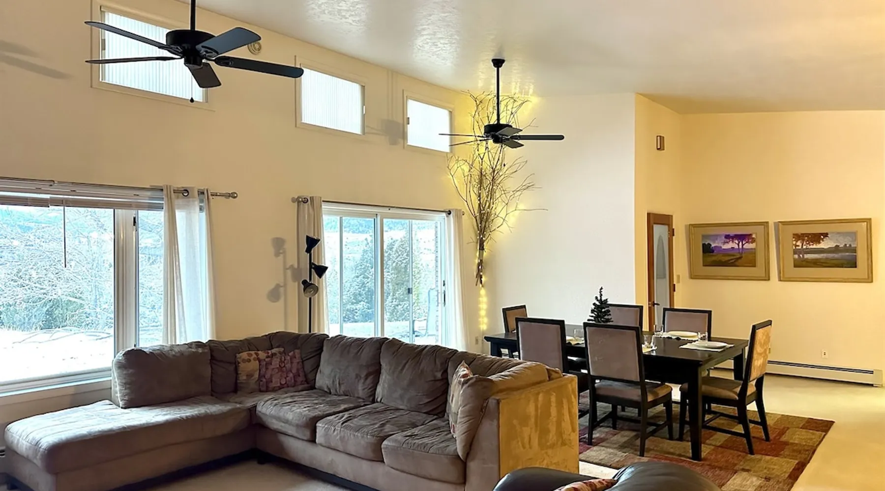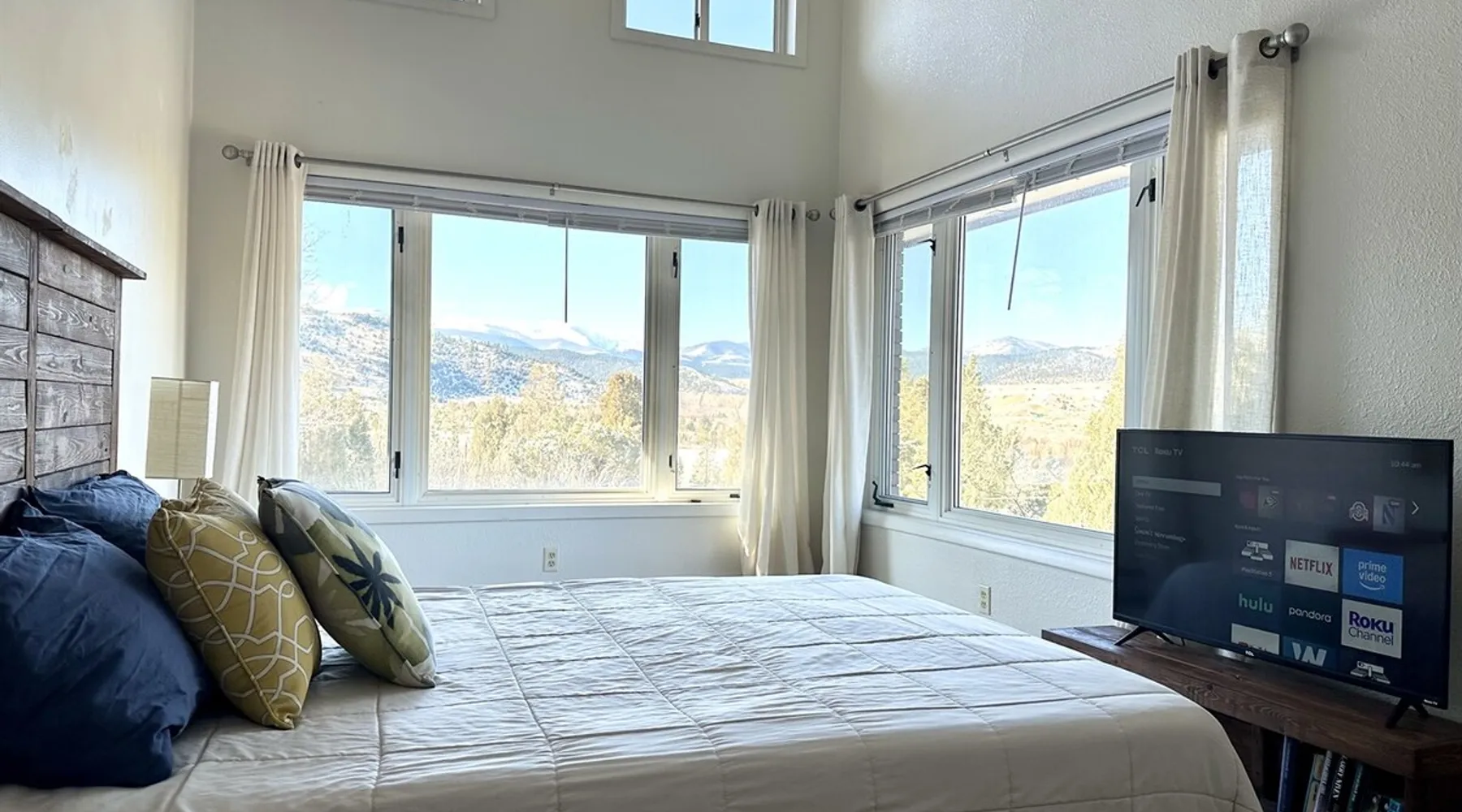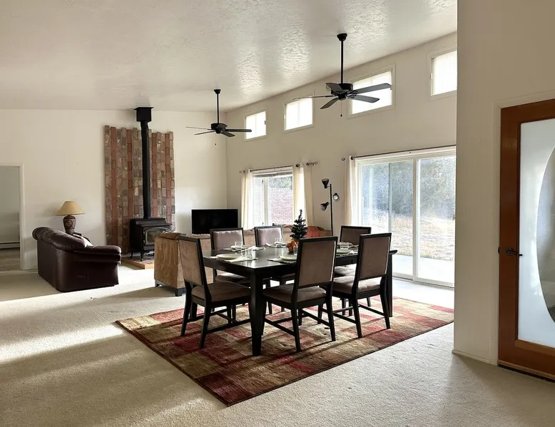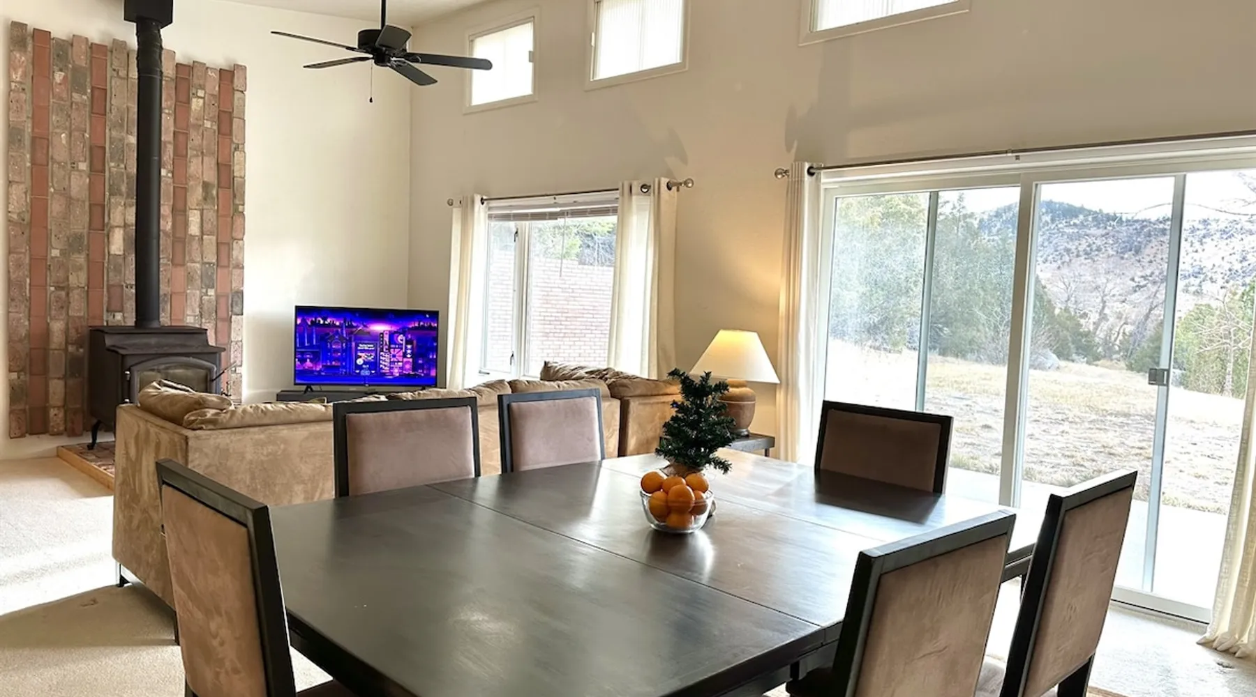 10 minutes from I-90 find a mountain retreat with a blend of contemporary and rustic furniture. Get-away for hunting, fishing, day trips to Lewis & Clark caverns, Butte and Bozeman areas. Mountain views, wildlife sightings, horse corrals/arena. Cross country skiing, hiking. Cook in large, open, fully equipped kitchen. Read, play games. Take time for long, wonderful conversations in spacious living room or naps in large bedrooms. 1-3 couples, families w/ kids. The space Overlook the Highland Mountains as you gather in the big room for connection over a home-cooked meal, board game, or movie night. The house has big picture windows facing West for dramatic views of nature and Montana's wild beauty. This is a must-stay with both inside and outside beauty. Handmade, rustic wood accent pieces blend with attractive comfortable furniture and classic contemporary and folk art. Warm in the winter, cool summer nights. Access to local, hidden hot springs and Thompson Park for hiking, mountain biking, and horseback riding. There are also close-by horse trail rides and hunting expedition trips. Something for everyone and an inviting space for all. KITCHEN The large and spacious kitchen overlooks the great room containing the open-layout dining space and living rooms. The fully stocked kitchen has everything from pots and pans and utensils to spices and coffee and tea. One of our favorite features of the kitchen is two sinks as well as two stove tops (6 burners total), making it easy to cook and enjoy family meals together. BEDROOMS There are 3 traditional bedrooms in our home, each with West-facing windows if you care to wake up looking at the mountains! Or close the curtains for a darker night and morning's sleep. Plenty of pillows and extra blankets as well as portable fans (AND overhead fans) for those who like to sleep with the air moving overhead. Two queen bedrooms have small TVS for those who like to go to sleep watching shows or listening to the sound of voices lulling them to sleep. The master bedroom does not have a TV, but instead has a desk. The master bedoom also has an ensuite bathroom with both shower and deep and long soaking bath tub. The two queen bedrooms share a bathroom that has a shower tub combination. LAUNDRY We have a washer dryer on-site and provide laundry detergent for those who want to be able to do laundry during their stay. Guest access You'll have the entire home to yourself. The home sits on a 100 acre ranch and your private home is at the end of a long driveway. There are two other vacation rentals towards the front of the property. Inquire if you have a large group and need additional accomodations. Other things to note PETS & PET POLICY We are happy to host pets disclosed in advance. We charge $50 per pet per stay. HORSES WITH LONGER STAYS We allow horses as well! $150/mo per horse. You need to bring your own hay. We have a creek for water.