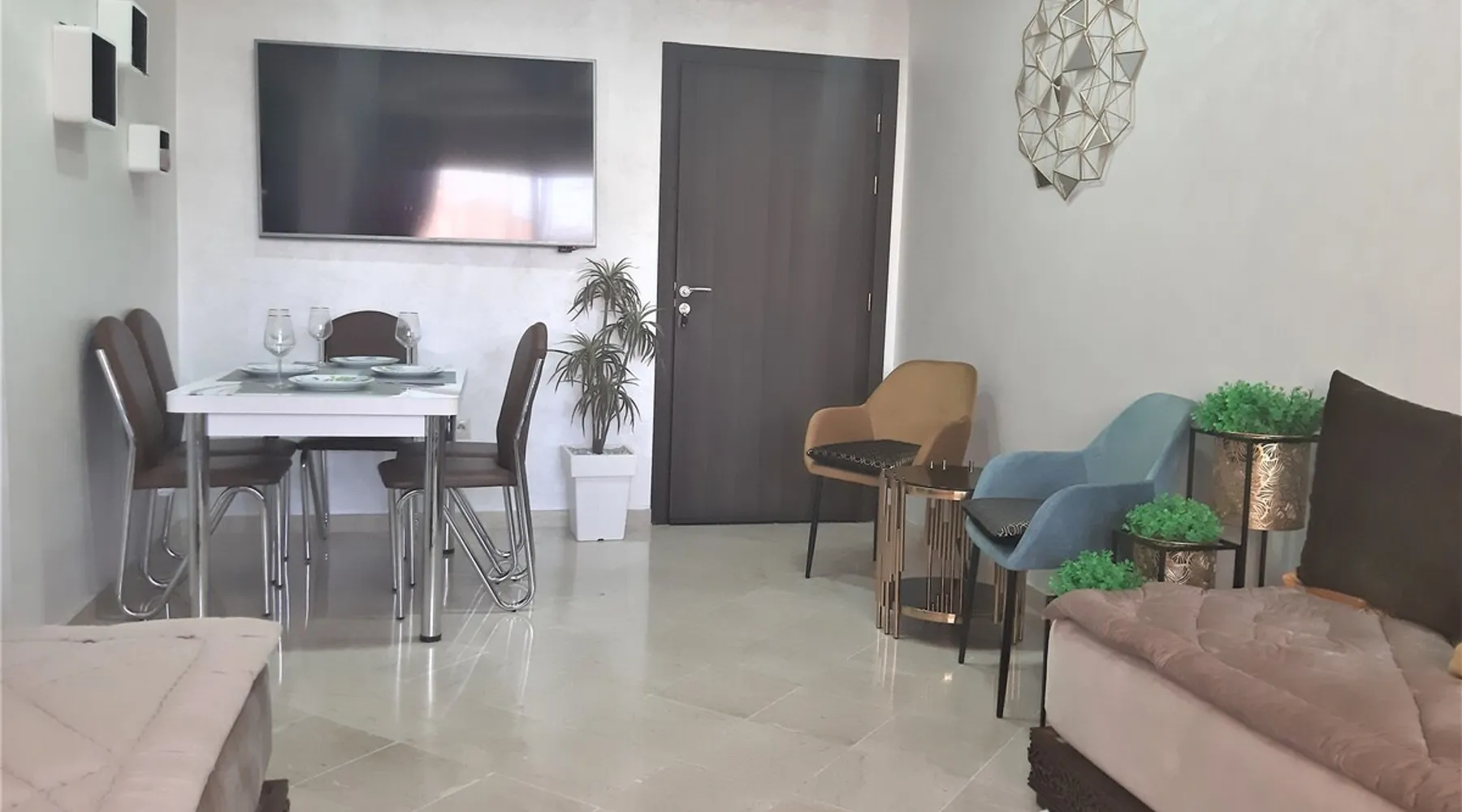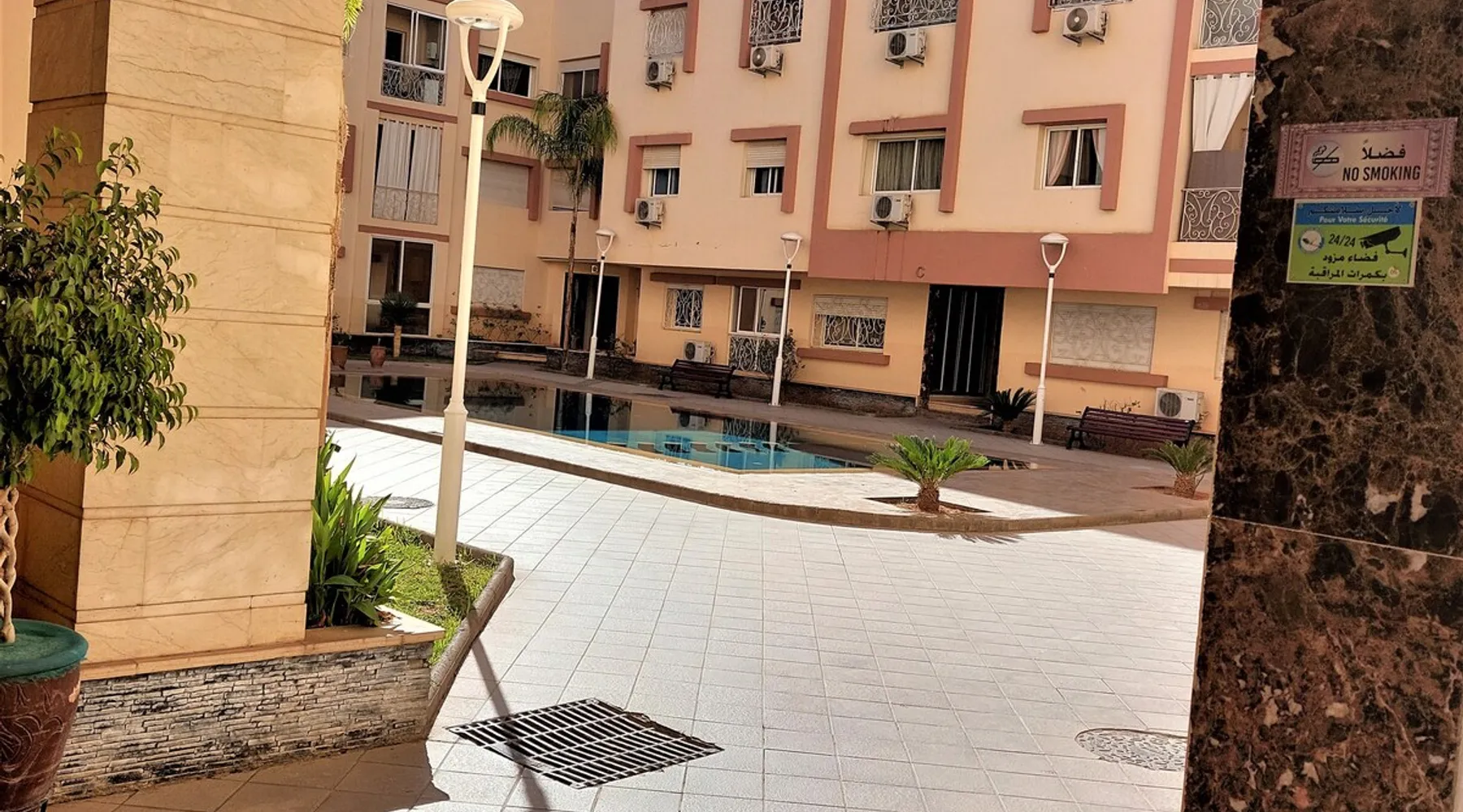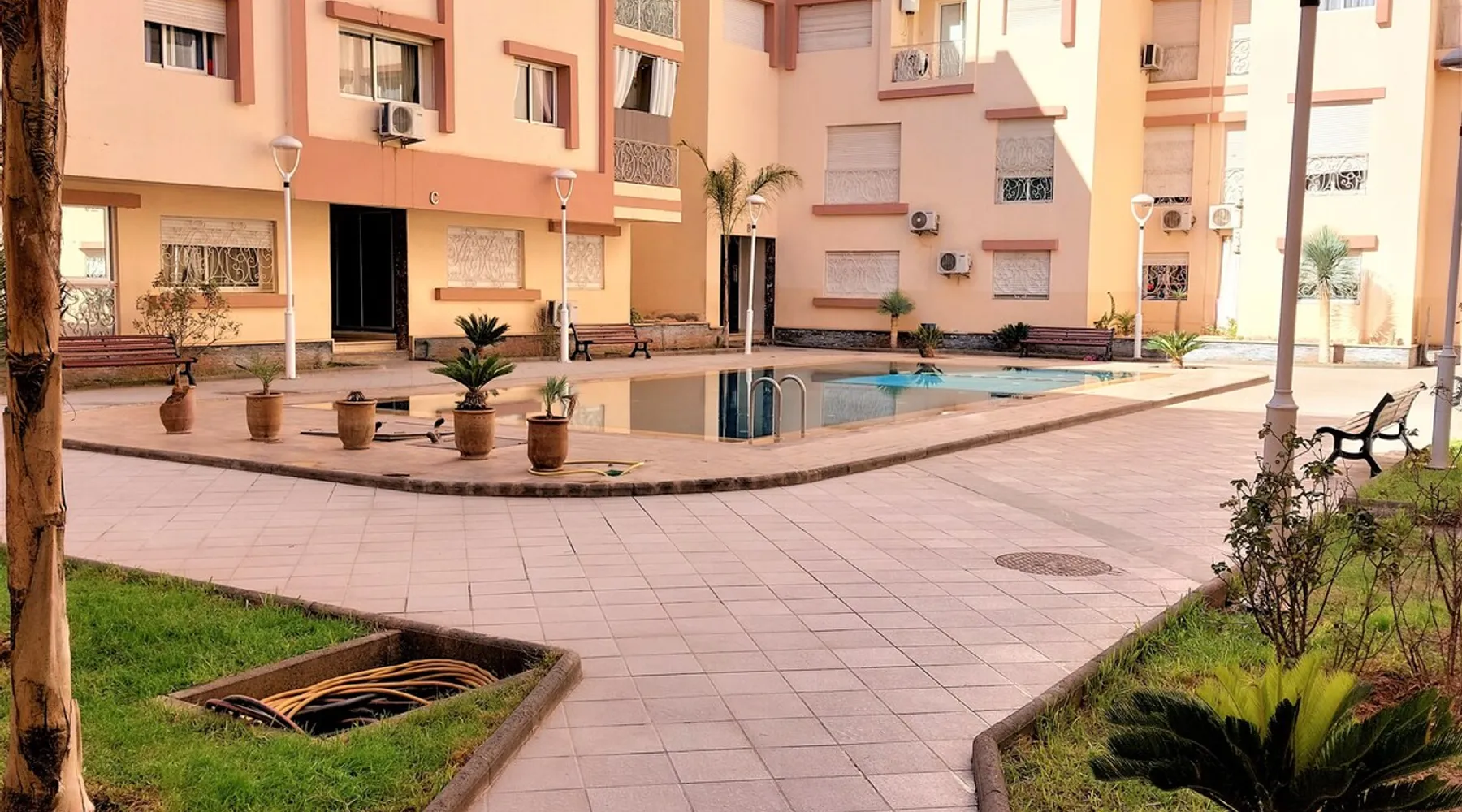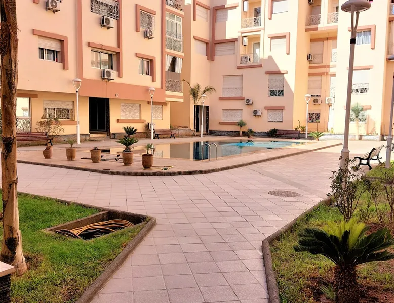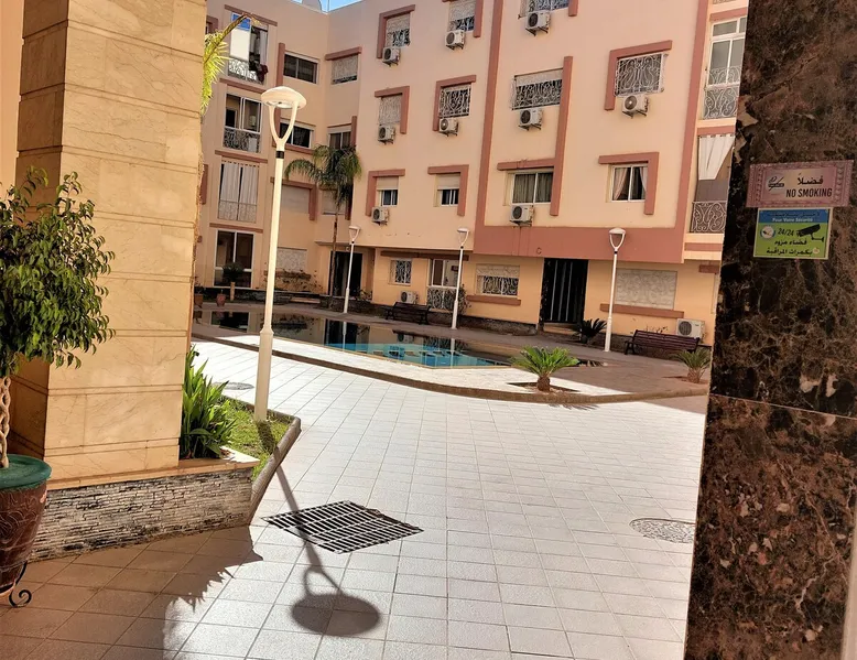 Have fun with the entire family at this stylish place. Close to all amenities (Snack/Restaurants , Cafes, Grocery stores, Shops,...). Apartment located in secure residence with Pool. you are 3 mn from MacDo and 5 mn from Marjane Supermarket. you have 2 SMART TV HD 65 inches with NETFLIX and 42 inches with Broadband WiFi connection. The space The accommodation contains a bedroom with built-in bathroom and dressing room. a second bedroom with TV and work desk. a living room equipped with a TV and dining table. a second bathroom and a kitchen equipped with electric ovens and washing machine.