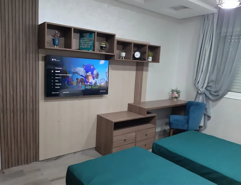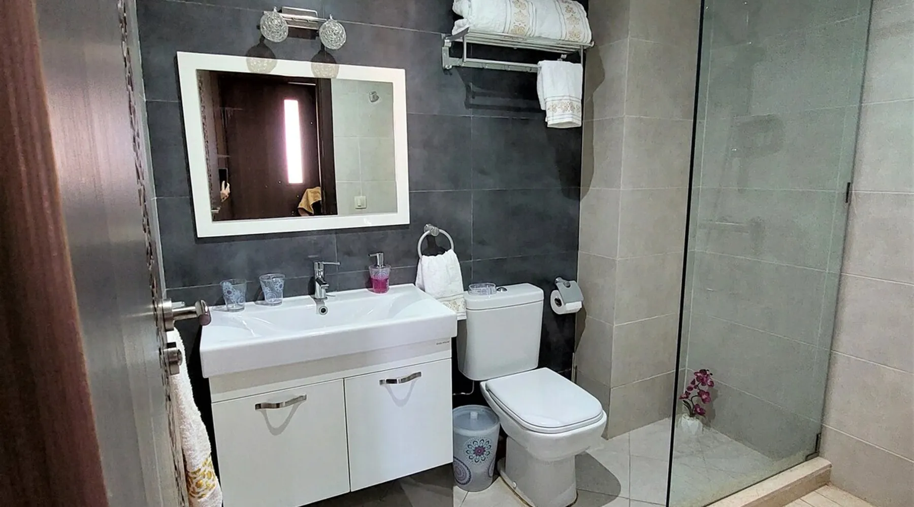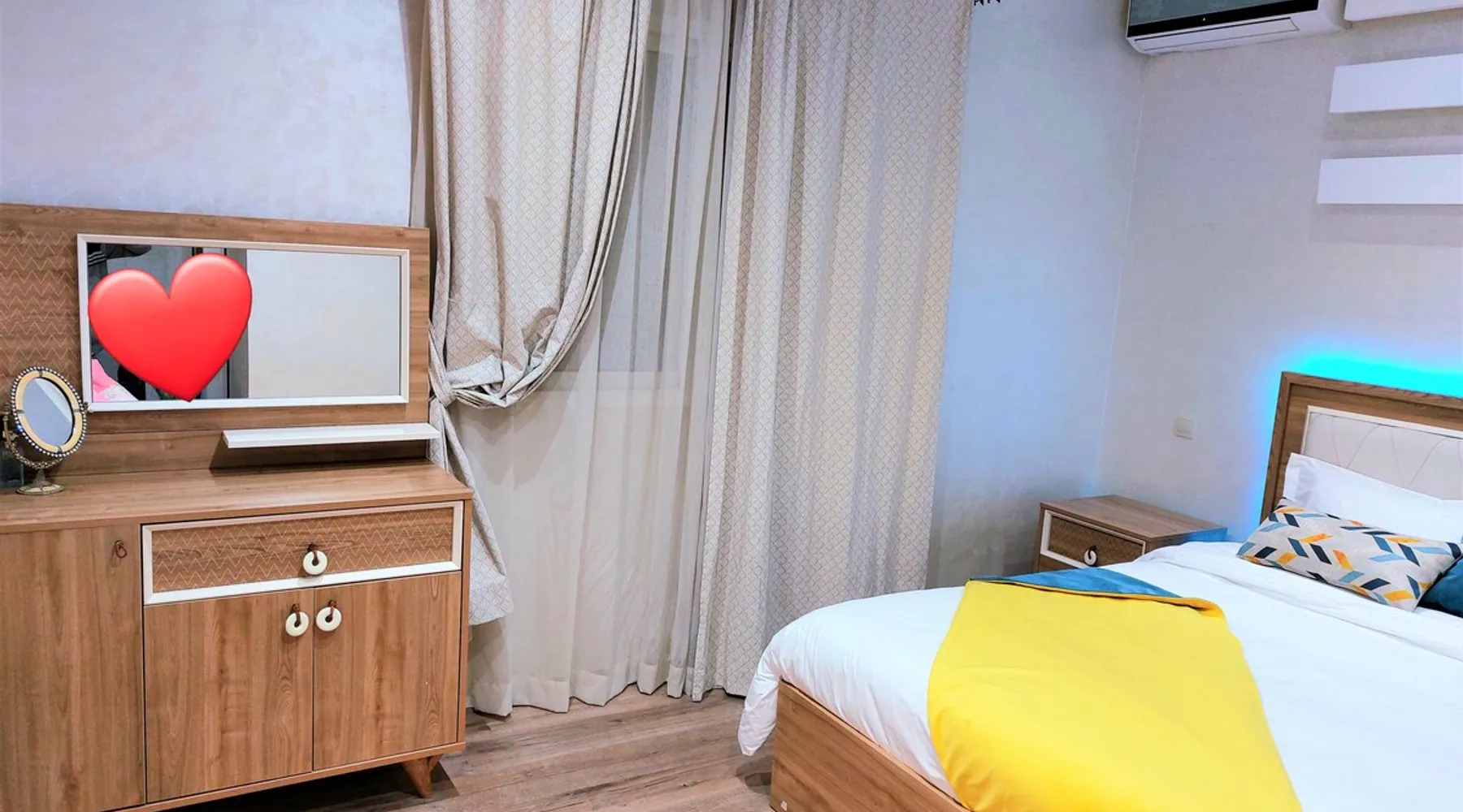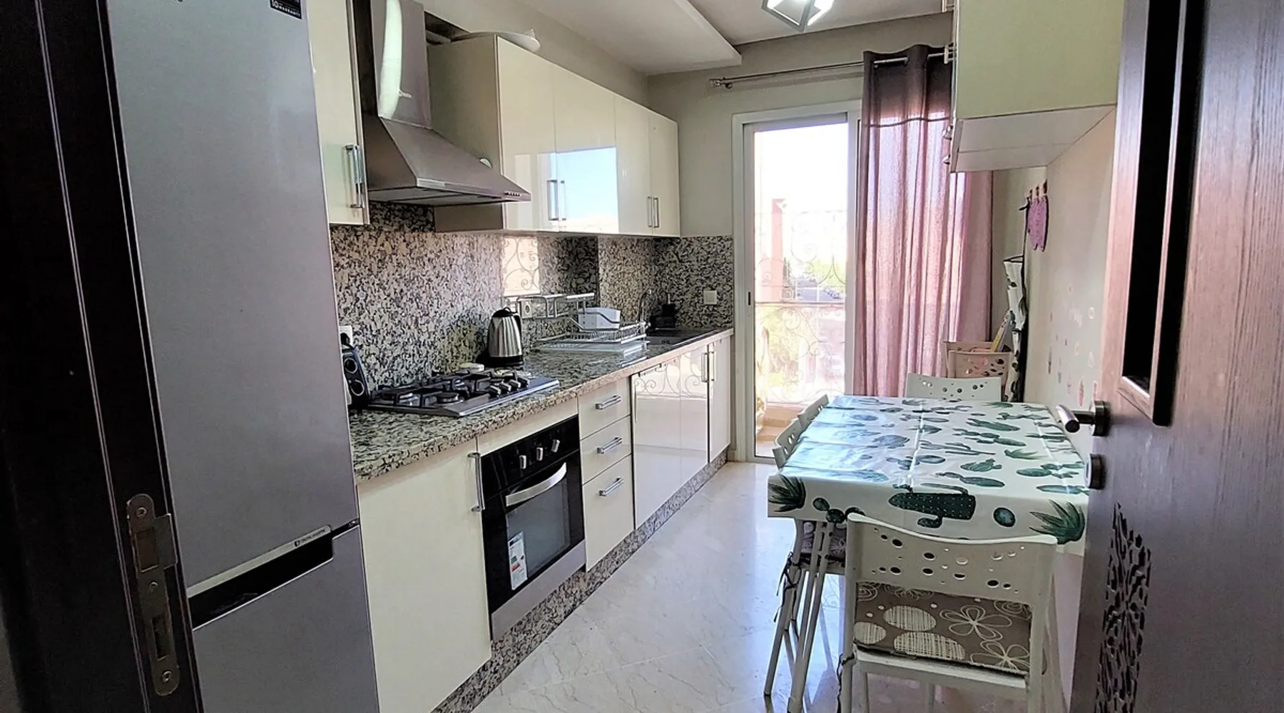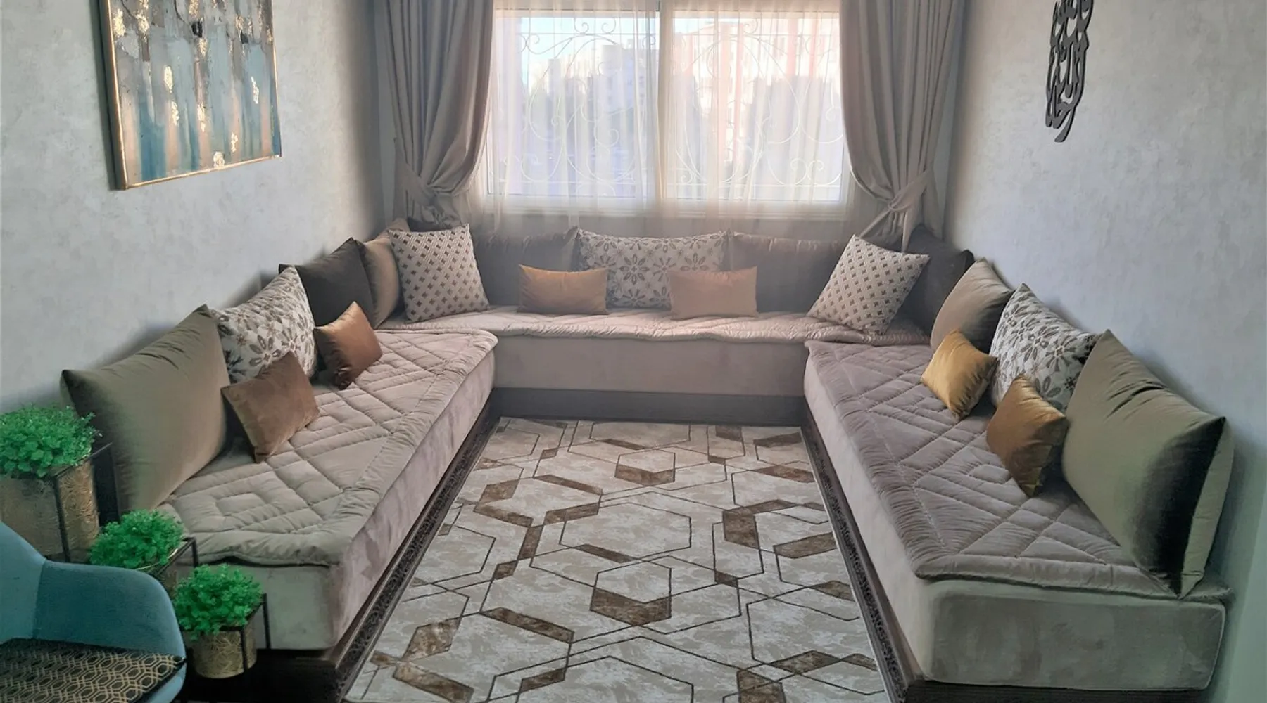 Have fun with the entire family at this stylish place. Close to all amenities (Snack/Restaurants , Cafes, Grocery stores, Shops,...). Apartment located in secure residence with Pool. you are 3 mn from MacDo and 5 mn from Marjane Supermarket. you have 2 SMART TV HD 65 inches with NETFLIX and 42 inches with Broadband WiFi connection. The space The accommodation contains a bedroom with built-in bathroom and dressing room. a second bedroom with TV and work desk. a living room equipped with a TV and dining table. a second bathroom and a kitchen equipped with electric ovens and washing machine.