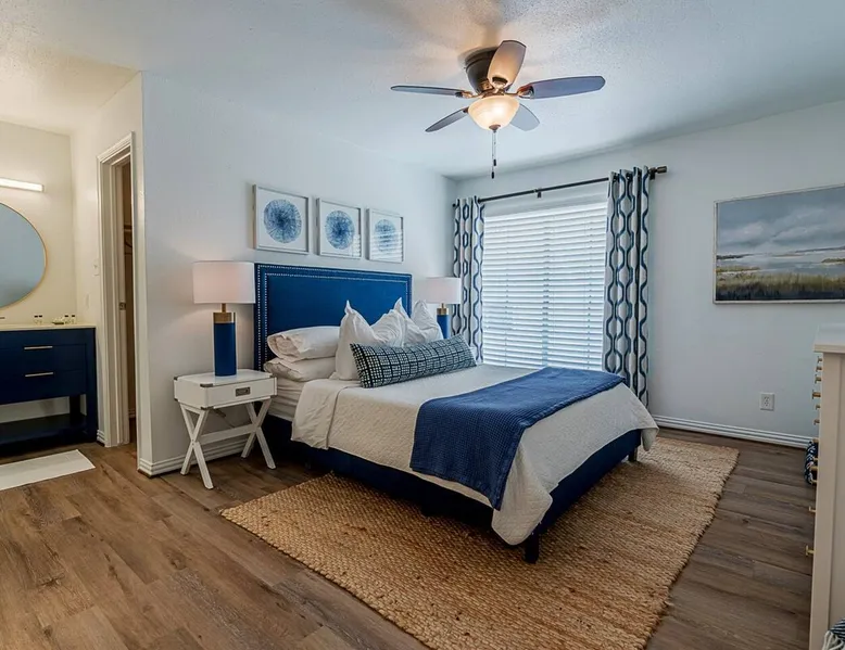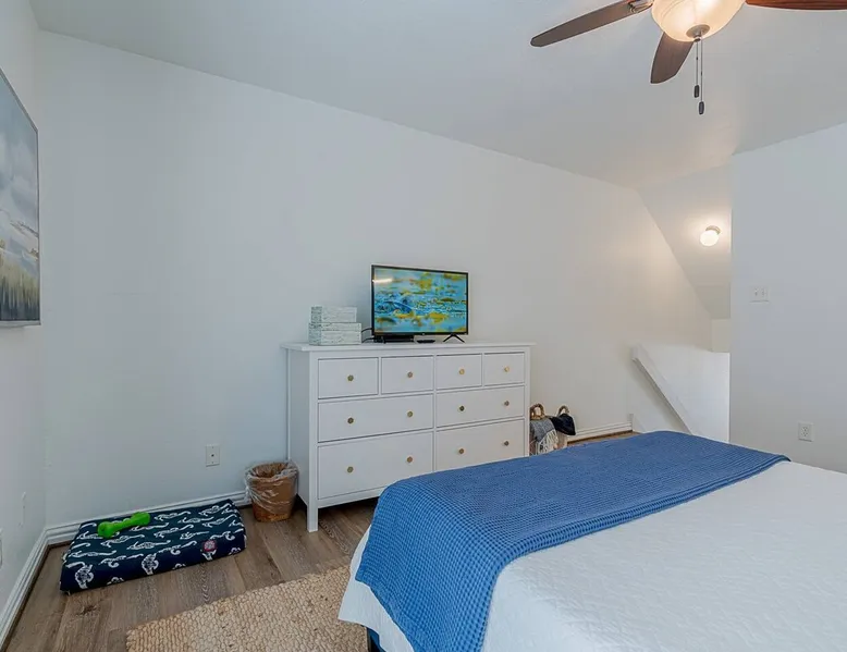 Do you need a place to getaway and relax? This quiet, clean condo on Galveston's near west end is the perfect place. Light, bright and airy this unit is just steps from the sparkling pool and minutes from some of Galveston's major attractions. This is the perfect pup-welcoming place to re-connect! A Purple mattress, fluffy down pillows, buttery cotton sheets, 4k smart TVs, full kitchen and a tranquil patio to enjoy. The space Wonderfully peaceful, this freshly remodeled one bedroom condominium is outfitted for everything you need to get away. That said, you may not want leave the bed. This sophisticated space designed for adults to unwind, boasts a queen-sized Purple 3 mattress, with plenty of Pacific Coast down pillows--just like those in fancy hotels--all encased in high thread count organic cotton sateen sheets. We believe it is one of the most sumptuous beds on the island. There is a generous sized vanity and walk-in closet to make getting ready a breeze. Need extra sleeping space for two more? The downstairs couch folds out to a queen-sized sleeper sofa. The first floor has plenty of room to spread out. The comfortable living room boasts a statement fireplace, sofa, and fun decor that is open to a dining area for four. We added a 4k smart TV so you can logon to any of your streaming services with our fast wifi and enjoy your favorite shows. The open kitchen offers full sized appliances and is well stocked for your meal prep. But do take advantage of all the awesome restaurants on the Island! You'll want to hang out in the awesome nest chair while soaking up sunshine on the private patio. Or sit in the armchairs and enjoy a glass of wine and conversation while your partner is cooking on the electric grill. Located just a few steps from the community pool, feel free to jump in or lounge around. Deluxe bath linens, bright Turkish beach towels, and starter Beekman 1802ยฎ soap, shampoo and conditioner are provided for your enjoyment. A full-sized washer and dryer are available in the unit if you need them. And let's not forget about your beloved fur babies! We take pet-friendliness to an entirely new level, catering to the needs and comfort of your canine companions. From dog beds to organic treats, we've thought of everything to ensure your four-legged guests feel right at home during their stay. But the best part? We have absolutely no weight restrictions, and welcome pups of all shapes and sizes. โ Short drive to Moody Gardens and Schlitterbahn โ Short drive to Cruise Terminals โ Quick walk to the Seawall โ Six miles to Pleasure Pier fevn6 Other things to note โBy booking you are agreeing to our "House Rules." Please scroll to the bottom of our listing and read them first!โ Registration Details GVR-06327