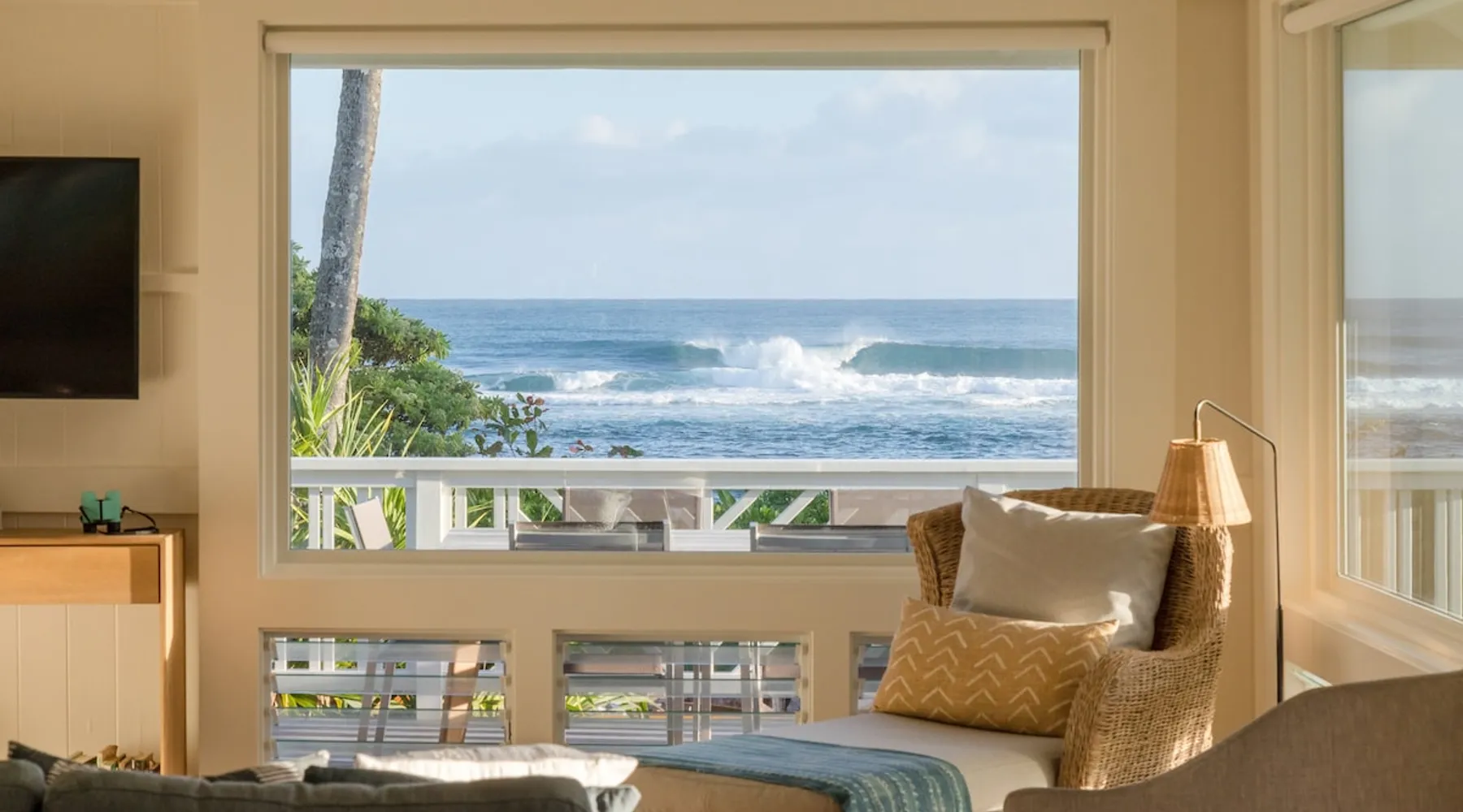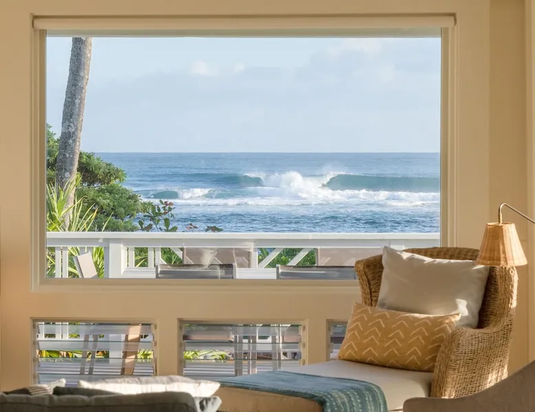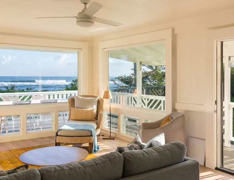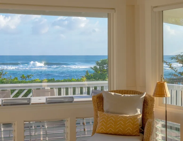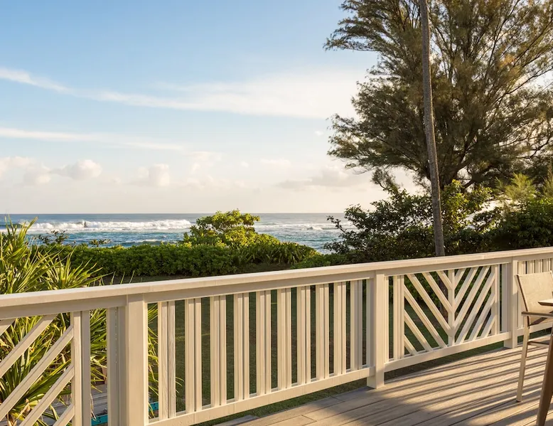 Hawaii Life Presents Hale Kalani The space Your personal beachfront oasis on Kauai’s north shore offers you a truly special experience. With unobstructed ocean views from the home, beautiful sunrises, sunsets, and even the frequent rainbow can be enjoyed throughout the year. The beach in front of the home is a sandy stretch with lagoons within the coral for swimming or snorkeling. Located amidst breathtaking mountain backdrops, lush foliage, and meticulously manicured grounds, Kauai’s natural beauty can be experienced from every angle. The house has the living space, with two bedrooms and two baths. The wrap around lanai provides lounge seating and dining, the perfect place to relax and take in the views. Large windows bring the magic of outside in and Kauai’s trade-winds keep the home cool all year round. Two Story Unit: Master Bedroom with King Size Bed Guest Bedroom with 1 King Size Bed and 1 Twin Bed Featuring: Indoor and Outdoor Dining Areas Hardwood Floors Ceiling Fans Fully Equipped Kitchen Comfortable Living Area Updated Bathroom Hot and Cold Outdoor Shower Amenities: Breville Espresso Machine Beach Chairs Beach Towels Beach Umbrella Charcoal Grill Two Parking Spaces * No Air Conditioning * **THIS HOME IS LOCATED IN A TSUNAMI ZONE** Hawaii Life Rentals is a locally owned, licensed real estate company with rentals on Kauai, Maui, Oahu, and Hawaii. We offer on-island personal assistance and Concierge services. Rates do not include taxes, cleaning and applicable fees. Hawaii Life/VRBO bookings: Guests must sign a rental contract within 48 hours of booking to confirm the reservation. TVNC 1346 TA-031-463-6800-01 TMK- Registration Details 580080320000, TA-031-463-6800-01