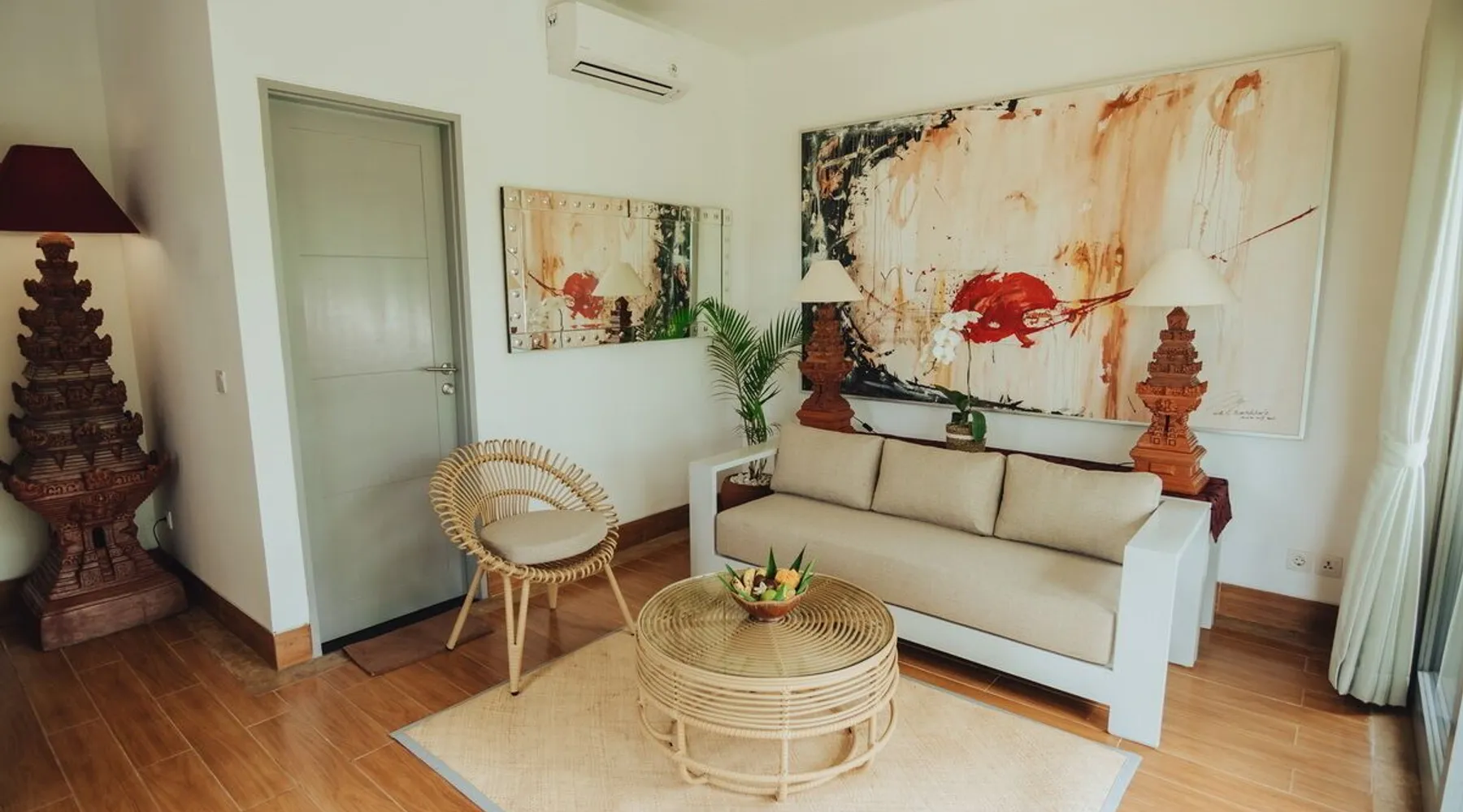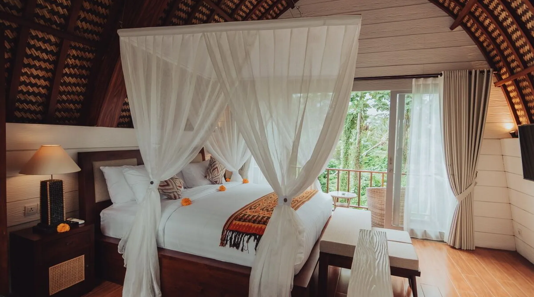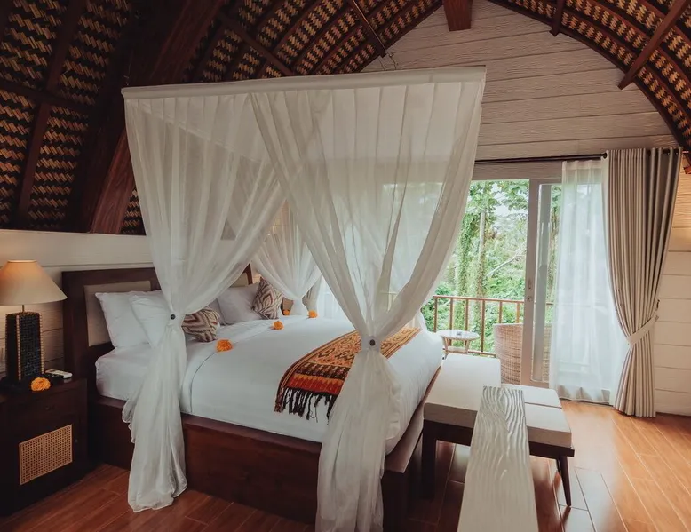 Offer 8 units of 1 Bedroom Villa. Incorporate modern and Balinese architecture design, the villa is inspired by the Traditional rice barn called ‘the lumbung’ which is firmly built with the calming wood element. The living room on the ground level is adapting an open living concept completed where the plunge pool and long river pool are attached to its terrace, while on the upstairs, the bedroom is perfectly set in the wooden curved roof with the balcony allowing more privacy. Location Located in area / city Ubud. There are plenty of tourist attractions nearby, such as Gajah Mas Gallery within 1.19 km, and Rudana Museum within 1.35 km. When staying at a villa, the design and architecture are two important factors that can spoil your eyes. This villa is the perfect choice for couples seeking a romantic getaway or a honeymoon retreat. Enjoy the most memorable nights with your loved one. Be ready to get the unforgettable stay experience by its exclusive service, completed by a full range of facilities to cater all your needs. 24-hours front desk is available to serve you, from check-in to check-out, or any assistance you need. Should you desire more, do not hesitate to ask the front desk, we are always ready to accommodate you.Savor your favorite dishes with special cuisines exclusively for you. WiFi is available within public areas of the property to help you to stay connected with family and friends.