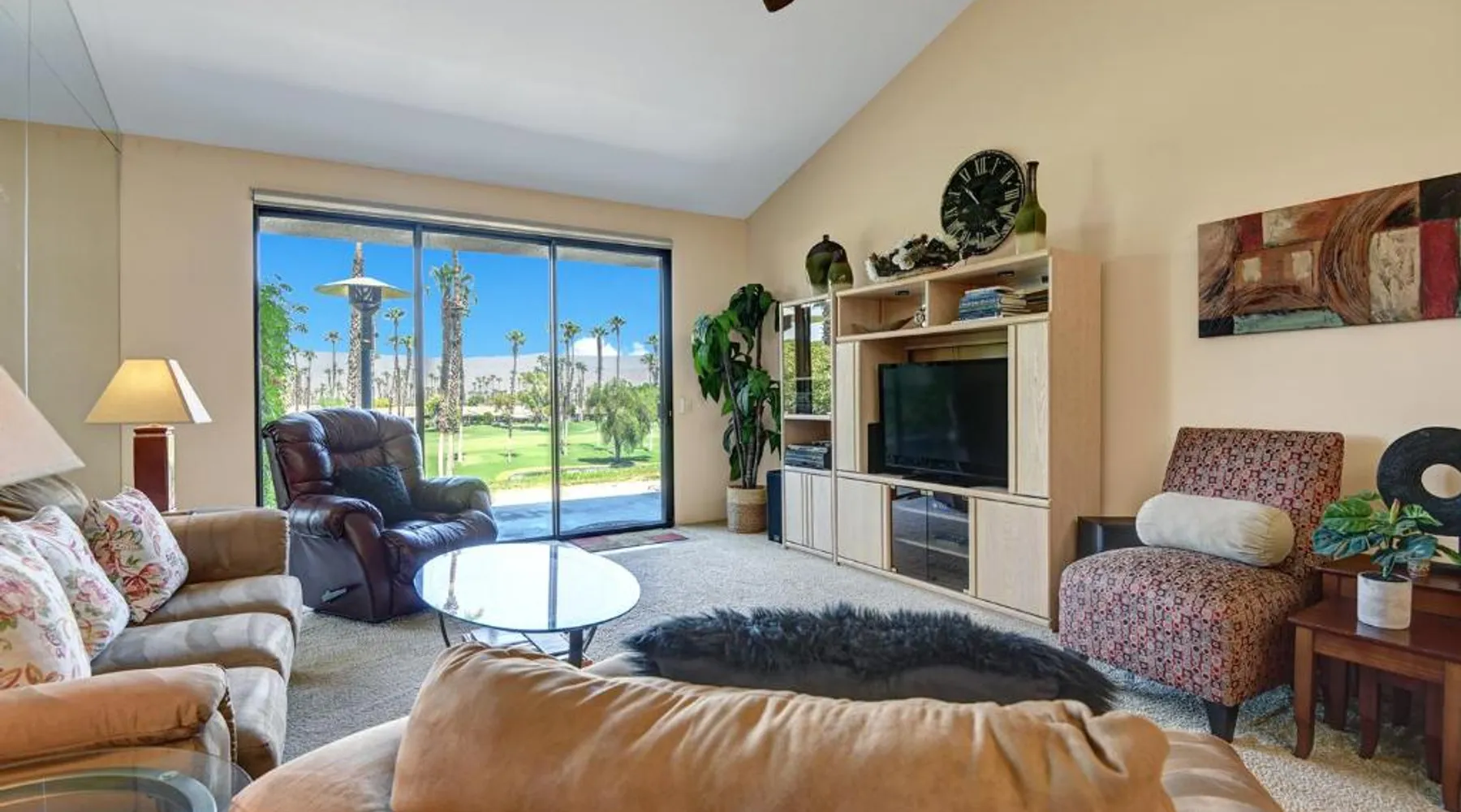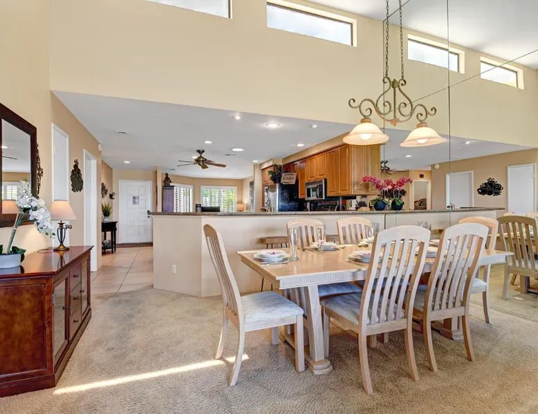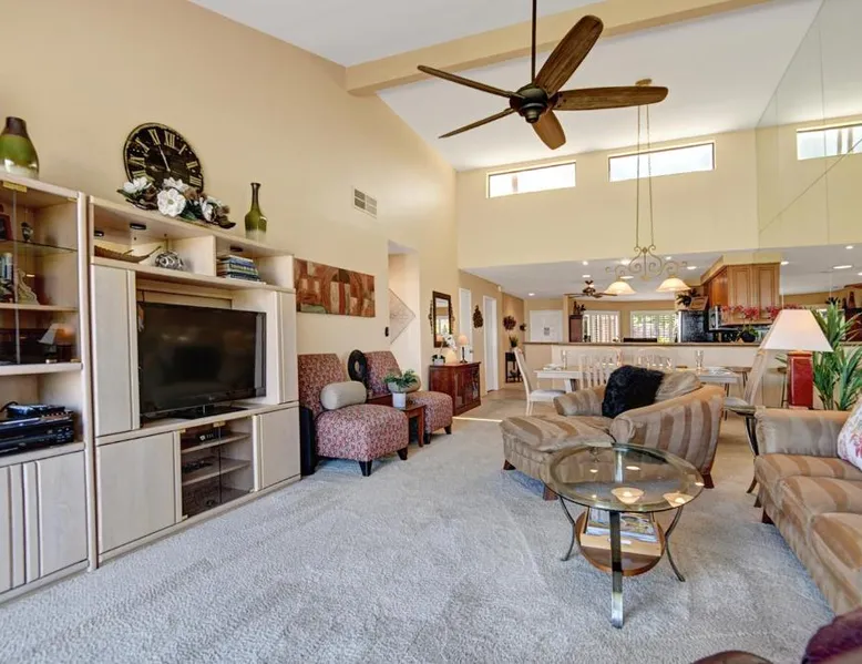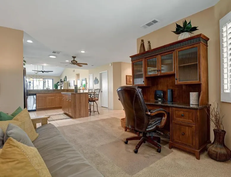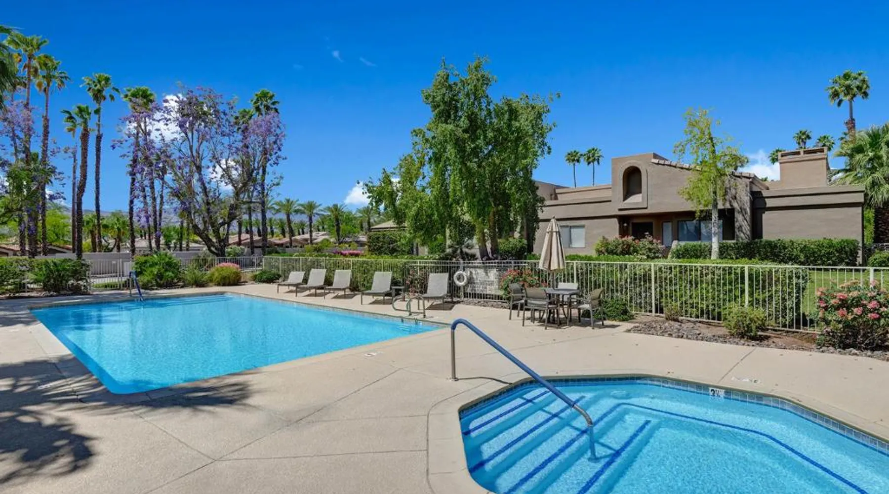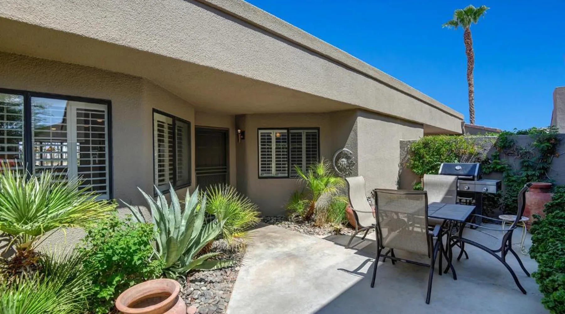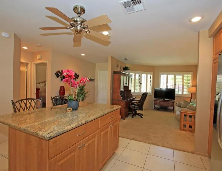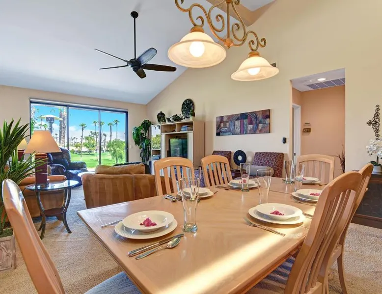 Spacious Holiday Home in Palm Desert: VY630 - Desert Hock offers a spacious holiday home in Palm Desert. Guests enjoy a private garden, terrace, seasonal outdoor swimming pool, and free WiFi. Comfortable Amenities: The property features air-conditioning, a hot tub, heated pool, streaming services, washing machine, private bathroom, kitchen, barbecue, and outdoor furniture. Additional amenities include a work desk, microwave, dishwasher, and TV. Convenient Location: Located 13 mi from Palm Springs International Airport, the holiday home is near attractions such as Saks Fifth Avenue Palm Desert (5.6 mi), Escena Golf Club (14 mi), and Palm Springs Aerial Tramway (17 mi). Guests will have a special experience as this holiday home provides a hot tub. The holiday home features a dining area, tumble dryer, as well as a private bathroom featuring a walk-in shower and a hairdryer. Guests will find a stovetop, a refrigerator, a dishwasher and kitchenware in the well-equipped kitchen. The holiday home also has a barbecue. The spacious holiday home offers air conditioning, a washing machine, a private entrance, a tea and coffee maker, as well as a TV with streaming services.