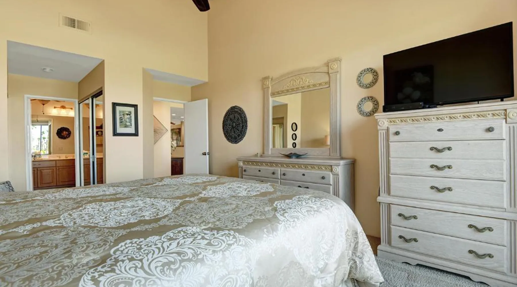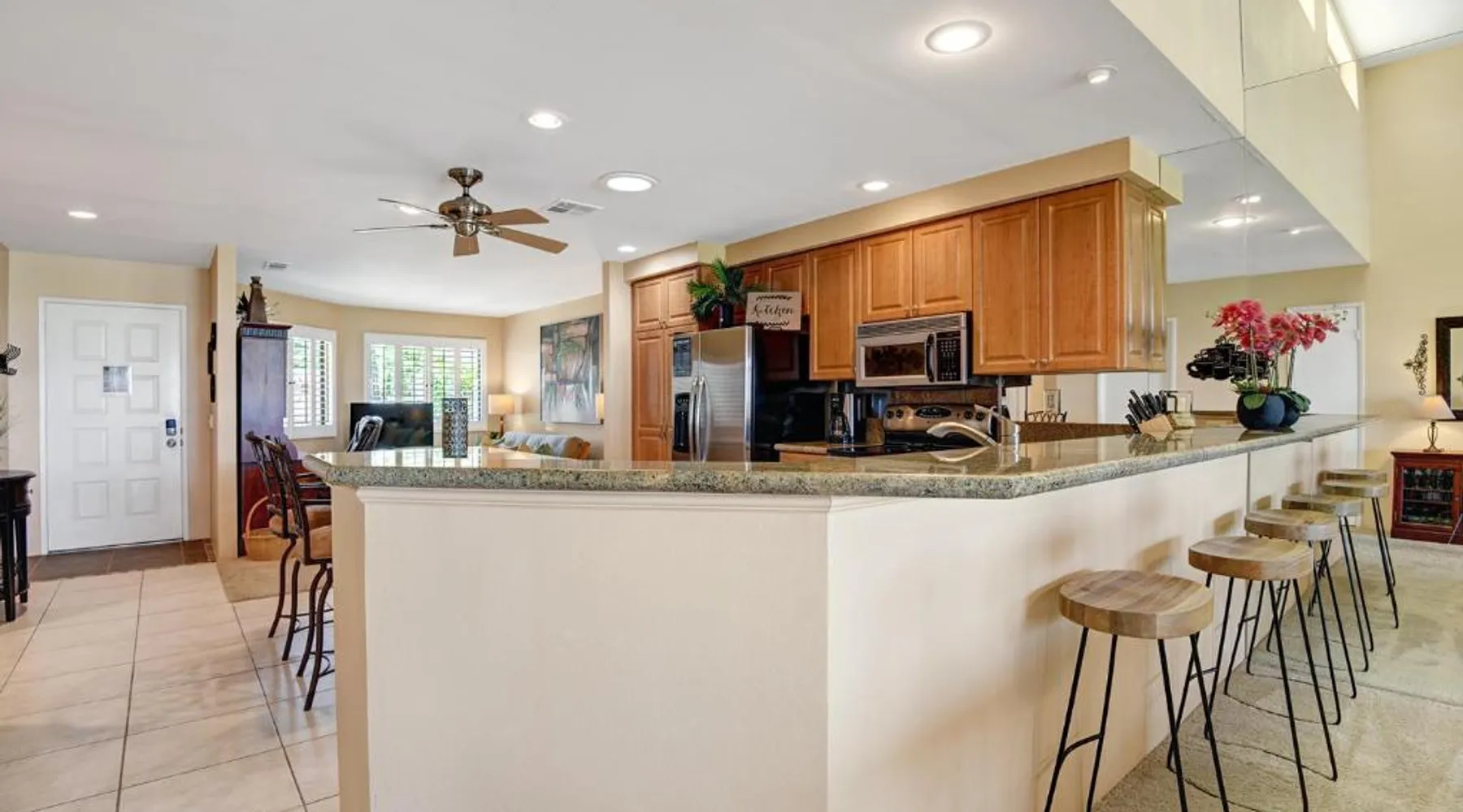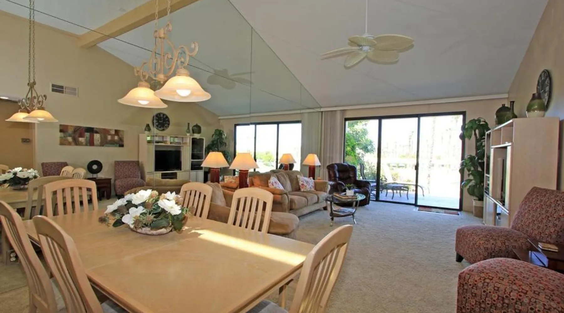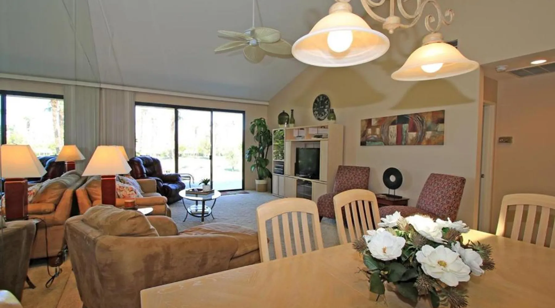 Spacious Holiday Home in Palm Desert: VY630 - Desert Hock offers a spacious holiday home in Palm Desert. Guests enjoy a private garden, terrace, seasonal outdoor swimming pool, and free WiFi. Comfortable Amenities: The property features air-conditioning, a hot tub, heated pool, streaming services, washing machine, private bathroom, kitchen, barbecue, and outdoor furniture. Additional amenities include a work desk, microwave, dishwasher, and TV. Convenient Location: Located 13 mi from Palm Springs International Airport, the holiday home is near attractions such as Saks Fifth Avenue Palm Desert (5.6 mi), Escena Golf Club (14 mi), and Palm Springs Aerial Tramway (17 mi). Guests will have a special experience as this holiday home provides a hot tub. The holiday home features a dining area, tumble dryer, as well as a private bathroom featuring a walk-in shower and a hairdryer. Guests will find a stovetop, a refrigerator, a dishwasher and kitchenware in the well-equipped kitchen. The holiday home also has a barbecue. The spacious holiday home offers air conditioning, a washing machine, a private entrance, a tea and coffee maker, as well as a TV with streaming services.