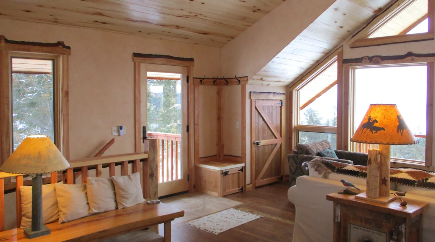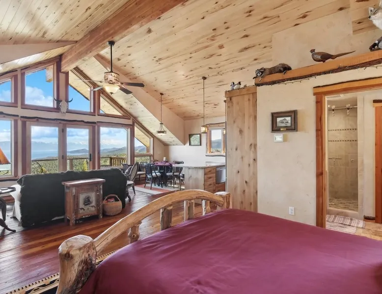 New custom designed chalet is situated on a secluded ten acre wooded lot near Somers, Montana (30 minutes from Glacier International Airport and less than one hour from Glacier National Park). A perfect get away for those wanting to explore all that Montana has to offer, incredible mountaineering, horseback riding, hiking, skiing, fishing, golfing, just about everything! Panoramic views of Flathead Lake and Mission Mtns are abundant from the open great room offering true comfort Montana style. The space This new customed designed chalet style studio was built with every comfort in mind. The large open room has beautiful vaulted aspen ceilings, a spacious granite kitchen with top of the line appliances and knotty alder cabinets, hand hewn log queen bed and sofa bed, dining area and a large bathroom with dressing area, double sinks, heated towel rack and toilet room. A redwood walk out deck with glass panels offers al fresco dining offering best views of Flathead lake and mountains. This is truly a one of a kind hilltop chalet with absolutely unparalleled views of Flathead Lake. It does feel like you are on top of the world! Guest access The studio/garage overlooks approximately 10 acres of forested land. A custom built barn is also situated on the property about 200 feet away. The owners have reining horses which during the summer months are in training so are not in the fenced-in portion of the property. Additional unique "Glamping" option "Elegant Barn Cabin" is available to rent on property under separate listing on Airbnb, which features a beautiful loft with incredible views, for a "real" western Montana experience. Other things to note This property is not appropriate for children under the age of 13.