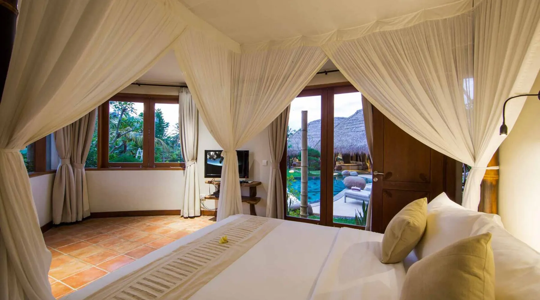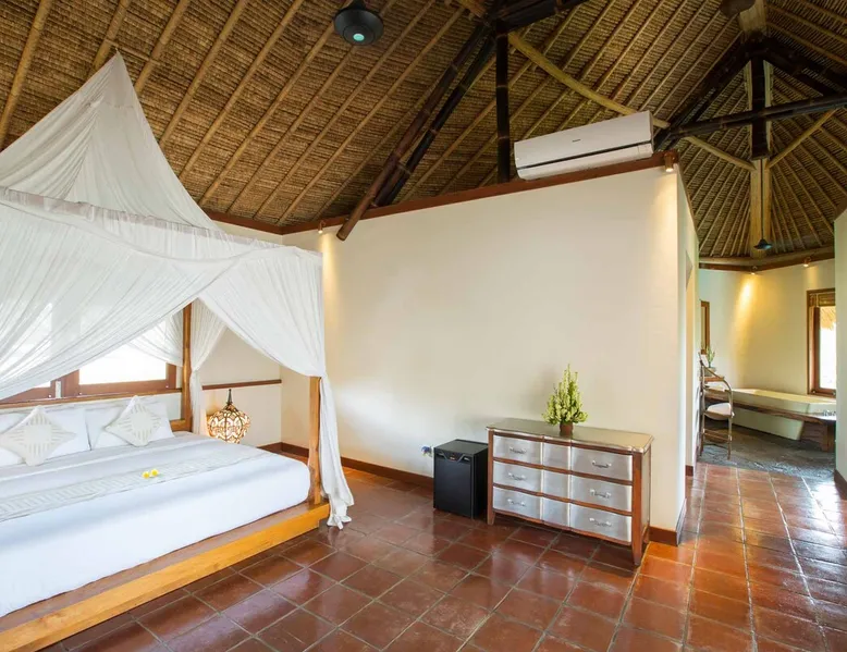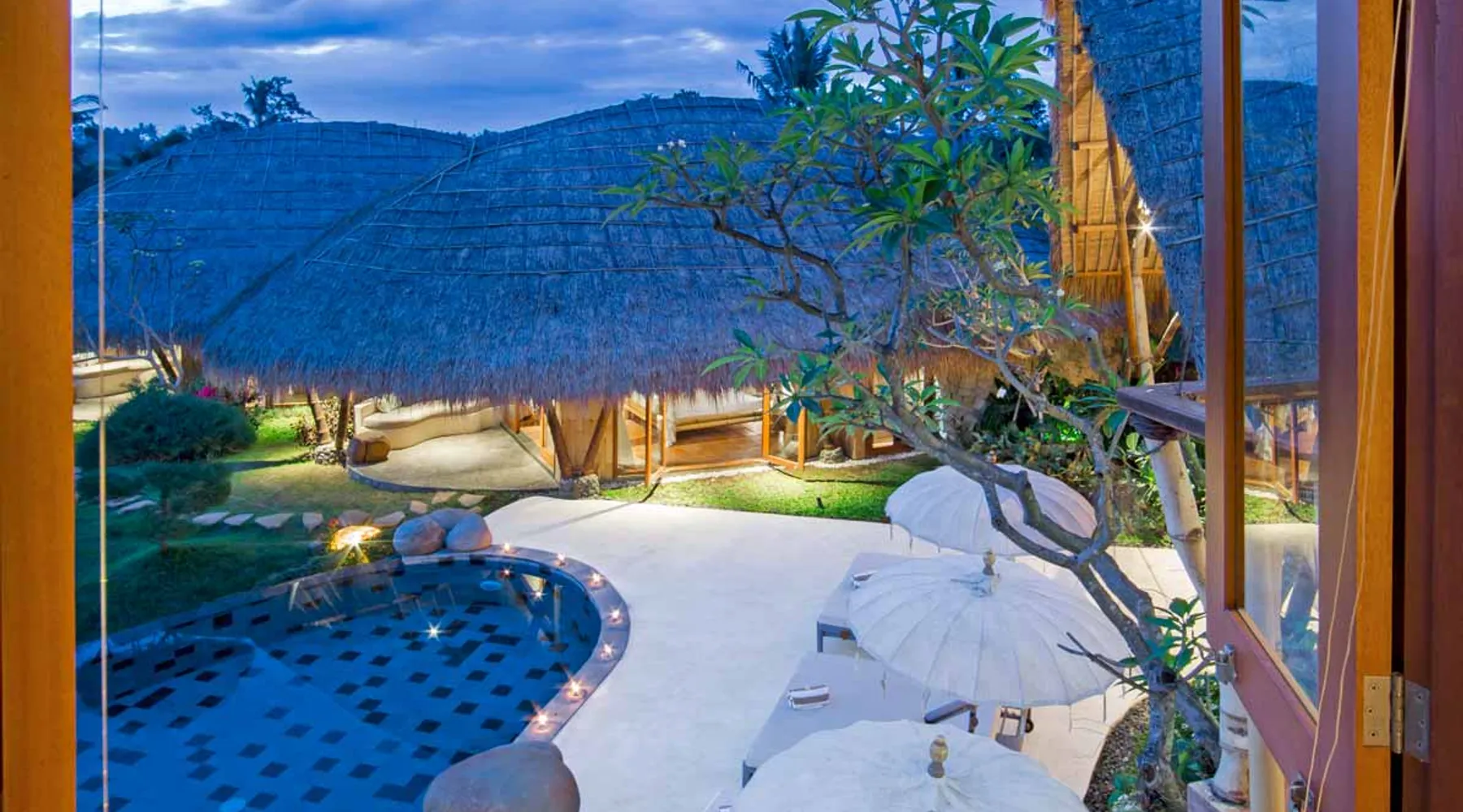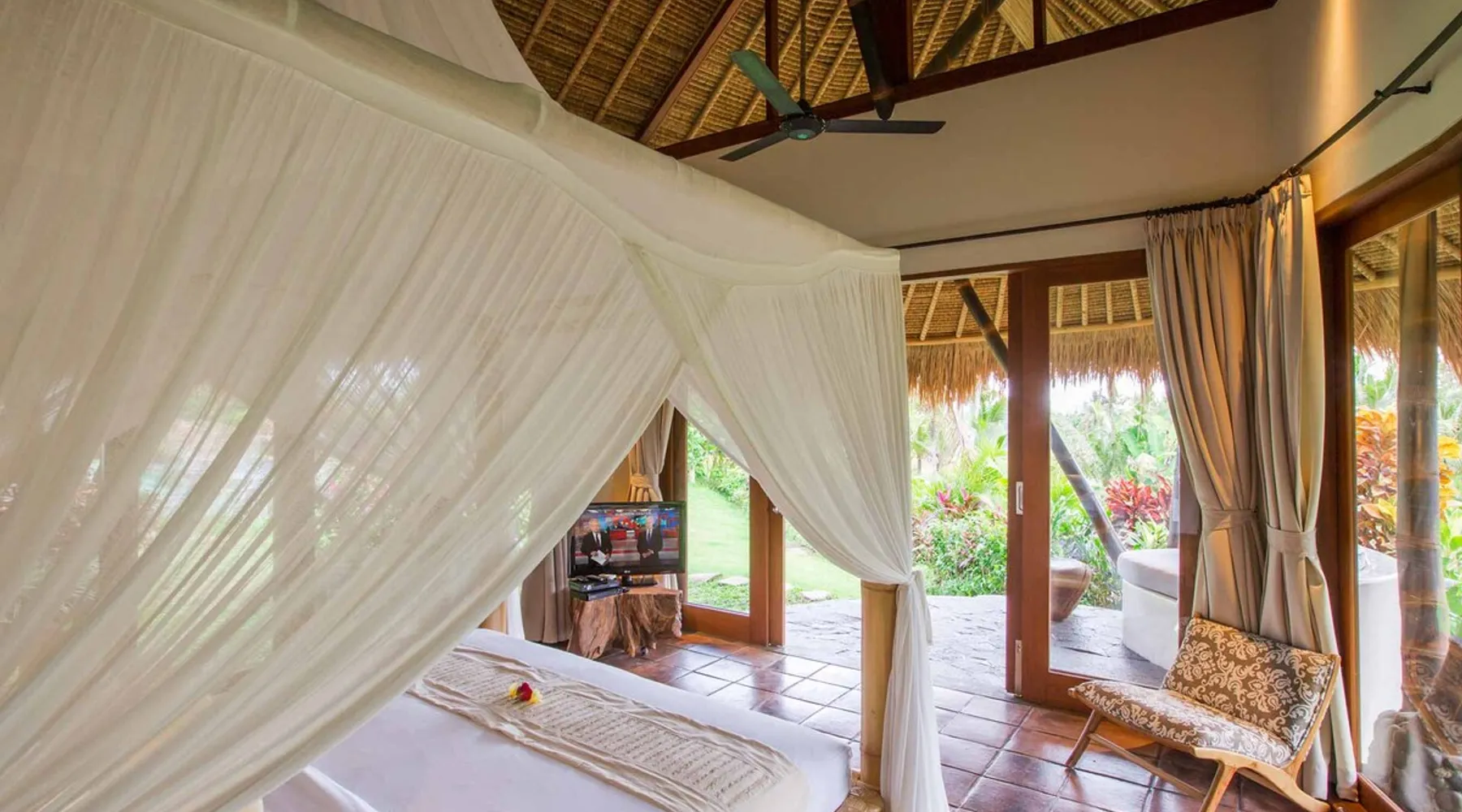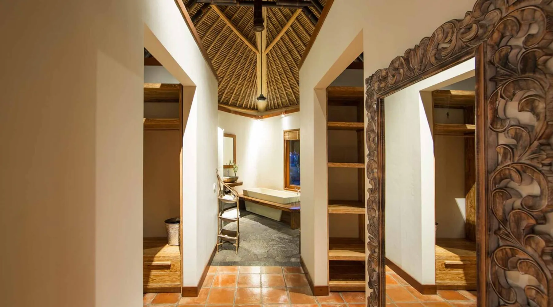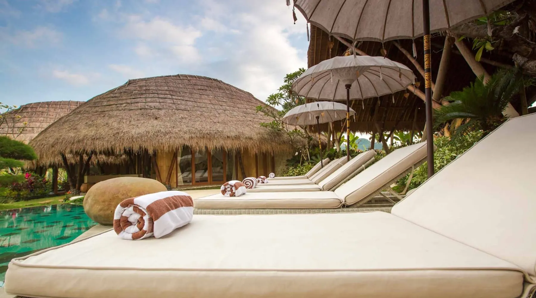 Indulge in the allure of our remarkable 5-bedroom private villa, a testament to unique and captivating architecture. Nestled in a tranquil enclave surrounded by lush tropical beauty, this retreat is tailor-made for large families or groups of friends seeking a serene haven, where nature's untouched beauty intertwines with luxury. Embark on a journey where architectural magnificence embraces serene nature. Book your stay in our villa and experience a realm where luxury and tranquility unite. The space As you step into this property, a sprawling garden greets you, crowned by a picturesque free-form infinity pool. Here, relaxation finds a new definition, with comfortable sun loungers inviting you to unwind. A central pavilion plays host to the villa's living areas, adorned with art pieces and designer furniture. This space boasts panoramic views of the outdoor expanse. A lounge corner, furnished with wooden sofas, beckons for moments of repose. A grand dining table, accommodating large groups, stands ready for lavish feasts. The modern kitchen, complete with a bar and stools, invites culinary exploration. Five resplendent bedrooms await, each an epitome of comfort. Air-conditioning embraces you as you enter, and lavish canopied king or queen beds promise nights of absolute repose. Televisions with DVD players and en-suite bathrooms, featuring invigorating rain showers, complete the offerings. The master bedroom, elevated on the second floor of a captivating pavilion, unfolds a balcony with tranquil seating and an en-suite bathroom graced with a stone tub. Two ground-floor bedrooms in the same pavilion extend a familial warmth. The remaining two bedrooms, nestled in a separate bungalow, unveil private verandas adorned with plush sofas.