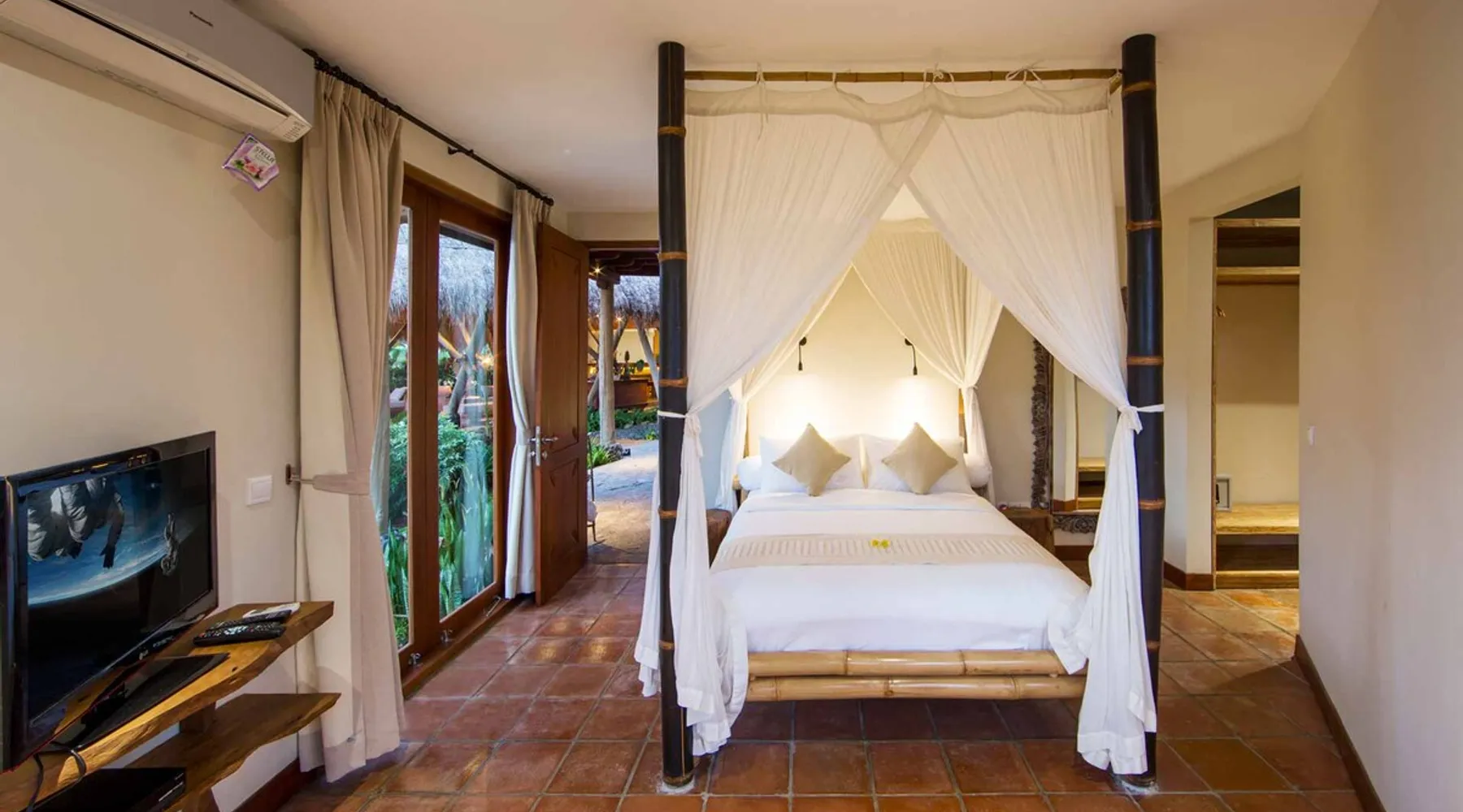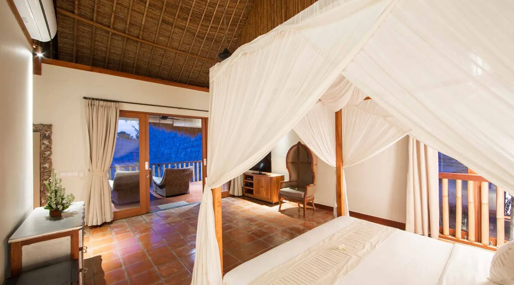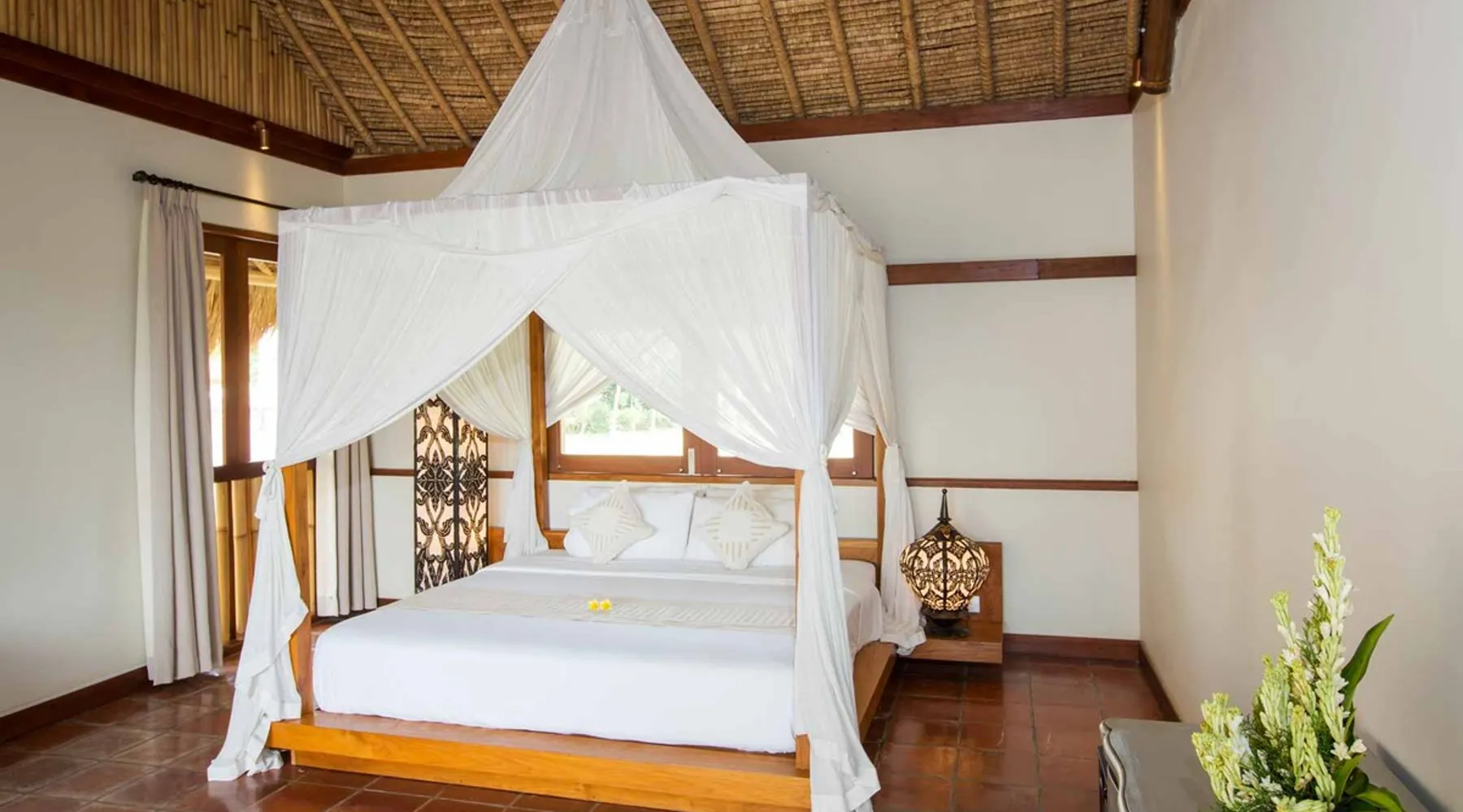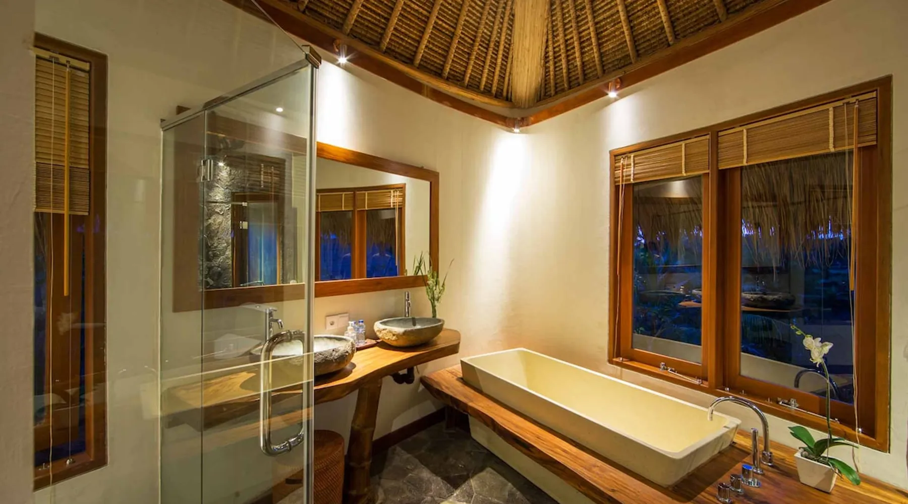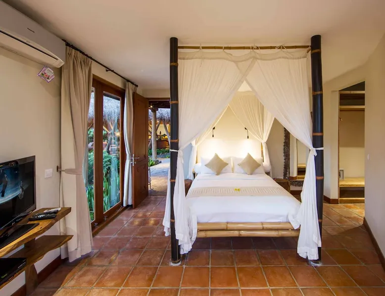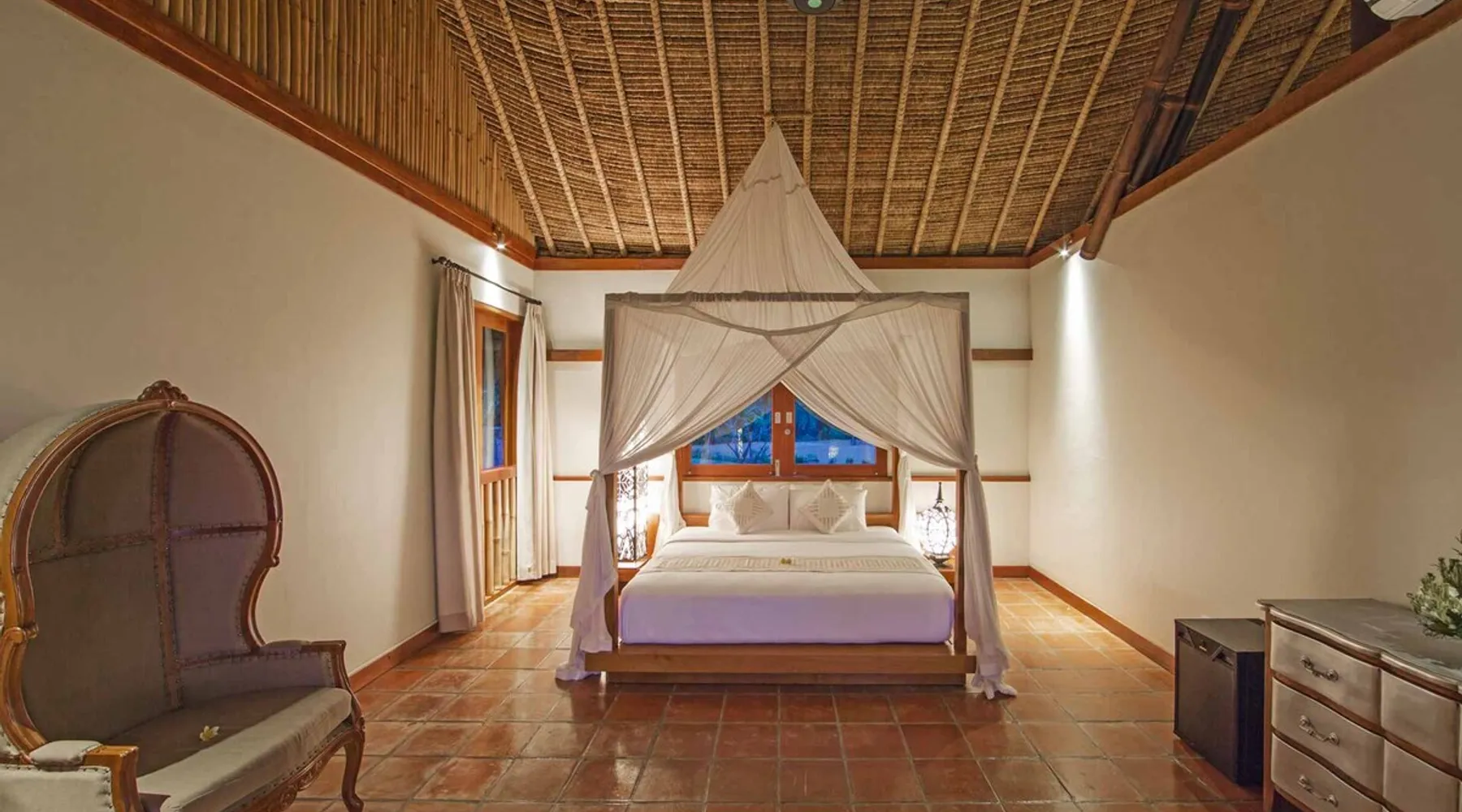 Indulge in the allure of our remarkable 5-bedroom private villa, a testament to unique and captivating architecture. Nestled in a tranquil enclave surrounded by lush tropical beauty, this retreat is tailor-made for large families or groups of friends seeking a serene haven, where nature's untouched beauty intertwines with luxury. Embark on a journey where architectural magnificence embraces serene nature. Book your stay in our villa and experience a realm where luxury and tranquility unite. The space As you step into this property, a sprawling garden greets you, crowned by a picturesque free-form infinity pool. Here, relaxation finds a new definition, with comfortable sun loungers inviting you to unwind. A central pavilion plays host to the villa's living areas, adorned with art pieces and designer furniture. This space boasts panoramic views of the outdoor expanse. A lounge corner, furnished with wooden sofas, beckons for moments of repose. A grand dining table, accommodating large groups, stands ready for lavish feasts. The modern kitchen, complete with a bar and stools, invites culinary exploration. Five resplendent bedrooms await, each an epitome of comfort. Air-conditioning embraces you as you enter, and lavish canopied king or queen beds promise nights of absolute repose. Televisions with DVD players and en-suite bathrooms, featuring invigorating rain showers, complete the offerings. The master bedroom, elevated on the second floor of a captivating pavilion, unfolds a balcony with tranquil seating and an en-suite bathroom graced with a stone tub. Two ground-floor bedrooms in the same pavilion extend a familial warmth. The remaining two bedrooms, nestled in a separate bungalow, unveil private verandas adorned with plush sofas.