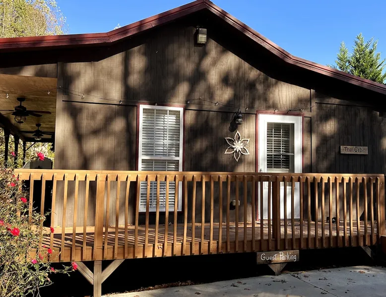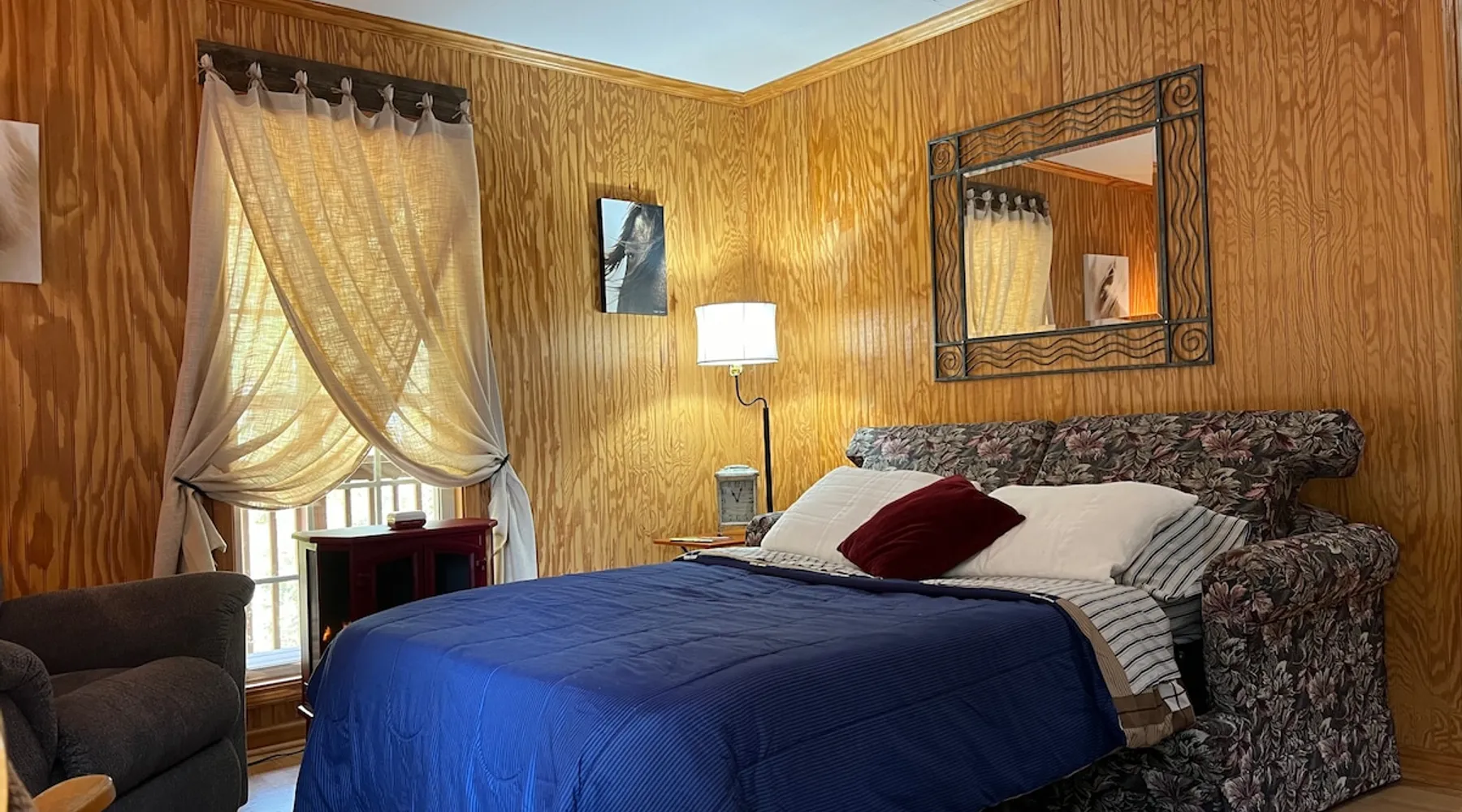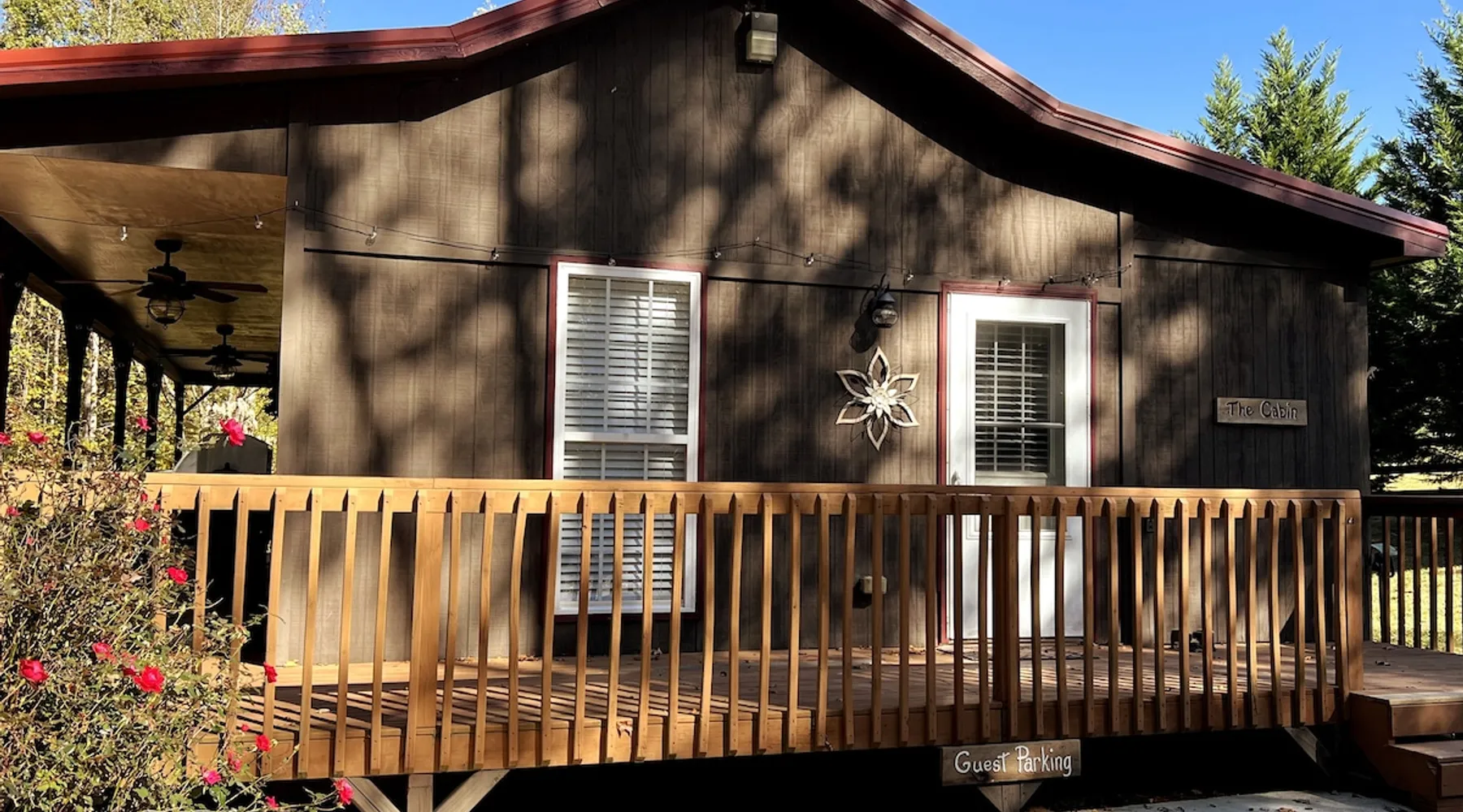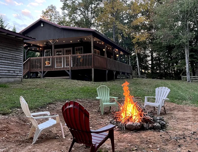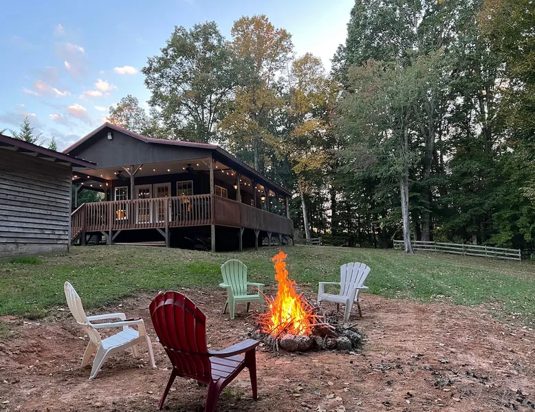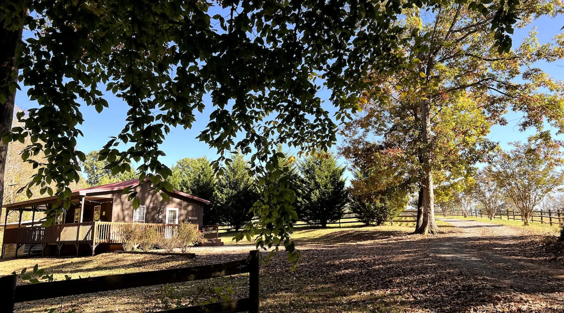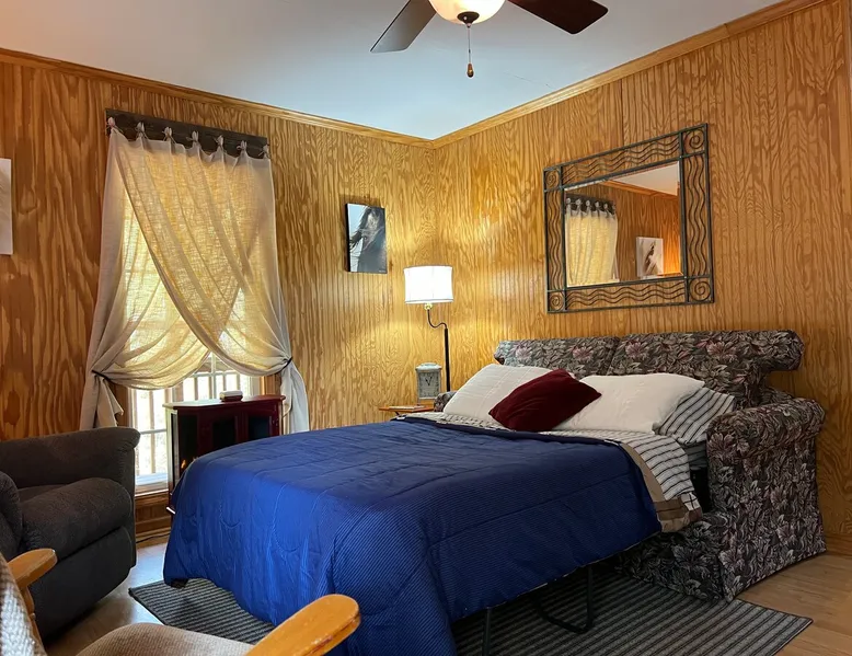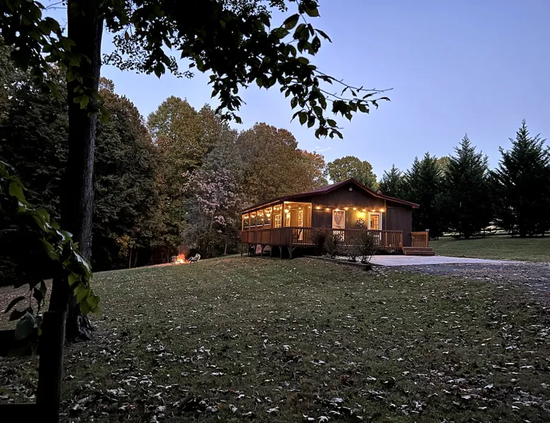 Our cozy farm cabin is tucked away in a secluded area of our 50 acre horse farm, surrounded by nature; and well supplied with all the essentials for a comfortable stay for a night or a week! Hiking trails directly accessible from the cabin. Enjoy beautiful woods, creeks and picnic areas; pet the horses and miniature donkeys; or just relax by the fireplace, or bonfire with your favorite beverage. Finish your day with a deep sleep on super comfy premium bedding and linens. The space This is a very private, secluded, comfortable 1 bedroom cabin, with a super comfy queen size bed in the bedroom, and comfortable sleeper sofa in the living room that folds out another double bed. It is designed for a maximum of 4 people to enjoy a peaceful, quiet get-away. This property is NOT designed for a gathering place for birthday parties or other celebrations. Guest access Guests will have access to a private (unfenced) large yard with a bonfire pit, and a separate Game Room and Washeteria, as well as 30 acres of hiking trails, meandering through beautiful woods, wildlife meadows, creeks, and picnic areas. Other things to note FREE WIFI: Free fiber optic with internet speed of 250 meg upload and 250 meg download for your digital needs. COMPLIMENTARY BARN VISIT WITH HORSES & MINI DONKEYS: If you want to come up to the main farm for a complimentary visit with our Rocky Mountain Horses and Spotted Miniature Donkeys, you must schedule an appointment ahead of time. Please just ask! PETS & PET FEE: Dogs are welcome but due to the extra cleaning required there is a $25 PER DOG, PER VISIT PET FEE. Any extra fee will need to be paid at check in since Airbnb is only set up for a one time fee for one dog. Dogs are strictly prohibited from getting on the bed! There is a blanket provided so they can sit on the couch with you.... please use it! PLEASE, CLAIM YOUR DOG(S) AT TIME OF BOOKING, because we WILL find out and you WILL BE CHARGED. Besides that, it will avoid any embarrassment for you once you are here.