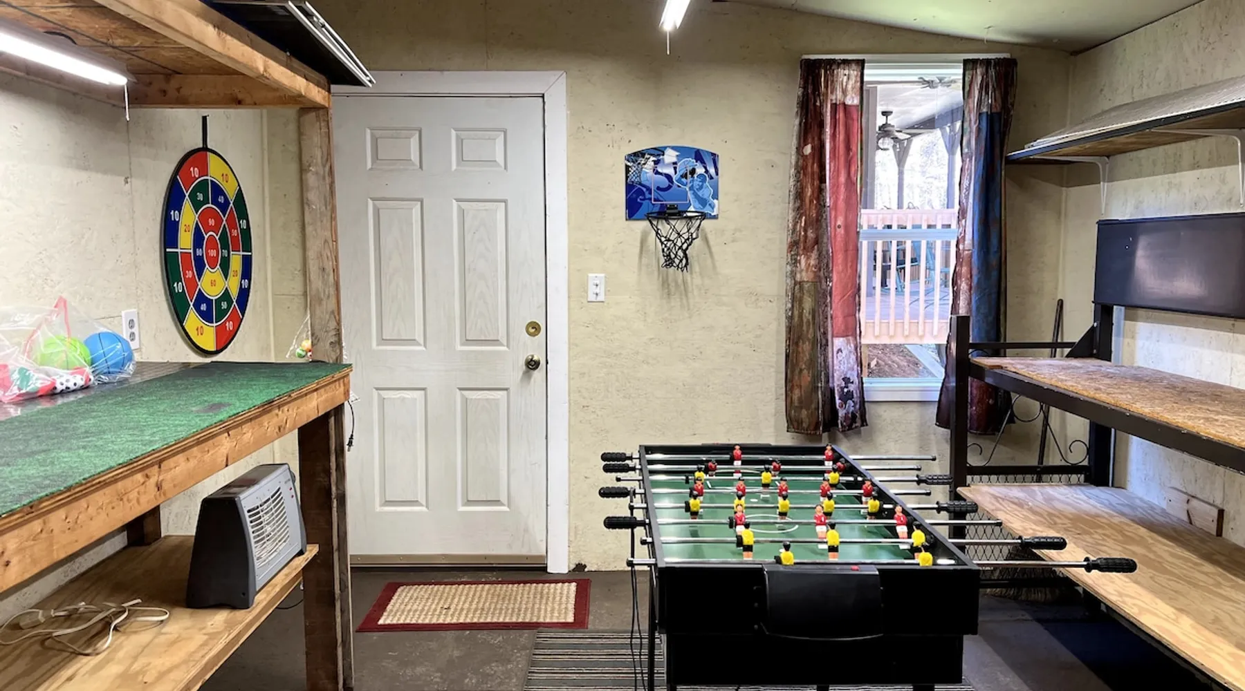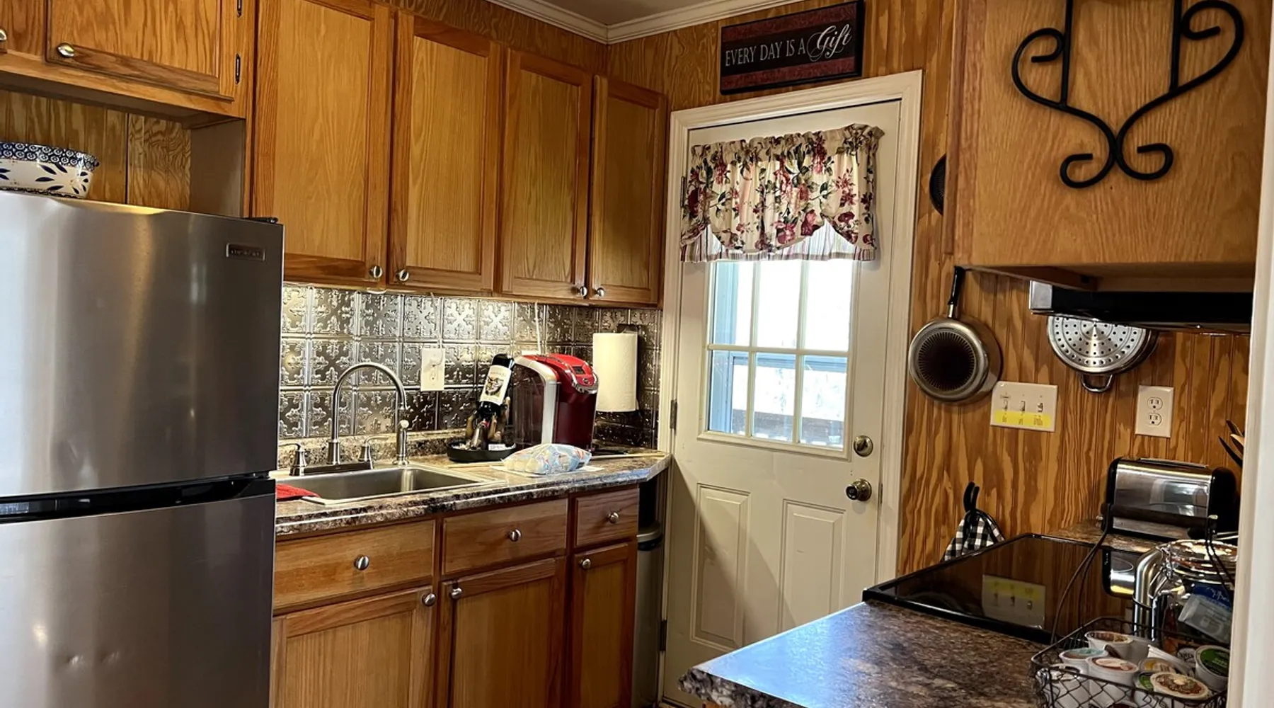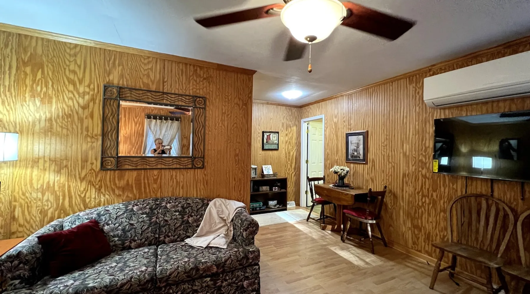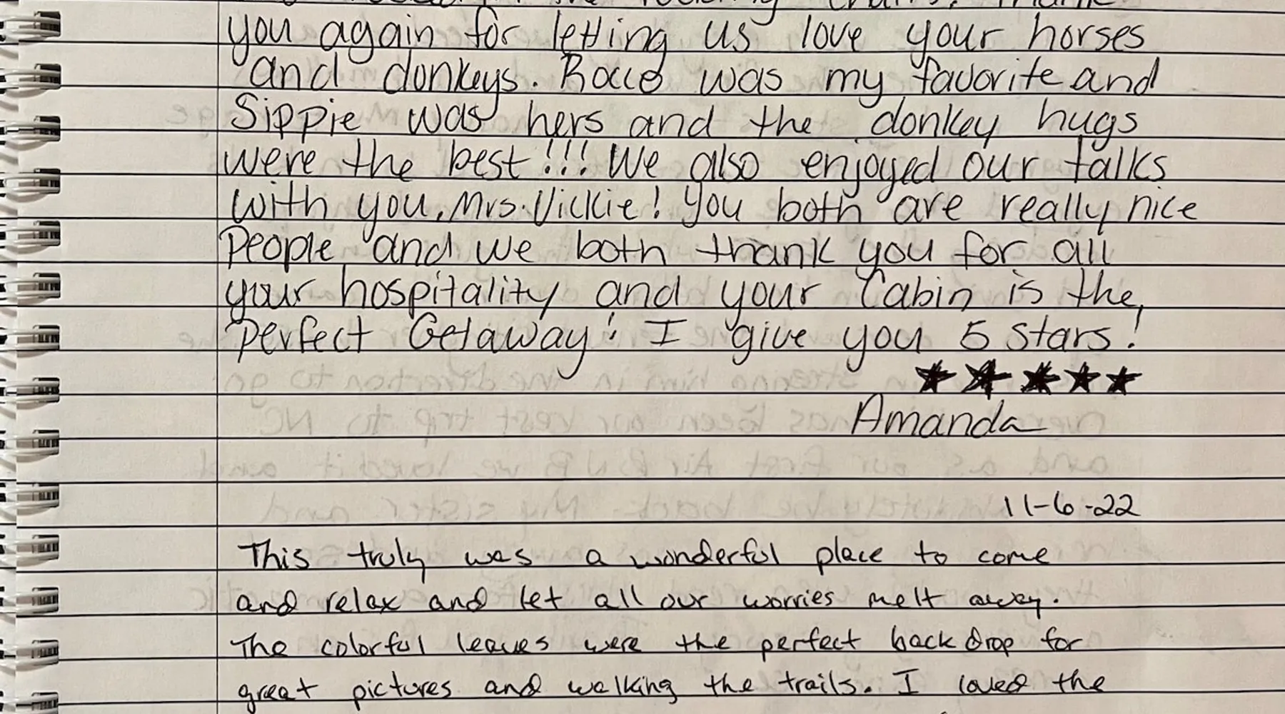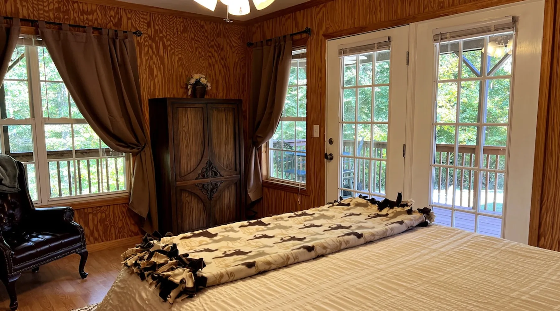 Our cozy farm cabin is tucked away in a secluded area of our 50 acre horse farm, surrounded by nature; and well supplied with all the essentials for a comfortable stay for a night or a week! Hiking trails directly accessible from the cabin. Enjoy beautiful woods, creeks and picnic areas; pet the horses and miniature donkeys; or just relax by the fireplace, or bonfire with your favorite beverage. Finish your day with a deep sleep on super comfy premium bedding and linens. The space This is a very private, secluded, comfortable 1 bedroom cabin, with a super comfy queen size bed in the bedroom, and comfortable sleeper sofa in the living room that folds out another double bed. It is designed for a maximum of 4 people to enjoy a peaceful, quiet get-away. This property is NOT designed for a gathering place for birthday parties or other celebrations. Guest access Guests will have access to a private (unfenced) large yard with a bonfire pit, and a separate Game Room and Washeteria, as well as 30 acres of hiking trails, meandering through beautiful woods, wildlife meadows, creeks, and picnic areas. Other things to note FREE WIFI: Free fiber optic with internet speed of 250 meg upload and 250 meg download for your digital needs. COMPLIMENTARY BARN VISIT WITH HORSES & MINI DONKEYS: If you want to come up to the main farm for a complimentary visit with our Rocky Mountain Horses and Spotted Miniature Donkeys, you must schedule an appointment ahead of time. Please just ask! PETS & PET FEE: Dogs are welcome but due to the extra cleaning required there is a $25 PER DOG, PER VISIT PET FEE. Any extra fee will need to be paid at check in since Airbnb is only set up for a one time fee for one dog. Dogs are strictly prohibited from getting on the bed! There is a blanket provided so they can sit on the couch with you.... please use it! PLEASE, CLAIM YOUR DOG(S) AT TIME OF BOOKING, because we WILL find out and you WILL BE CHARGED. Besides that, it will avoid any embarrassment for you once you are here.