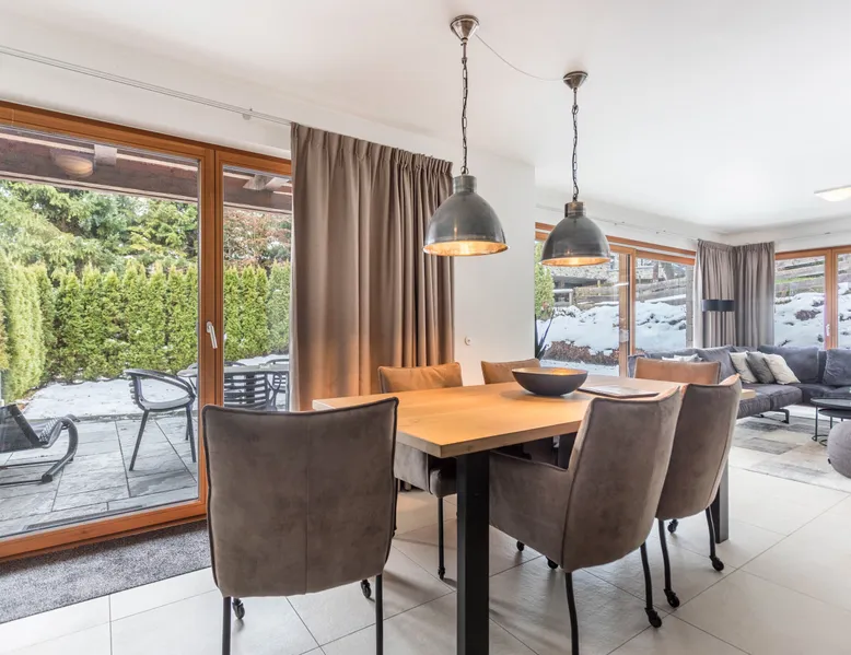 The holiday apartment "Mountain Lodge - Top1" is located in Leogang and boasts direct access to the ski slopes and a view of the mountains. The 95 m² property consists of a living room, a well-equipped kitchen with a dishwasher, 3 bedrooms, and 2 bathrooms and can therefore accommodate 6 people. Additional amenities include high-speed Wi-Fi suitable for video calls as well as a TV. A washing machine and dryer for communal use are available in the laundry room. A baby cot and high chair are also available upon request. The holiday apartment offers a private garden where you can enjoy relaxing mornings. In the surroundings you can find the Flying Fox, the mountain Asitz, the Leogang Show Mine, an outdoor pool, the "Tauern Spa Zell am See" (Kaprun is approximately a 45 minute drive), and the leisure park Family Land in the Pillersee Valley (approximately 35 minutes away). A parking space is available on the property and 1 in a garage. Additional parking spaces are available upon request. Pets are NOT allowed. Smoking inside the apartment is NOT ALLOWED. DO NOT enter the apartment with ski boots. Evening rest between 10 pm and 7 am must be observed. An elevator and ski storage are available in the building. This property has recycling rules; more information is provided on-site. Guests are asked to observe the waste separation. A bread service is available and there is a vending machine in front of the house. Saalfelden Leogang Card is included and firewood for the fireplace is provided free of charge in winter. After booking, please completely fill out the Holidu contact form that will be sent to you by email, including your address. This will help the host to prepare your stay in the best possible way.