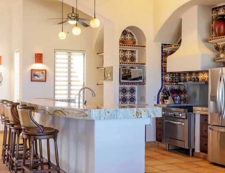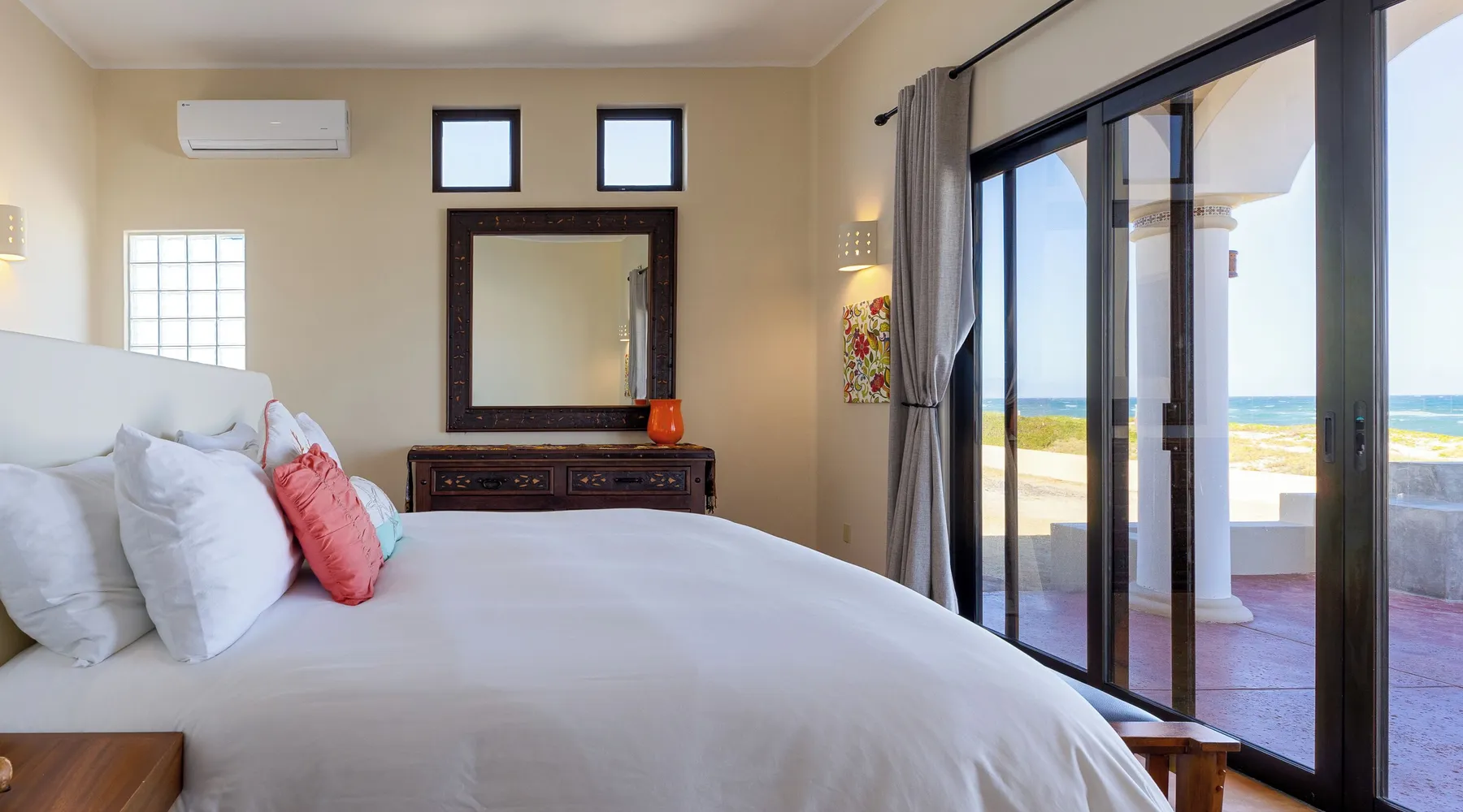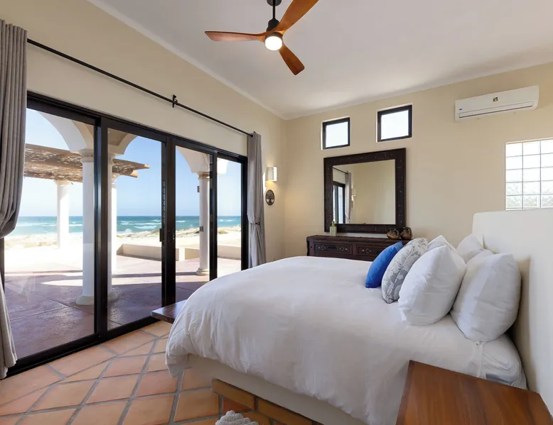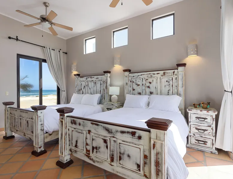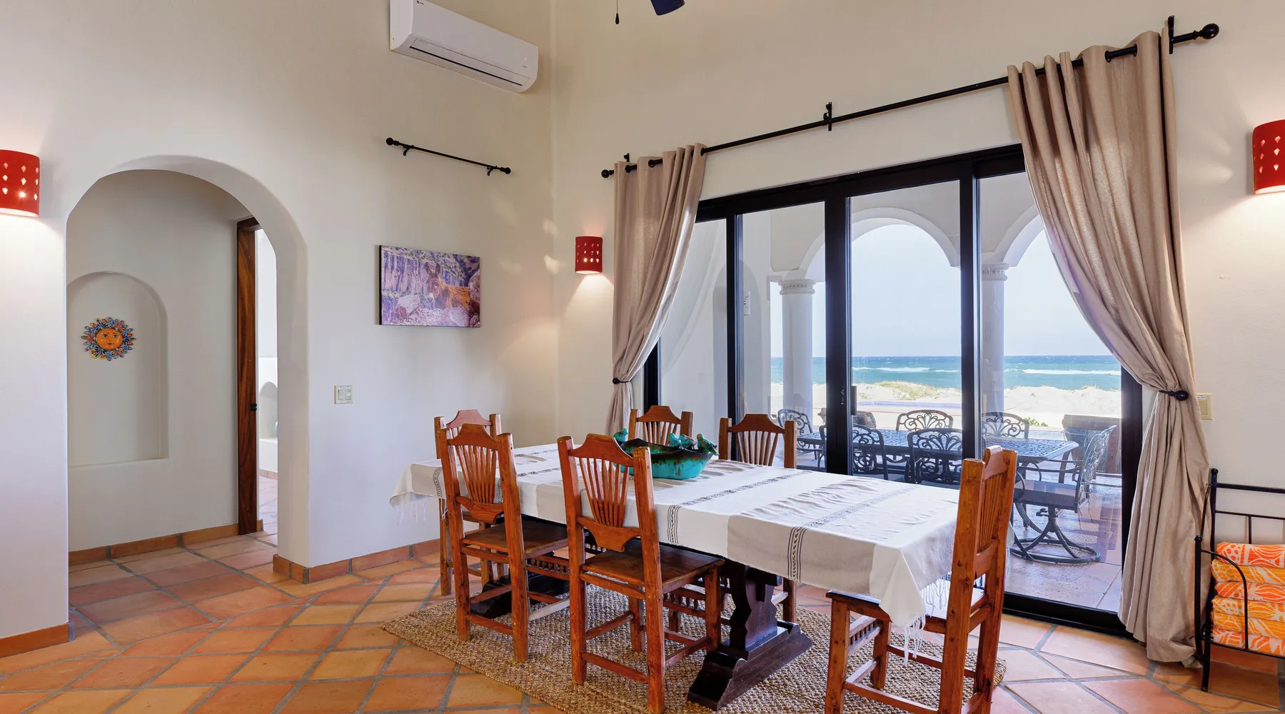 3 BEDROOM, 3 BATHROOM, SLEEPS 8, FAMILY & PET FRIENDLY UNDER NEW OWNERSHIP MARCH 2023 Hacienda Del Sol rests on the shore of the beautiful Sea of Cortez with miles of white sand beaches, diverse sea life and spacious tranquil surroundings. The hacienda is located just outside of La Ribera, a quaint traditional Mexican fishing village an hours drive north of San Jose Del Cabo airport. This is the ideal location for a relaxing vacation away from the fast pace of everyday life. La Ribera is home to a number of small family run restaurants, grocery stores and shops. The locals are very friendly and helpful. We do recommend a rental car due to the distance of the local amenities and attractions in the area. Working with an award winning architect and builder the house was created to reflect the finest in Mexican style, which is apparent throughout. The hacienda has been created with comfort and convenience in mind with traditional architecture, Mexican finishes such as Talavera tile and a spacious interior that opens out to a large veranda and welcoming non heated pool. In 2024 we added a new hot tub which will be on complementary for 4 hours per day. Additional time can be added if you desire at and extra cost of $25 US dollars per hour. The two master suites have luxurious king size beds with perfect views of the Sea of Cortez through the expansive sliding glass doors. Each bedroom has a large adjoining bathroom that has a walk in shower with a bench, as well as a double vanity. The sliding glass doors can be left open at night allowing you to fall asleep to the gentle sound of the lapping waves. The third bedroom has two queen size beds and a large walk in closet. this bedroom also has views of the sea of Cortez with is own sliding glass door and small private patio. The adjoining bathroom has a double vanity and large walk in shower with a bench. The large central great room is perfect for gatherings. The seating area provides for easy conversation and there is a television and DVD player with a large variety of movies. The professional, chef designed kitchen is spacious and comfortable. allowing guests to gather during food preparation and dining, as there is island seating for 6. The dining room has a large table seating 8 . The veranda spans one entire side of the house, with fantastic views of the Sea of Cortez. This is where the pool and gas fire-pit are located, where you can spend many relaxing hours during the day and night. A sun sheltered outdoor dining area is another option for enjoying the tranquility of Hacienda del Sol. If you enjoy cooking on the BBQ, there is a large outdoor gas grill only steps away from the kitchen. The world renowned Cabo Pulmo National Marine Park with its spectacular living coral reef and abundant marine life is located 16 miles south of La Ribera. There is a small village with facilities that can set up dive tours, and provide diving and snorkeling equipment if you do not have your own. There are also a few small restaurants in Cabo Pulmo. Twenty five miles north of La Ribera is the tourist town of Los Barriles where wind surfing and Sailing are popular sports November thru to March. There are restaurants, shops, and hotels, as well as a larger grocery store. Love music and art festivals can occur during the tourist season. The Sea of Cortez is one of the best bodies of water for fishing in the world. Locals and tourists alike love to seek out the RoosterFish from the shore. There are also Sierra, Dorado, Marlin, Red Snapper and Tuna that are popular catches with the fishermen. If you prefer, arrangements can be made for a panga boat to pick you up directly in front of the hacienda for a day of ocean fishing. Charter boats are also available for hire. We can also arrange for a home chef service, daily housekeeping, groceries deliveries, ATV rentals, horse back riding or a relaxing poolside massage. Theses can all be arranged prior to your arrival. There would be additional fees for these arrangements. Hacienda del Sol is a unique accommodation located in a stunning and safe part of Mexico and we look forward to sharing the experience with you.
