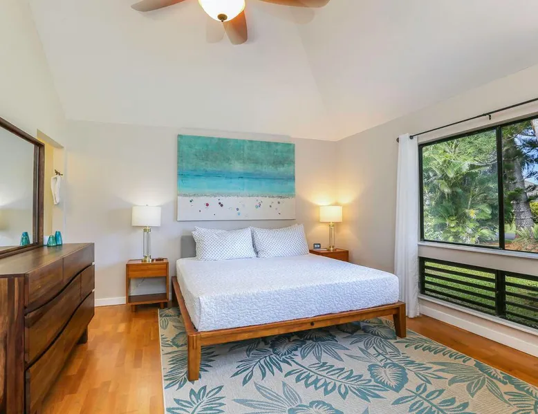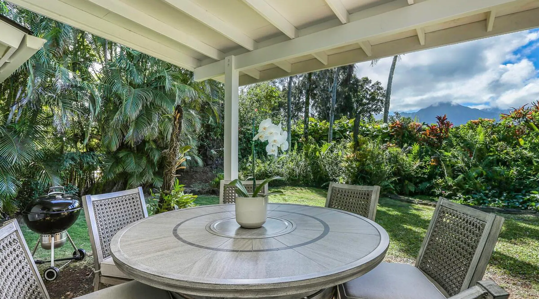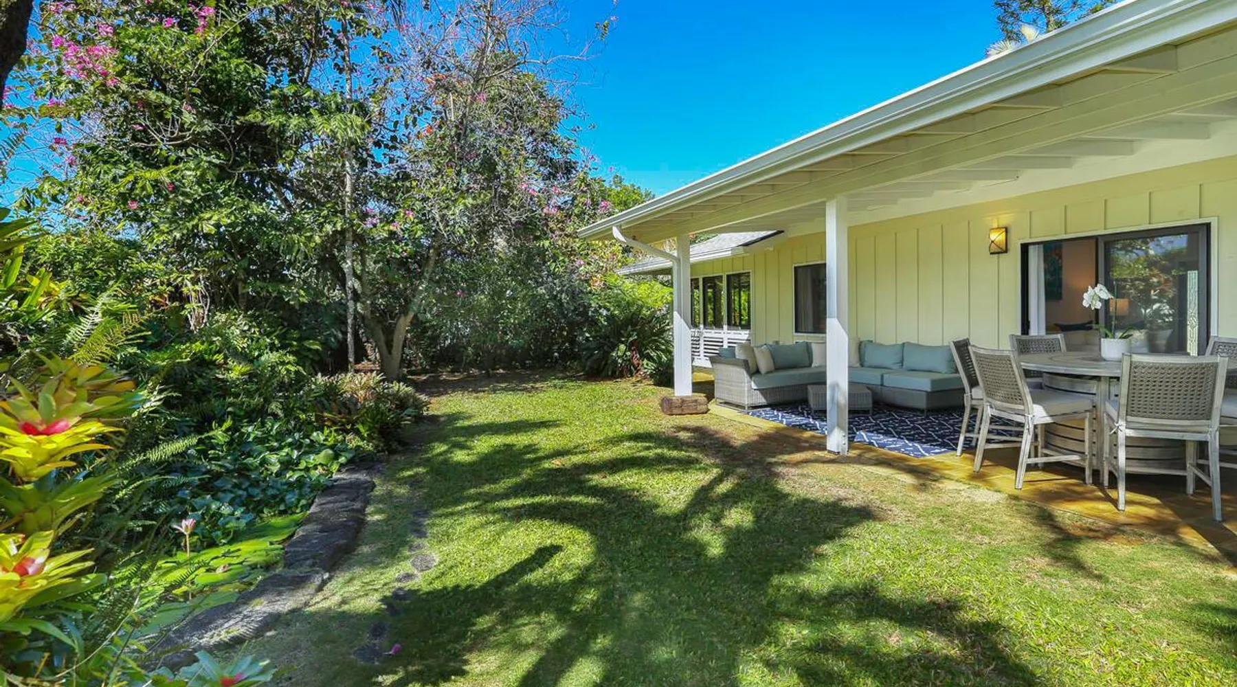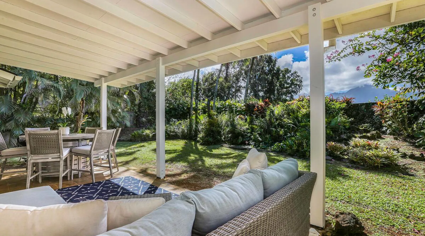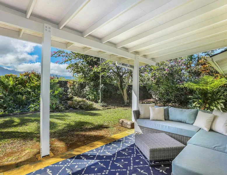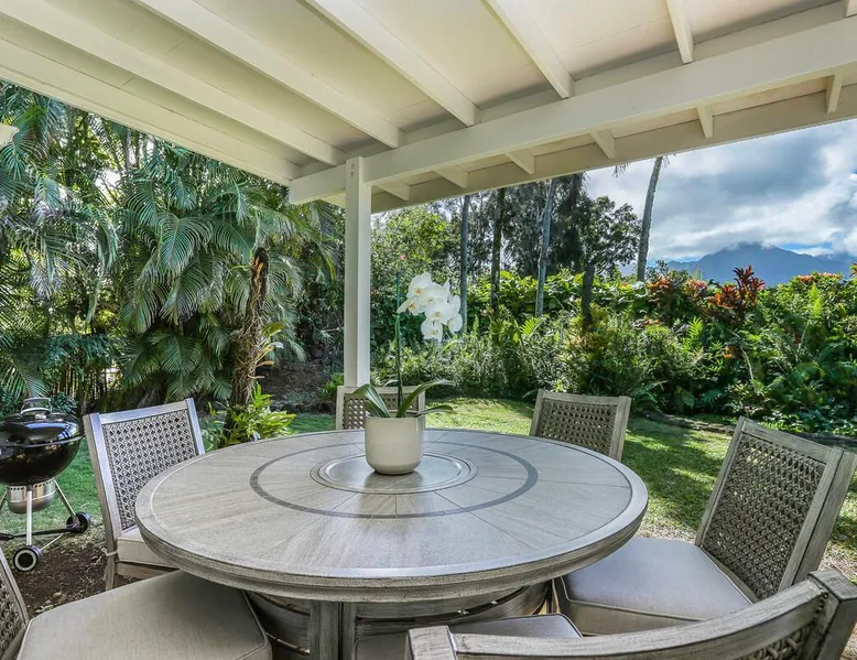 Hawaii Life Presents Hale Iolani The space Welcome to your beautiful home away from home, Hale Iolani. Centrally located on the North Shore of Kauai in the pristine community of Princeville, here you will find your own slice of paradise surrounded by colorful, tropical foliage with impressive mountain and waterfall views. This ideal location is nearby to breathtaking beaches, island shopping, dining, the stunning Makai Golf course, and just a short drive to the famous Hanalei Bay. This spacious, single-level home is thoughtfully appointed with everything you need to relax and enjoy the beauty of the garden island. Floor to ceiling windows bring the outside in and offer an abundance of natural light and showcase lush garden views. Vaulted ceilings with fans and A/C in the living room help to keep the spaces comfortable while filtering Kauai's cooling trade-winds throughout the home. You will enjoy the calming color palette and soft touches of island decor, inviting you to feel at ease with the peaceful Hawaii vibes you have been looking for. Take a few moments to relax into the comfortable living room with TV or enjoy the outdoor lounge area with covered lanai, perfect for a sunny or rainy afternoon! The fully-equipped kitchen offers everything you need to create island-inspired meals at home or even prepare a full beach picnic. Each guest will find their own private oasis in of the three spacious bedrooms, each carefully designed with your comfort in mind. An additional work space with office chair, monitor, and desk is also available in one of the bedrooms. Accommodations: Master bedroom with King bed, split a/c, ensuite bathroom with shower/tub combo Two guest rooms with queen beds, fans, and shared bathroom with shower (no a/c) Features: Single-Level Home Fully-Appointed Kitchen Drip Coffee Maker Blender Comfortable Living Area with TV and Roku Vaulted ceilings Split A/C in Living Room Large, Private Backyard Mountain and Waterfall Views Covered Lanai Outdoor Lounge Seating Outdoor Dining Area BBQ Grill Beach Gear includes 6 beach chairs, 3 Umbrellas, 1 beach wagon, Cooler, 2 surf boards and 4 boogie boards. Nearby: Makai Golf Course Foodland Grocery Store Hardware Store Post Office Collection of Shopping Multiple Restaurants Art Galleries 10 minute drive to Hanalei Bay Hawaii Life Rentals is a locally owned, licensed real estate company with rentals on Kauai, Maui, Oahu, and Hawaii. We offer on-island personal assistance and Concierge services. Rates do not include taxes, cleaning and applicable fees. Hawaii Life/VRBO bookings: Guests must sign a rental contract within 48 hours of booking to confirm the reservation. TA-181-261-2608-01 Registration Details 540200220000, TA-181-261-2608-01
