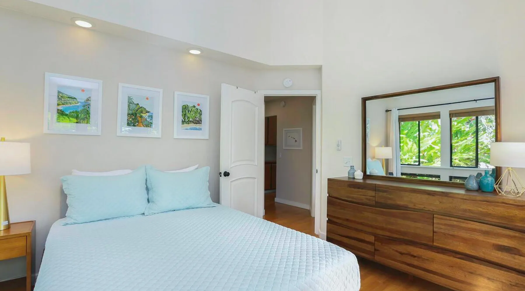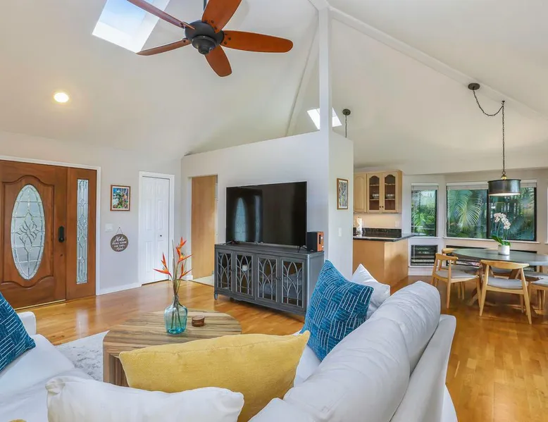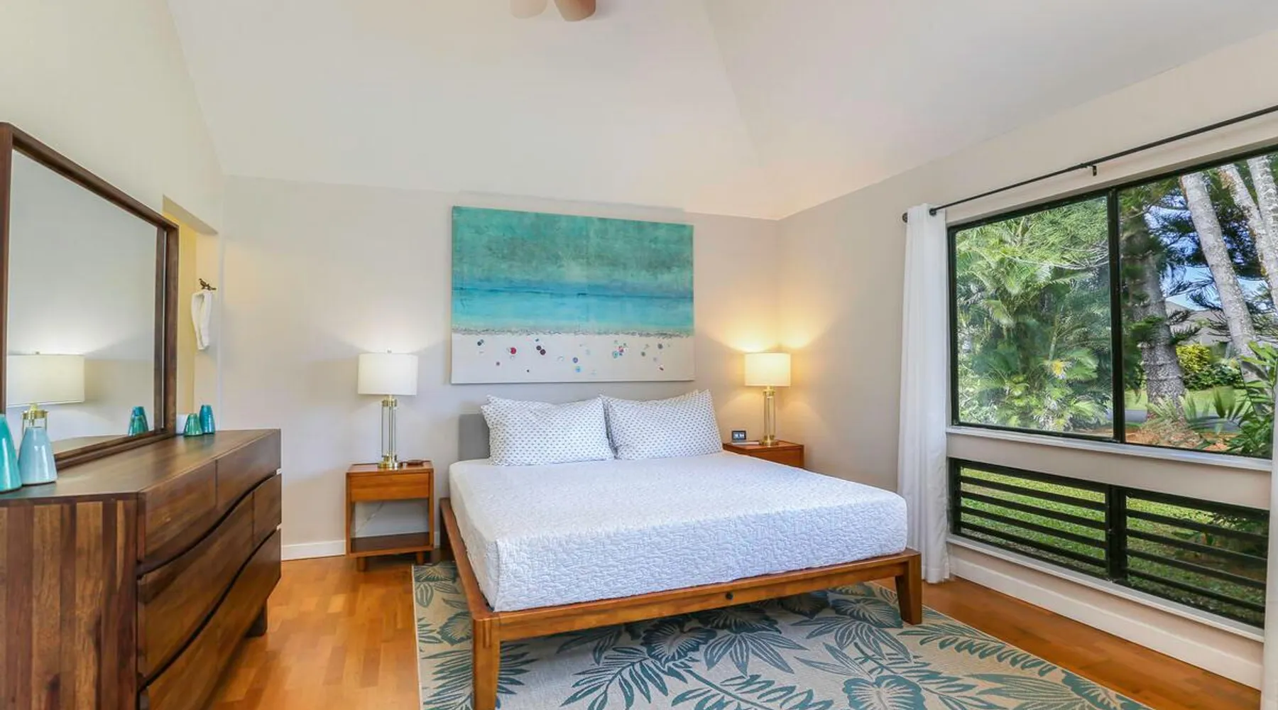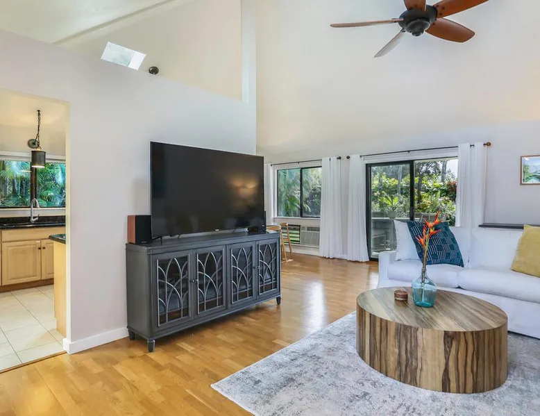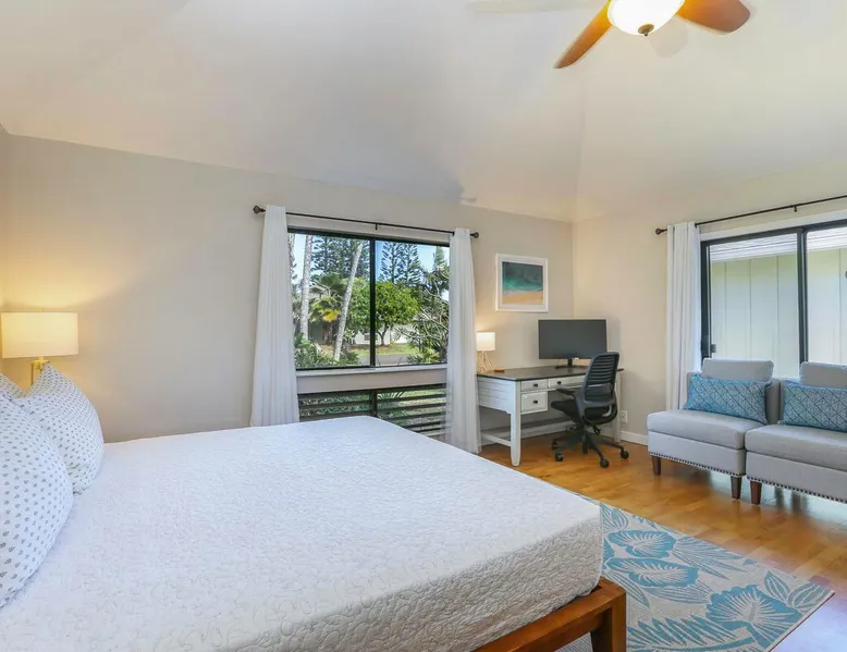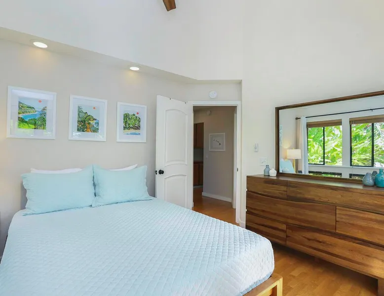 Hawaii Life Presents Hale Iolani The space Welcome to your beautiful home away from home, Hale Iolani. Centrally located on the North Shore of Kauai in the pristine community of Princeville, here you will find your own slice of paradise surrounded by colorful, tropical foliage with impressive mountain and waterfall views. This ideal location is nearby to breathtaking beaches, island shopping, dining, the stunning Makai Golf course, and just a short drive to the famous Hanalei Bay. This spacious, single-level home is thoughtfully appointed with everything you need to relax and enjoy the beauty of the garden island. Floor to ceiling windows bring the outside in and offer an abundance of natural light and showcase lush garden views. Vaulted ceilings with fans and A/C in the living room help to keep the spaces comfortable while filtering Kauai's cooling trade-winds throughout the home. You will enjoy the calming color palette and soft touches of island decor, inviting you to feel at ease with the peaceful Hawaii vibes you have been looking for. Take a few moments to relax into the comfortable living room with TV or enjoy the outdoor lounge area with covered lanai, perfect for a sunny or rainy afternoon! The fully-equipped kitchen offers everything you need to create island-inspired meals at home or even prepare a full beach picnic. Each guest will find their own private oasis in of the three spacious bedrooms, each carefully designed with your comfort in mind. An additional work space with office chair, monitor, and desk is also available in one of the bedrooms. Accommodations: Master bedroom with King bed, split a/c, ensuite bathroom with shower/tub combo Two guest rooms with queen beds, fans, and shared bathroom with shower (no a/c) Features: Single-Level Home Fully-Appointed Kitchen Drip Coffee Maker Blender Comfortable Living Area with TV and Roku Vaulted ceilings Split A/C in Living Room Large, Private Backyard Mountain and Waterfall Views Covered Lanai Outdoor Lounge Seating Outdoor Dining Area BBQ Grill Beach Gear includes 6 beach chairs, 3 Umbrellas, 1 beach wagon, Cooler, 2 surf boards and 4 boogie boards. Nearby: Makai Golf Course Foodland Grocery Store Hardware Store Post Office Collection of Shopping Multiple Restaurants Art Galleries 10 minute drive to Hanalei Bay Hawaii Life Rentals is a locally owned, licensed real estate company with rentals on Kauai, Maui, Oahu, and Hawaii. We offer on-island personal assistance and Concierge services. Rates do not include taxes, cleaning and applicable fees. Hawaii Life/VRBO bookings: Guests must sign a rental contract within 48 hours of booking to confirm the reservation. TA-181-261-2608-01 Registration Details 540200220000, TA-181-261-2608-01