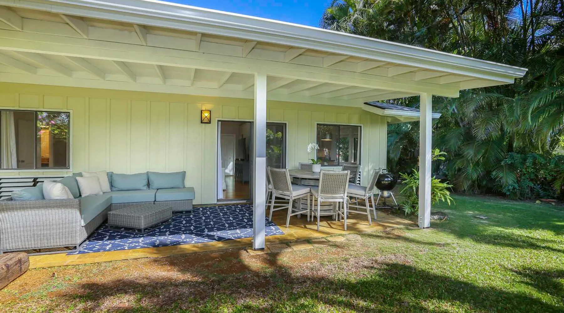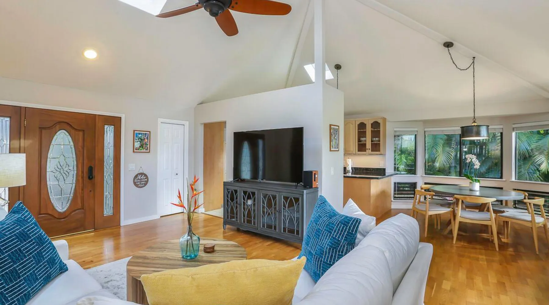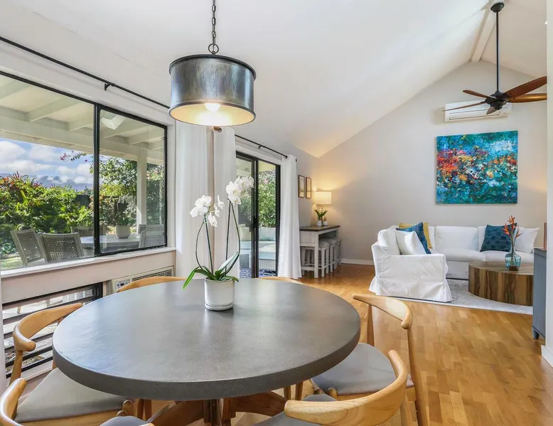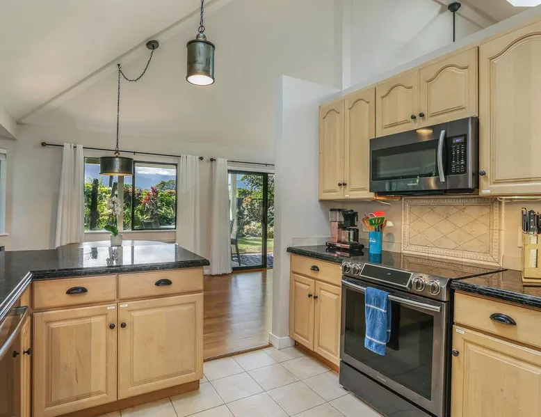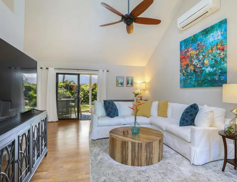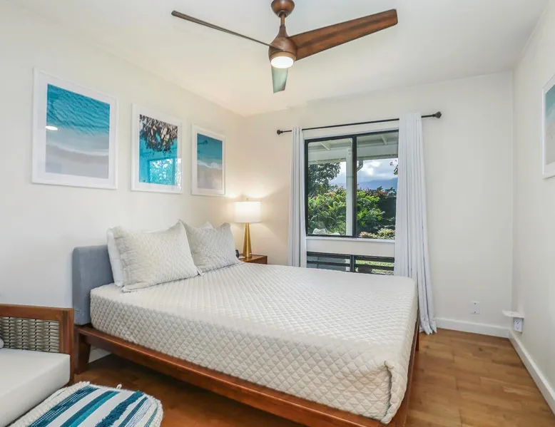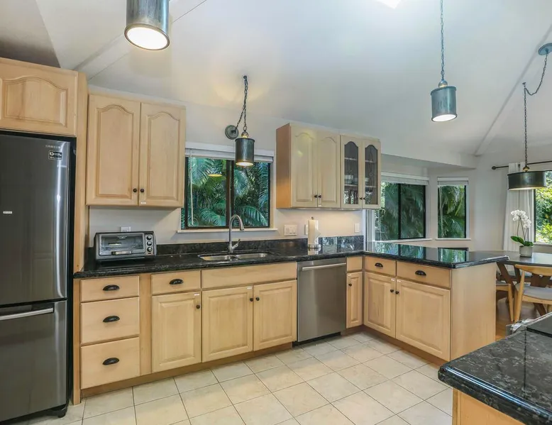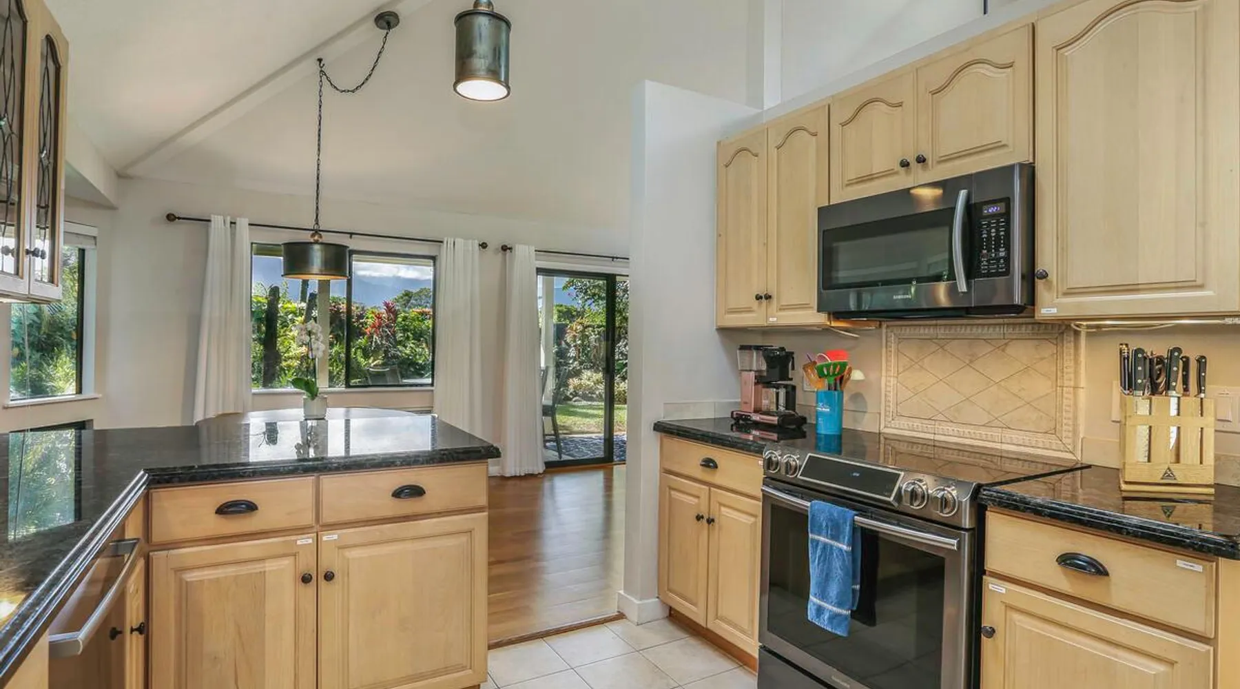 Hawaii Life Presents Hale Iolani The space Welcome to your beautiful home away from home, Hale Iolani. Centrally located on the North Shore of Kauai in the pristine community of Princeville, here you will find your own slice of paradise surrounded by colorful, tropical foliage with impressive mountain and waterfall views. This ideal location is nearby to breathtaking beaches, island shopping, dining, the stunning Makai Golf course, and just a short drive to the famous Hanalei Bay. This spacious, single-level home is thoughtfully appointed with everything you need to relax and enjoy the beauty of the garden island. Floor to ceiling windows bring the outside in and offer an abundance of natural light and showcase lush garden views. Vaulted ceilings with fans and A/C in the living room help to keep the spaces comfortable while filtering Kauai's cooling trade-winds throughout the home. You will enjoy the calming color palette and soft touches of island decor, inviting you to feel at ease with the peaceful Hawaii vibes you have been looking for. Take a few moments to relax into the comfortable living room with TV or enjoy the outdoor lounge area with covered lanai, perfect for a sunny or rainy afternoon! The fully-equipped kitchen offers everything you need to create island-inspired meals at home or even prepare a full beach picnic. Each guest will find their own private oasis in of the three spacious bedrooms, each carefully designed with your comfort in mind. An additional work space with office chair, monitor, and desk is also available in one of the bedrooms. Accommodations: Master bedroom with King bed, split a/c, ensuite bathroom with shower/tub combo Two guest rooms with queen beds, fans, and shared bathroom with shower (no a/c) Features: Single-Level Home Fully-Appointed Kitchen Drip Coffee Maker Blender Comfortable Living Area with TV and Roku Vaulted ceilings Split A/C in Living Room Large, Private Backyard Mountain and Waterfall Views Covered Lanai Outdoor Lounge Seating Outdoor Dining Area BBQ Grill Beach Gear includes 6 beach chairs, 3 Umbrellas, 1 beach wagon, Cooler, 2 surf boards and 4 boogie boards. Nearby: Makai Golf Course Foodland Grocery Store Hardware Store Post Office Collection of Shopping Multiple Restaurants Art Galleries 10 minute drive to Hanalei Bay Hawaii Life Rentals is a locally owned, licensed real estate company with rentals on Kauai, Maui, Oahu, and Hawaii. We offer on-island personal assistance and Concierge services. Rates do not include taxes, cleaning and applicable fees. Hawaii Life/VRBO bookings: Guests must sign a rental contract within 48 hours of booking to confirm the reservation. TA-181-261-2608-01 Registration Details 540200220000, TA-181-261-2608-01