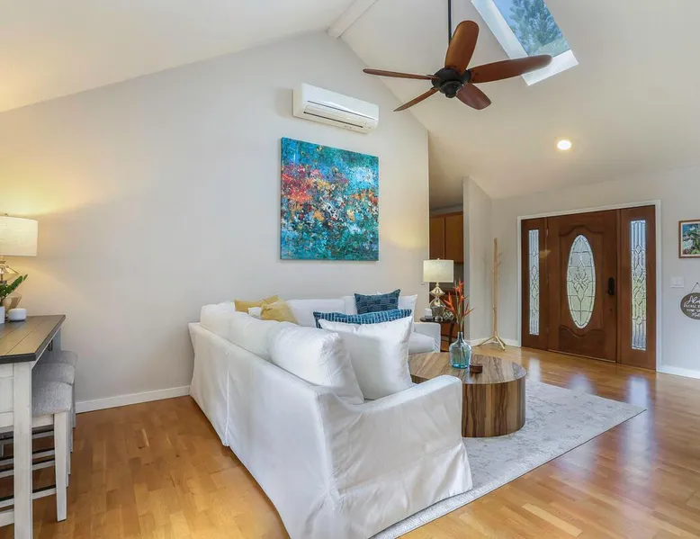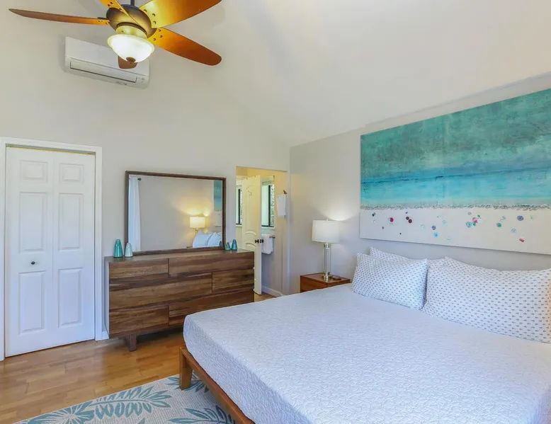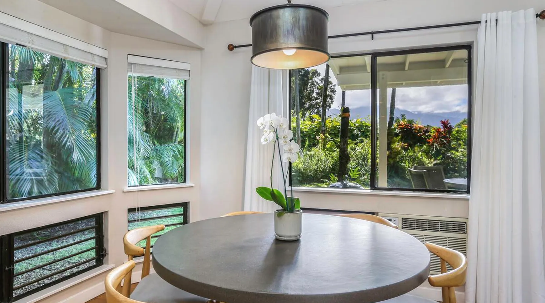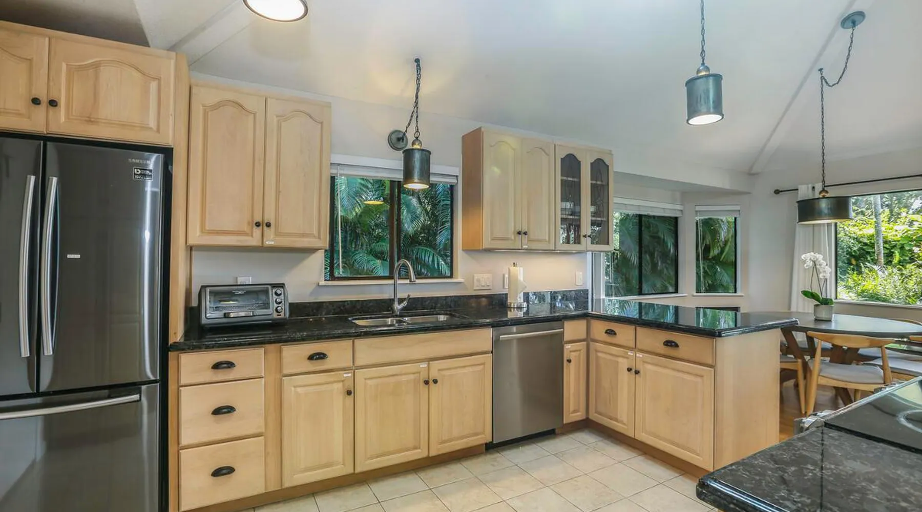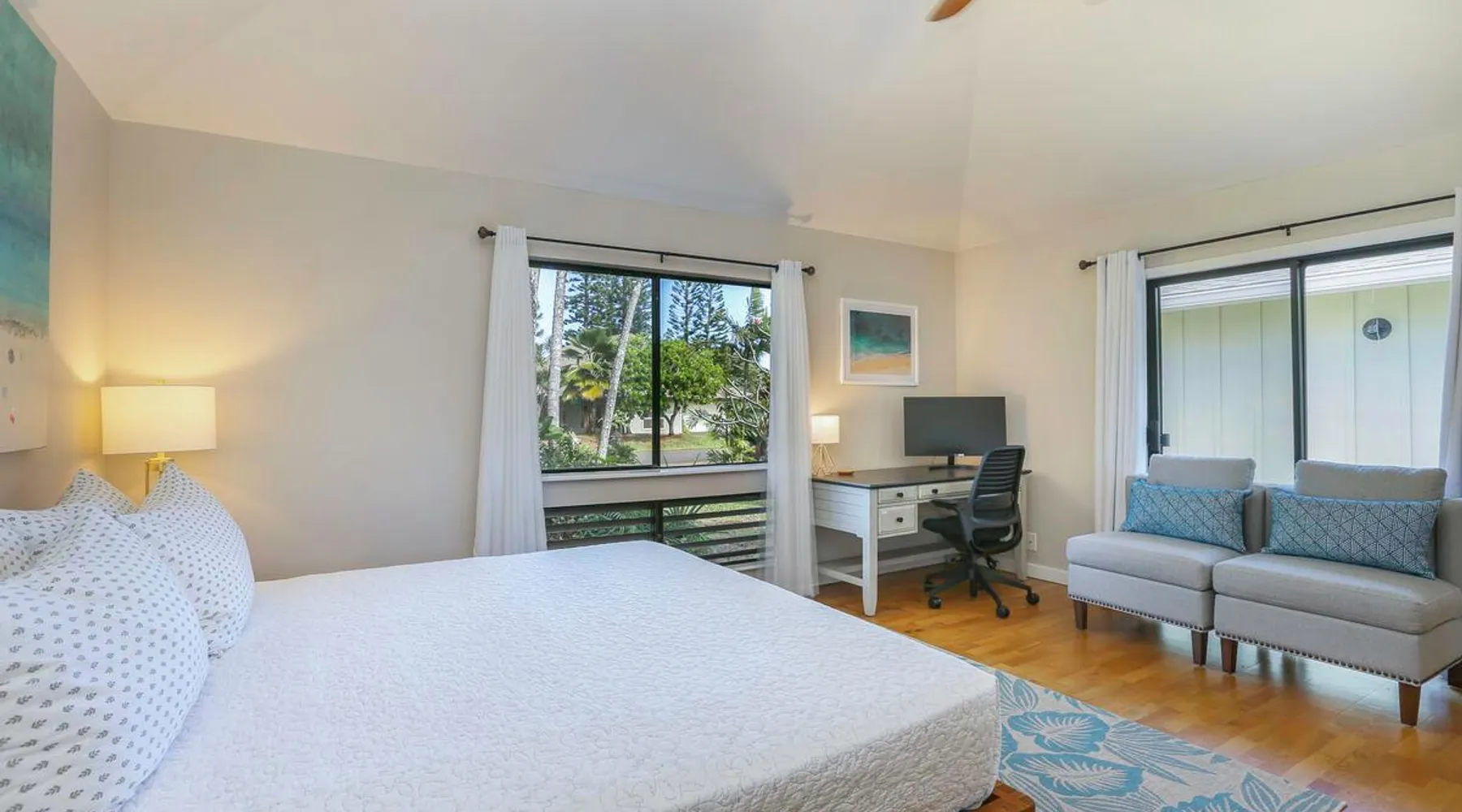 Hawaii Life Presents Hale Iolani The space Welcome to your beautiful home away from home, Hale Iolani. Centrally located on the North Shore of Kauai in the pristine community of Princeville, here you will find your own slice of paradise surrounded by colorful, tropical foliage with impressive mountain and waterfall views. This ideal location is nearby to breathtaking beaches, island shopping, dining, the stunning Makai Golf course, and just a short drive to the famous Hanalei Bay. This spacious, single-level home is thoughtfully appointed with everything you need to relax and enjoy the beauty of the garden island. Floor to ceiling windows bring the outside in and offer an abundance of natural light and showcase lush garden views. Vaulted ceilings with fans and A/C in the living room help to keep the spaces comfortable while filtering Kauai's cooling trade-winds throughout the home. You will enjoy the calming color palette and soft touches of island decor, inviting you to feel at ease with the peaceful Hawaii vibes you have been looking for. Take a few moments to relax into the comfortable living room with TV or enjoy the outdoor lounge area with covered lanai, perfect for a sunny or rainy afternoon! The fully-equipped kitchen offers everything you need to create island-inspired meals at home or even prepare a full beach picnic. Each guest will find their own private oasis in of the three spacious bedrooms, each carefully designed with your comfort in mind. An additional work space with office chair, monitor, and desk is also available in one of the bedrooms. Accommodations: Master bedroom with King bed, split a/c, ensuite bathroom with shower/tub combo Two guest rooms with queen beds, fans, and shared bathroom with shower (no a/c) Features: Single-Level Home Fully-Appointed Kitchen Drip Coffee Maker Blender Comfortable Living Area with TV and Roku Vaulted ceilings Split A/C in Living Room Large, Private Backyard Mountain and Waterfall Views Covered Lanai Outdoor Lounge Seating Outdoor Dining Area BBQ Grill Beach Gear includes 6 beach chairs, 3 Umbrellas, 1 beach wagon, Cooler, 2 surf boards and 4 boogie boards. Nearby: Makai Golf Course Foodland Grocery Store Hardware Store Post Office Collection of Shopping Multiple Restaurants Art Galleries 10 minute drive to Hanalei Bay Hawaii Life Rentals is a locally owned, licensed real estate company with rentals on Kauai, Maui, Oahu, and Hawaii. We offer on-island personal assistance and Concierge services. Rates do not include taxes, cleaning and applicable fees. Hawaii Life/VRBO bookings: Guests must sign a rental contract within 48 hours of booking to confirm the reservation. TA-181-261-2608-01 Registration Details 540200220000, TA-181-261-2608-01