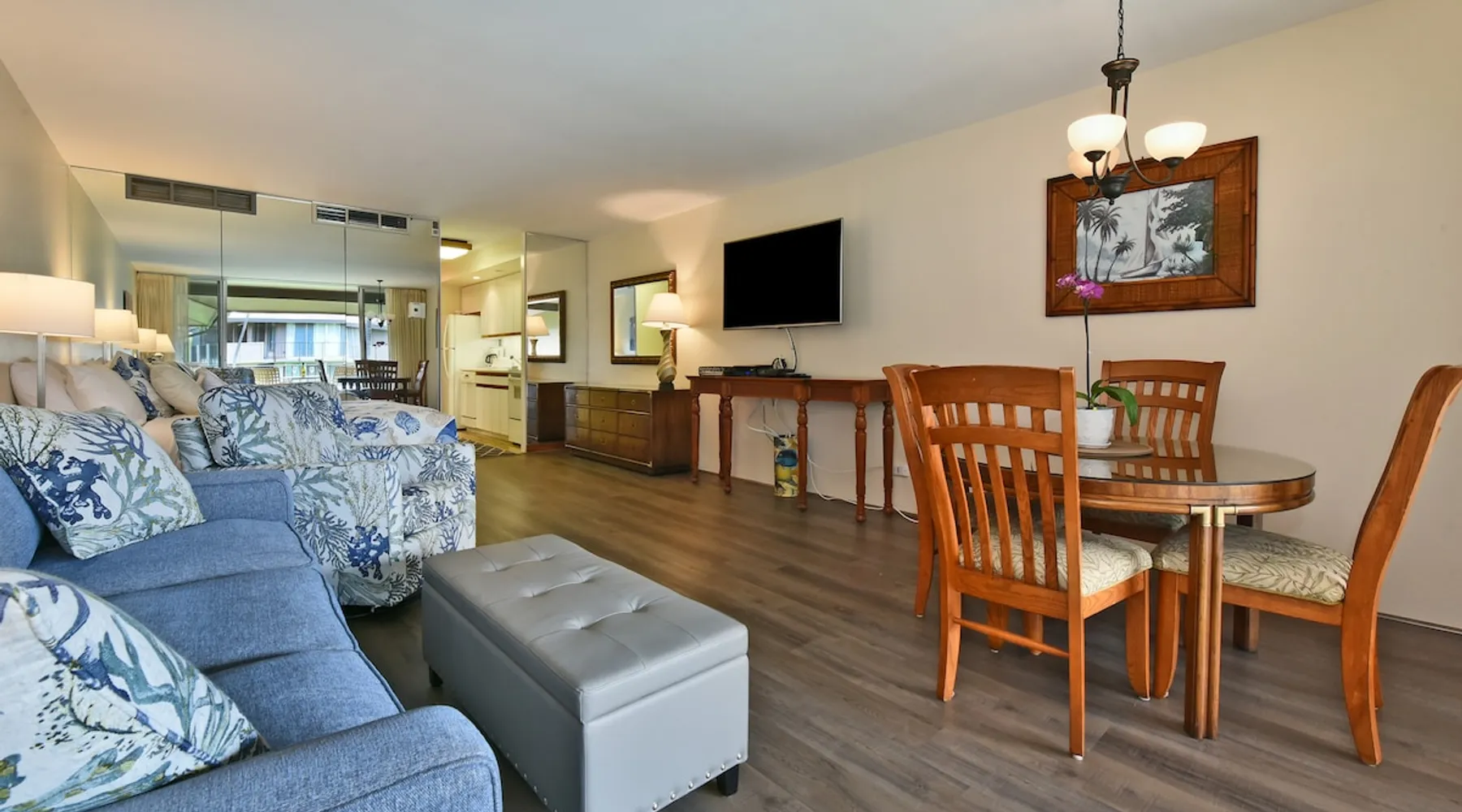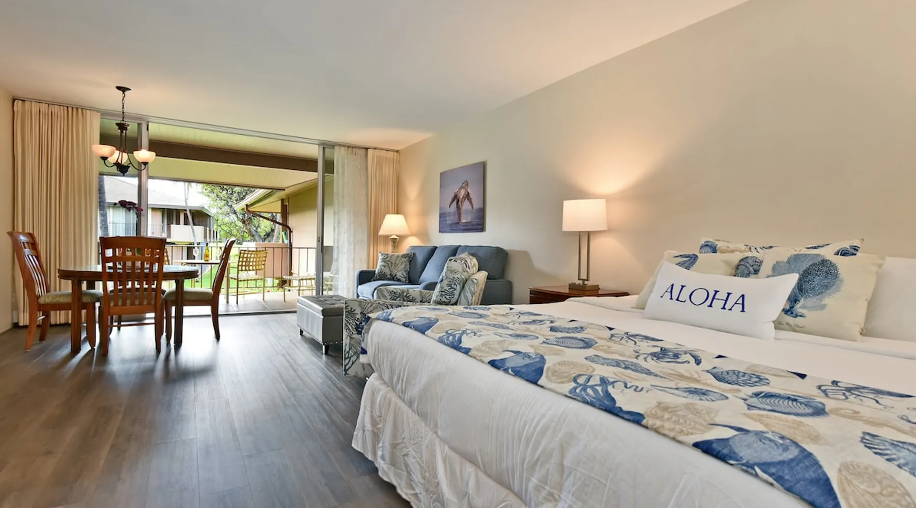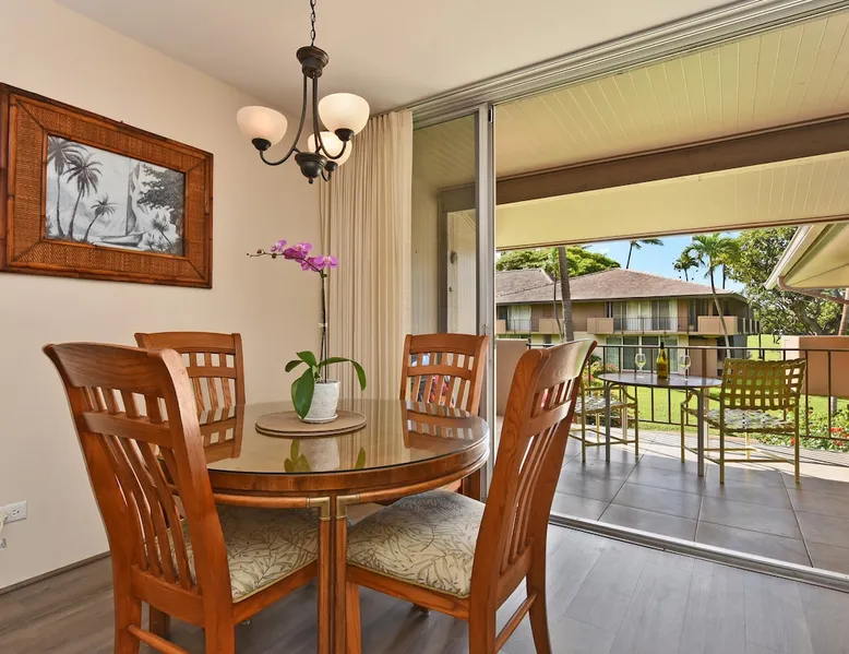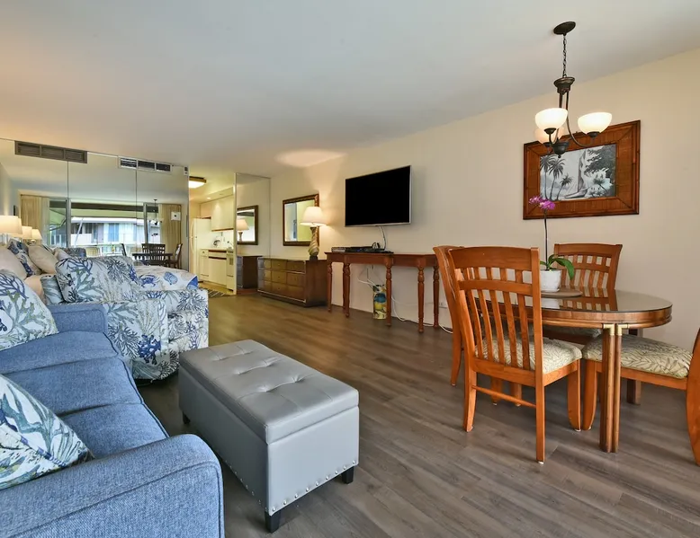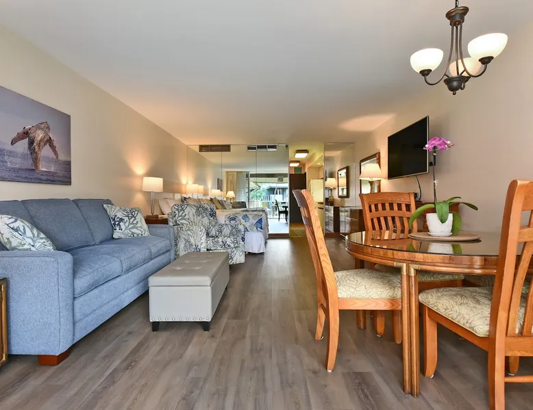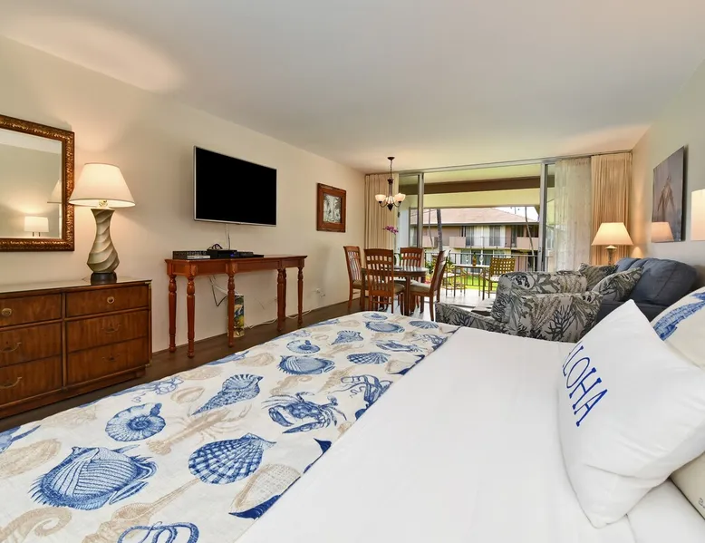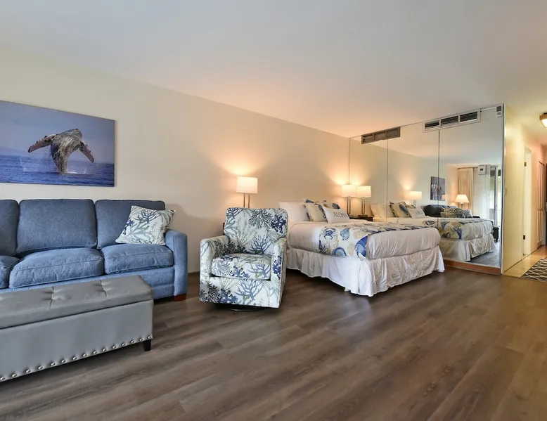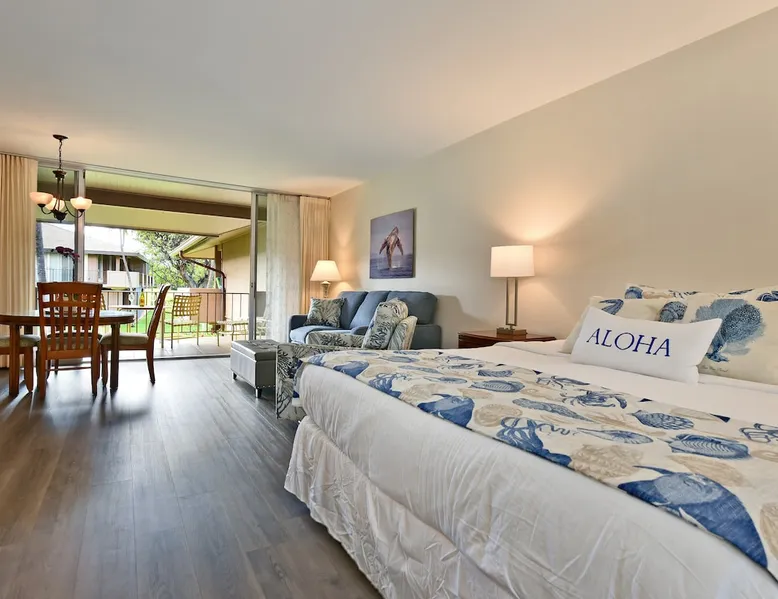 Eldorado J209 Spacious, Air-conditioned Studio, Sleeps 4 people with Comfort and Ease The space FREE daily activities included with your stay value up to $570! Complimentary admission, every day of your stay*: Whale Watch (seasonal), Dinner Sunset Sail, Snorkel Sail, Alpaca Farm Tour, Pineapple Farm Tour, and All Day Electric Bike Rental. (W1) *One ticket per activity per day. Additional details provided after confirmed booking. Spacious studio with a full kitchen and large bathroom. Located at the very popular Maui Eldorado Resort in Kaanapali sleeps up to 4 people comfortably. The resort is located next to the Kaanapali Golf Course and is close to the beach, restaurants, and shops! Maui Eldorado J209 is the perfect place to spend your well deserved Maui vacation! Condo Highlights: · Studio, 1 Bathroom, Sleeps 4 guests · Central AC · Spacious living space with sleeper sofa · Sleeping area features a Cal King Bed · Furnished lanai with outdoor dining table · Large flat screen TV · Dining area for 4 · Fully equipped kitchen w/ dishwasher · Bathroom with separate dressing area and large closet space · Combination tub/shower · In-unit washer/dryer RESORT FEE: The resort requires all guests to check-in at the on-site front desk and pay a REGISTRATION FEE $65 per stay and RESORT FEE $20 per day. This fee is paid by all guests directly to the on-site front desk. Experience Maui Eldorado in the heart of Ka’anapali. Situated between the 4th and 6th fairways of the Royal Ka’anapali Beach North Golf Course. Enjoy the only private beach cabana located directly on Ka’anapali Beach, reserved for the exclusive use of Maui Eldorado guests. Whaler's Village is only a 10 minute walk from the resort and has many popular restaurants, art galleries, and shops. Resort hotels such as the Marriott, Hyatt, and Sheraton are also within walking distance of Maui Eldorado. Resort Highlights: • Maui Eldorado exclusive Cabana with full kitchen, dining area, bathrooms, showers, towel service, and lounge chairs • Beautiful main pool with large deck for relaxing by • 3 Resort pools • 2 hot tubs • Brand new gym/workout facility • Poolside Pavilion • Poolside Gas BBQ Grills • Shuffleboard • Complimentary golf cart shuttle service to beach & cabana • 10-minute walk to Whalers Village Shopping Center • Access to the Free Ka’anapali Trolley • On-site parking included with resort fees No Mail Allowed: We are unable to receive USPS mail, including letters and packages at this rental. For medical-related items, please contact our Reservations Team for assistance. Minimum age of primary renter: 25 We provide the following in every unit: -First Aid Kit -High Speed Internet -Linens and towels -Iron and ironing board -Hair dryer -Beach towels, Beach chairs, and Hard sided cooler -Starter Kit: Starter supply of shampoo, conditioner, body wash, lotion, hand soap, dish soap, laundry detergent, dishwasher tabs, toilet paper, paper towels, trash bags *We don’t provide beach umbrellas, toys, or gears, such as snorkeling, due to safety, health, and hygiene risks. BEACHES & CRITTERS: The beach size in Hawaii varies month to month due to weather, heavy surf, strong currents, and tides. Due to Maui’s rural setting, you may experience the occasional rooster, as well as harmless geckos. Geckos are friendly, eat insects, and are considered good luck in Hawaii. Please don’t kill them. Although the HOA schedules regular professional pest control services, pests such as ants, roaches and rodents simply cannot be completely controlled in the tropics. Maui is in a tropical climate. If our guest spot more than the normal expected pests, we always make our best efforts to contact and work with the HOA to minimize your interactions with these pests. Any contact with such pests within or outside the unit does not constitute a breach of this Agreement or give Guest any right to any refund or rental adjustment. **We make no guarantee that properties adjacent to the Unit will be free from disturbances, including but not limited to noise or inconvenience from construction, traffic or other guests or neighbors. Any such disturbance shall not constitute a breach of this Agreement or give Guest any right to any refund or rental adjustment. By booking your stay with us, you accept that Host is not liable for any inconveniences arising from any temporary defect or stoppage in supply of water, electricity, air conditioning or plumbing that is beyond their control. Host is not liable for any loss or damage to Tenants’ personal property caused by weather conditions, natural disasters, or other events beyond their control. Tenants accept that the cable and internet service at the Rental can be sporadic and unreliable at times, and Tenant shall not be entitled to any refund of the rental fee in the event either of these services are unavailable or not operating properly during Tenants’ stay. Registration Details 440080210150, TA-068-390-7072-01