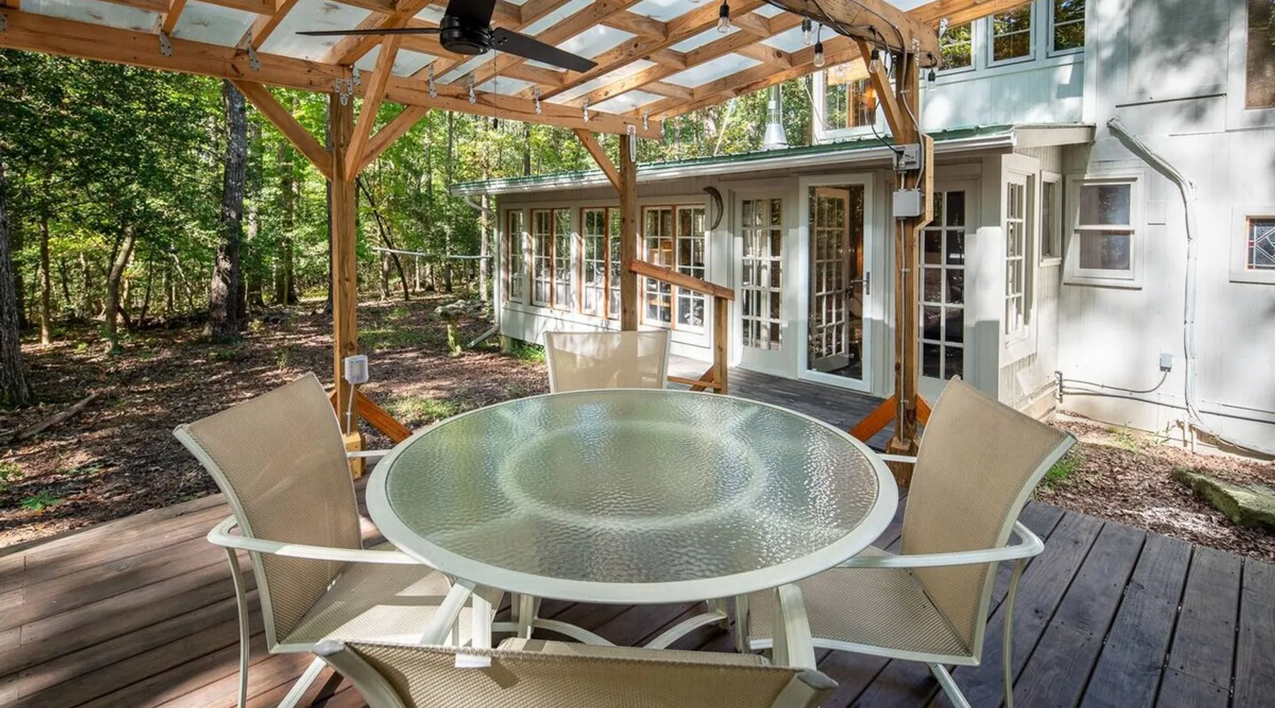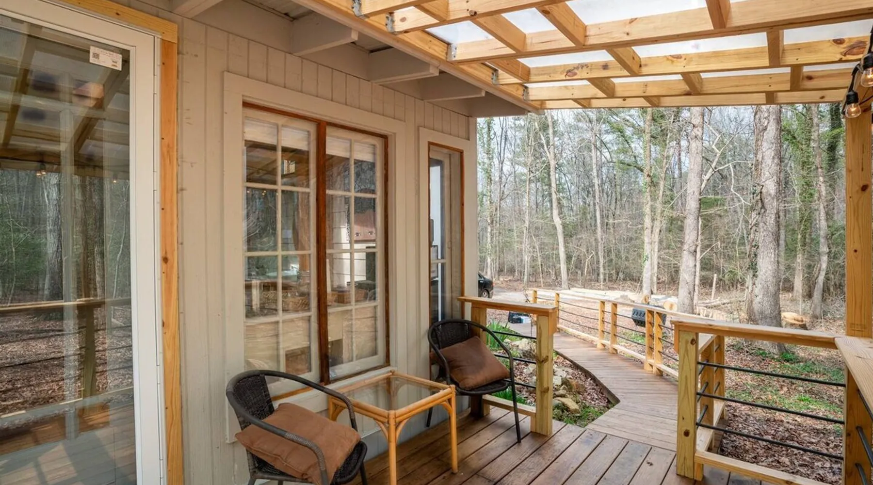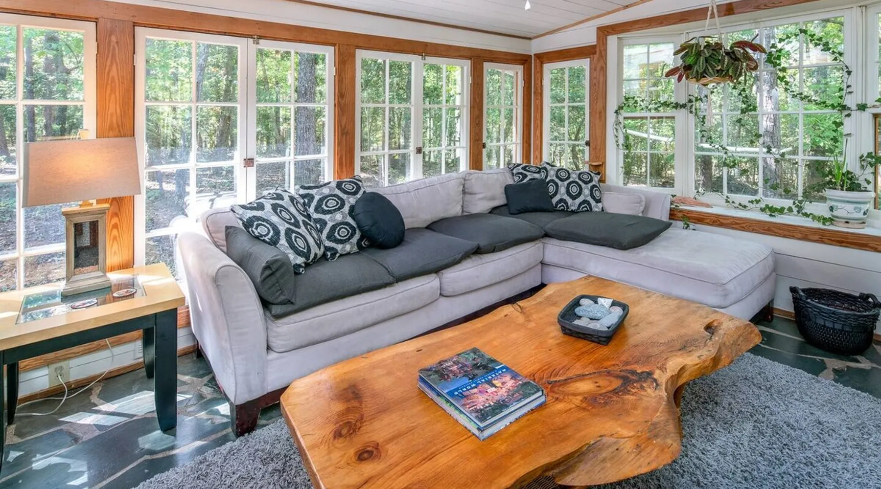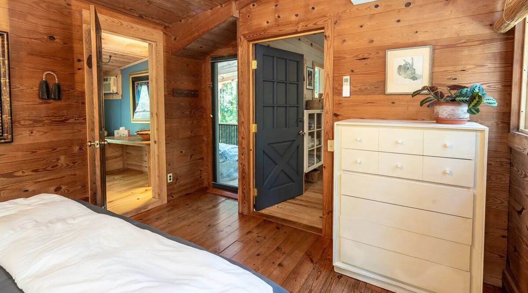This hand-built artist haven is full of character and charm. Located about 15 minutes from Chapel Hill, Pittsboro, and Saxapahaw, this is an ideal getaway for those who want to spend time in nature while still being close to the city. The rustic atmosphere is complemented by modern amenities, say no more! Build a fire, soak in the tub, and admire the great outdoors from our picture windows. The space This 3BR / 2BA home sits on 5 acres for a spacious and peaceful getaway while still being 15 minutes from town. Our photographer described this place as "Cozy and super charming. Lots of windows and great art make it feel warm and inviting." There are more windows in this house than in most houses of three times the size. Handmade feel with many artsy touches like original mosaics, wood and slate floors. A wood stove for experienced fire tenders on cold days and evenings. This is a one of a kind place that is unique and hard to find. NOTE: It has a very outdoorsy feel. You're likely to see squirrels, birds, maybe even a fox or raccoon. Summertimes are usually full of bugs — and they might find themselves inside your home. Cobwebs can appear literally overnight. For those weary of the great outdoors or nature's creatures, this place is not for you. We do not fumigate and choose to use natural pest management strategies whenever possible. The home is chemical and fragrance-free for easier breathing and better sleep. The owners built the home by hand using recycled and repurposed materials. Enjoy the mosaics made from recycled tiles, the amazing re-homed picture windows and stained glass, and notice that each part of the home was built with love and appreciation for the materials used. This place is truly a work of art that stands in collaboration with nature. Guest access There is parking for 3-5 cars. Uber and Lyft do not usually come out here, so having your own car is important. The closest corner store is 5 minutes away - larger grocery stores are 15 minutes out, as are most restaurants. Other things to note Caution to older and physically challenged people: There are stairs and many levels in this house. Not a good place for those wanting a single-level place. Please let us know if you're going to bring a pet or pets so I can send you our Pet Policy so we are on the same page about how to have that happen in a happy way for all! PET FEE: Well-behaved pets are welcome with a $50 fee (per pet) per stay. Please inquire about our pet policy.