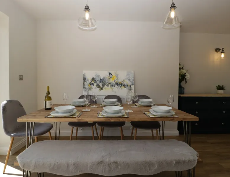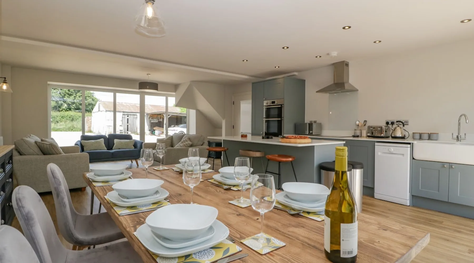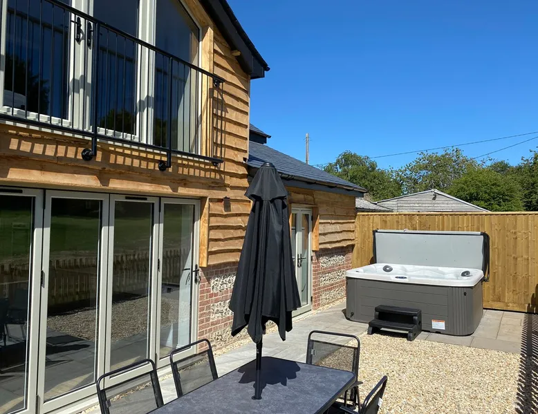 Threshing Barn rests in Thornicombe and can sleep six in three bedrooms. The space There is an open-plan living space with a kitchen with electric oven, hob, microwave, fridge/freezer, washing machine, dishwasher, dining seating for six, a sitting area and a sitting room with TV. The bedrooms consist of a king-size with Juliet balcony, a king-size room with en-suite and a twin bedroom, along with a bathroom and cloakroom. Outside, there is an enclosed rear garden with patio, furniture, hot tub and shared garden with football pitch/outdoor games set up and enclosed grass area for dogs. There is also off-road parking for three cars. WiFi, fuel, power, bed linen and towels are all included in the price. There is a highchair and travel cot. One well-behaved pet welcome; however, smoking is not allowed. Within 2.6 miles there is a shop and within 1.8 miles, a pub. Threshing Barn is a charming base to exploring the coast and countryside of Dorset. Note: Dogs to be discussed with owner. Other things to note There is an open-plan living space with a kitchen with electric oven, hob, microwave, fridge/freezer, washing machine, dishwasher, dining seating for six, a sitting area and a sitting room with TV. The bedrooms consist of a king-size with Juliet balcony, a king-size room with en-suite and a twin bedroom, along with a bathroom and cloakroom. Outside, there is an enclosed rear garden with patio, furniture, hot tub and shared garden with football pitch/outdoor games set up and enclosed grass area for dogs. There is also off-road parking for three cars. WiFi, fuel, power, bed linen and towels are all included in the price. There is a highchair and travel cot. One well-behaved pet welcome; however, smoking is not allowed. Within 2.6 miles there is a shop and within 1.8 miles, a pub. Threshing Barn is a charming base to exploring the coast and countryside of Dorset. Note: Dogs to be discussed with owner. Please note: This property does not accept 1 night bookings