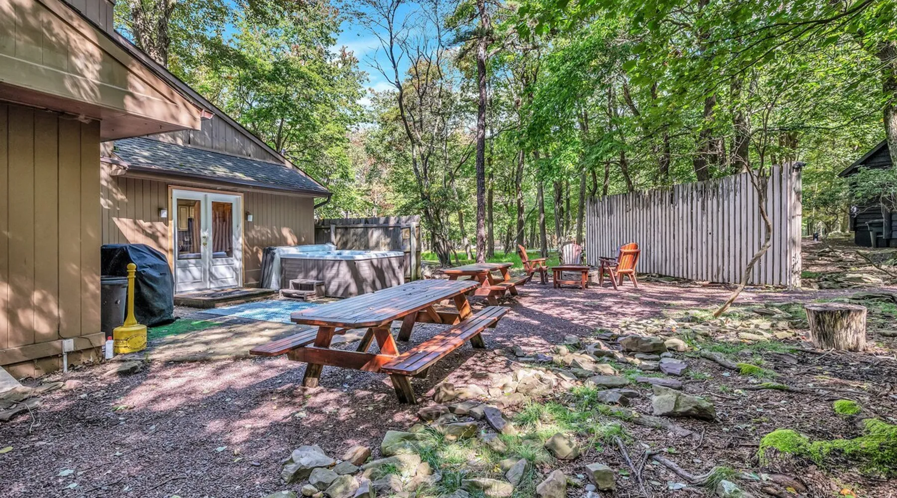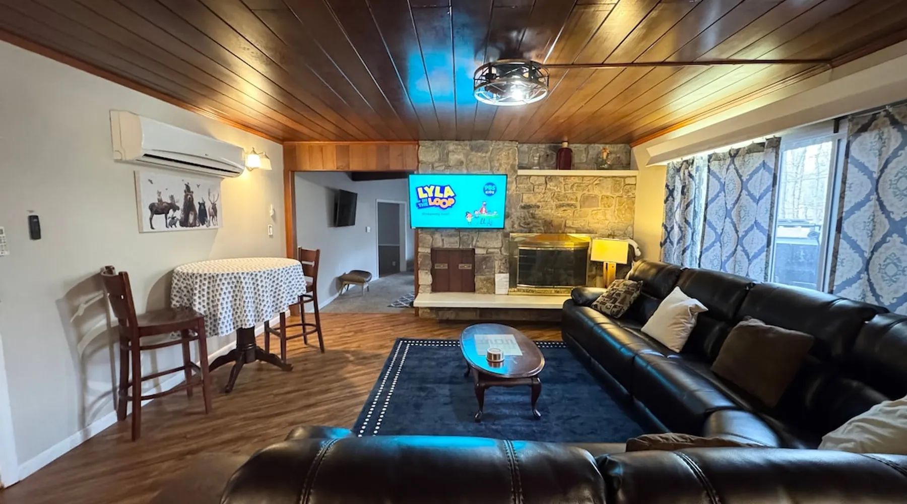 Welcome to the Wild Turkey Lodge & Fireside Cabin PLEASE READ OVERVIEW BEFORE REQUESTING TO BOOK Main house & log cabin 30 ft away on 1.5 acres of wooded property 9 bedrooms 6 bathrooms combined Golf Cart Rental (ask owner) 2 Hot tubs, Pool Table, Card Table, 2 Fireplaces (one wood, one gas), 2 Fire pits, 2 Kitchens Game Room with Fat & Furious Driving Arcade, Foosball Table, Shuffleboard, Pop-A-Shot Basketball, Air Hockey SEE BOTTOM Re LINENS The space Main house and quaint log cabin 30 feet away on 1 1/2 acres of wooded property. There is nothing like this. Main house has 6 sleeping areas and 4 full baths, and log cabin with 3 sleeping areas and 2 full baths. 2 Hot tubs, pool table, foosball table and , card table, 2 fire places (one wood, one gas), 2 fire pits, 2 kitchens, basketball hoop, wifi, cable, 8 game pac man and Galaga arcade. If you like the outdoors, you will love this property. The kitchens are fully equipped with all the tools you need prepare great meals for your family and friends. Plenty of space to gather or spread out, both outdoors and indoors.. The houses come with access to Lake Harmony. Lake Harmony is a private powerboat lake that permits fishing, power boating (If you want to bring a boat please check with owner as this may or may not be allowed) , water skiing, and more. We are located a 5 minute walk to the lake and 10 minute walk to the beach on the lake, or a 2 minute drive. Lake Harmony has a private sandy beach with a lifeguard, a swimming platform, picnic tables and a beach volleyball court in the summers. The beach is usually open on weekends starting on Memorial Day and then full time starting around mid June or the summer. THIS PROPERTY IS A COMBINED RENTAL WITH THE 6 BEDROOM ESTATES LODGE AND 3 BEDROOM LOG CABIN. WE HAVE OWNED THE ESTATES LODGE FOR A LONG TIME, AND IT HAS A SEPARATE LISTING WHICH HAS MANY FIVE STAR REVIEWS. The home is a 4 minute drive to Big Boulder Ski Resort and a 6 minute drive to Jack Frost Ski Area. There are boat rentals available on the lake during the summer season. The house is located less than 1 mile from the H20 indoor water park and the Galleria at Split Rock. The home is minutes from numerous summer and winter activities such as skiing, snowboarding, snow tubing, horseback riding, paintball, hiking, white water rafting, fishing, hunting, mountain biking, shopping, and golf. Lake Harmony is located 90 miles from NYC & Philadelphia. Please check with owner for Rates as rate structure on Airbnb can be confusing and rates may be lower or higher than shown. Minimum rental is usually 2 nights and if you want to rent a Friday or Sat night, the full weekend rate applies to the second night whether it is a Thurs or a Sunday. Non weekend rate is generally an add on to a weekend rental. If you want to rent just mid week (Sun to Thurs), the night rate depends on when you want to stay and how long. Summer weekly rentals are usually Sunday to Sunday, but less than a week is possible if they start or end on a Sunday, but depends on when and how long. Other things to note IMPORTANT STEPS WE ARE NOW TAKING: We are increasing the cleaning procedures after each rental to insure the most sterile property. Hard surfaces will be focus spots for the new cleaning / disinfection procedures. WHY RENT HERE - THERE IS A TON OF THINGS TO DO THAT DO NOT REQUIRE INTERACTION WITH OTHERS SUCH AS: HIKING, BIKE RIDING, FISHING, GOLF, SHOOTING RANGE, BOATING, FRISBEE GOLF, HORSEBACK RIDING, MINI-GOLF, MOUNTAIN CLIMBING . PLEASE CHECK WITH OWNER FOR RATES BECAUSE RATE STRUCTURE ON AIRBNB CAN SOMETIMES BE CONFUSING AND RATES MAY BE DIFFERENT THAN SHOWN: Minimum rental is usually 2 nights and if you want to rent a Friday or Sat night, the full weekend rate applies to the second night whether it is a Thurs or a Sunday. Nightly rate is generally an add on to a weekend rental. If you want to rent just mid week, the night rate depends on when you want to stay and how long. Summer weekly rentals are usually Sunday to Sunday, but less than a week is possible if they start or end on a Sunday, but depends on when and how long. PERSON RENTING NEEDS TO BE 25 OR OLDER. FAMILIES WITH CHILDREN ARE WELCOME NO PROM OR HIGH SCHOOL GROUPS. If you do not need both houses, we do rent them separately. Here are their separate listings: https://www.airbnb.com/rooms/14768380 https://www.airbnb.com/rooms/42626083 LINENS AND/OR TOWELS CAN BE SUPPLIED BY A SERVICE FOR A REASONABLE FEE ($189 FOR LINENS AND $5.50 PER TOWEL SET, AND THAT INCLUDES DELIVERY AND PICK UP). MOST GUESTS DO NOT WANT THIS, SO I DO NOT INCLUDE THE COST IN THE CHARGES. CONTACT OWNER FOR MORE INFORMATION ON THIS.